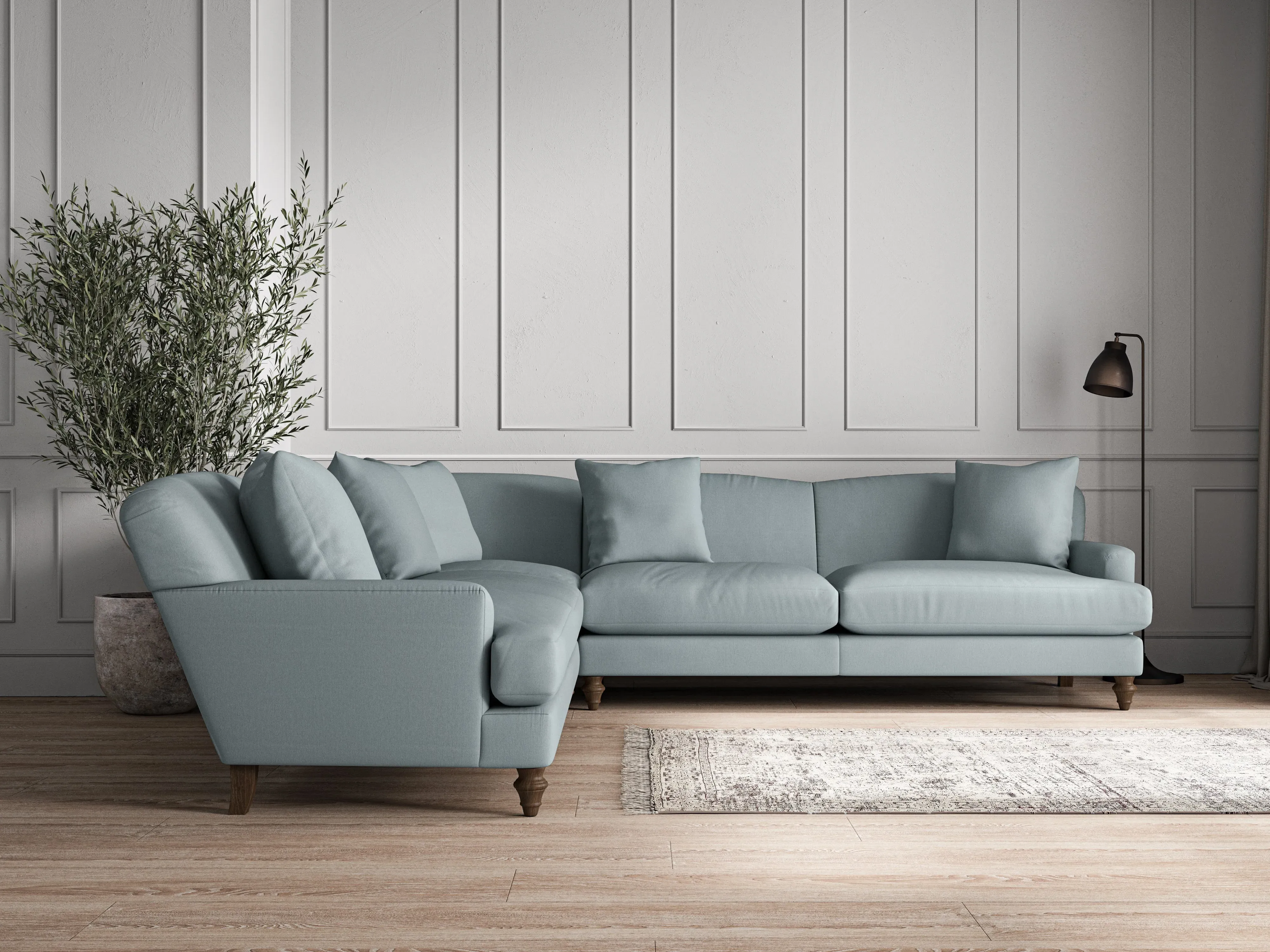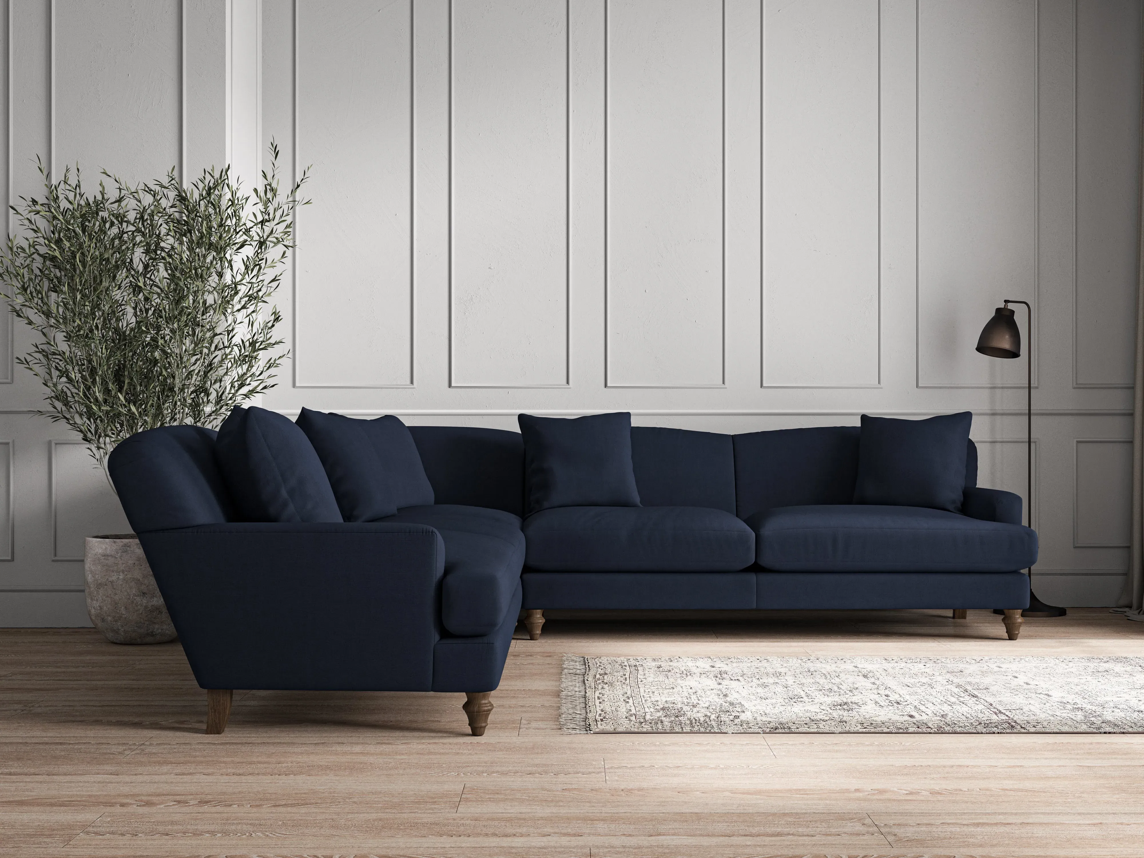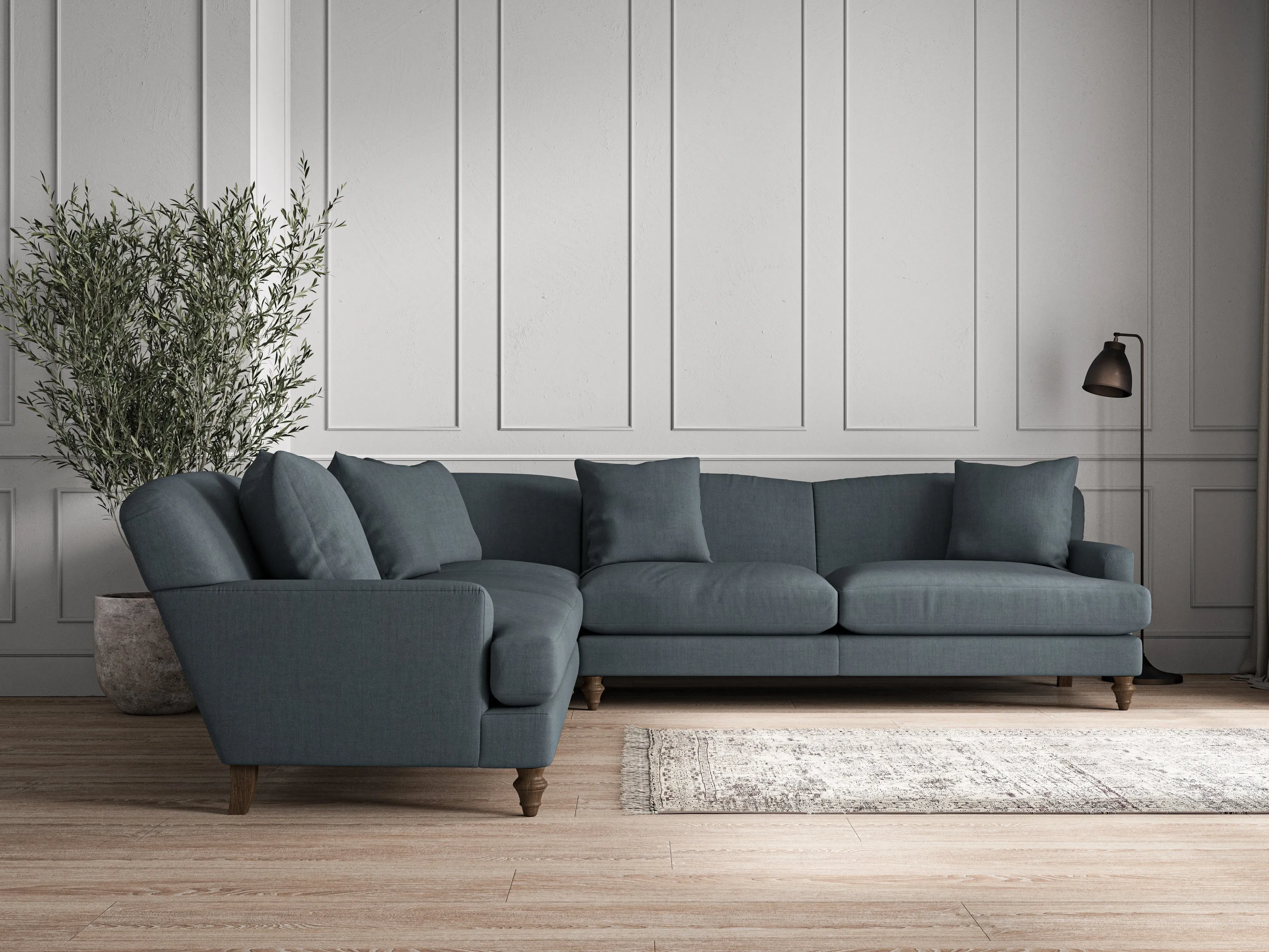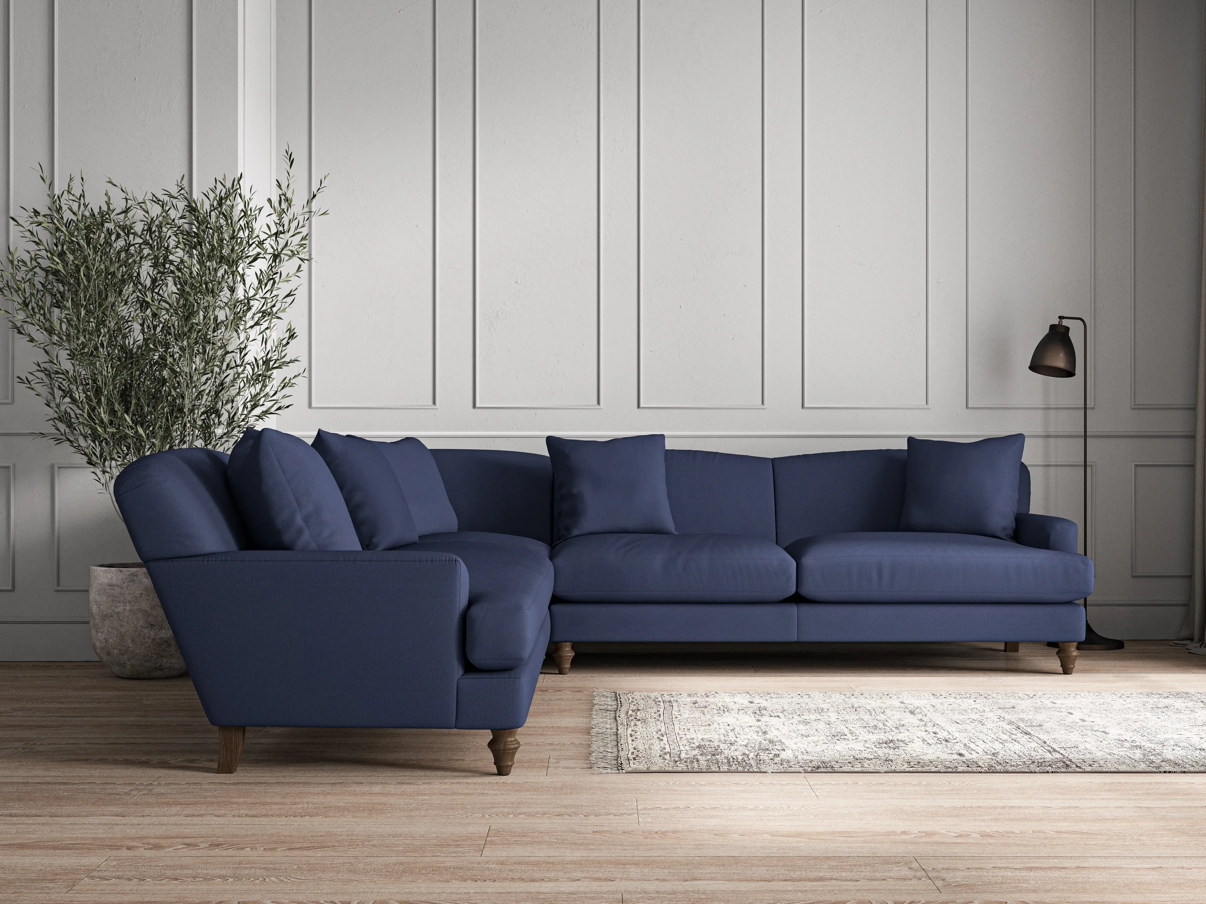 nkuku Deni Corner Sofa | Make To Order | Large | Recycled Cotton Airforce
