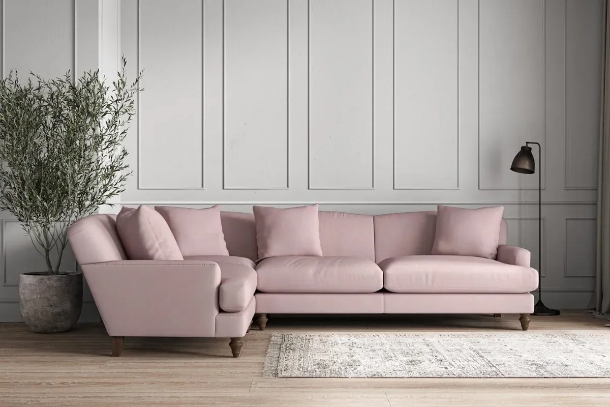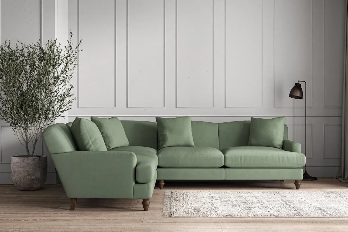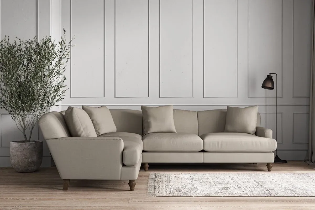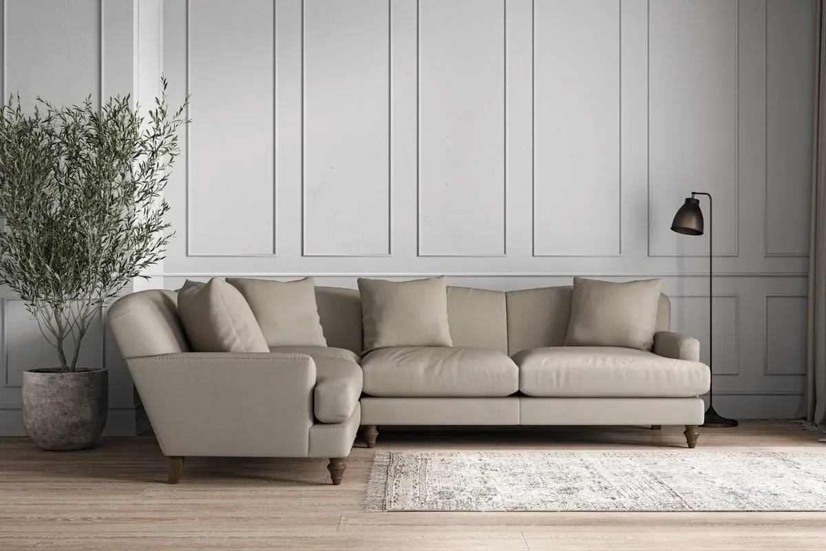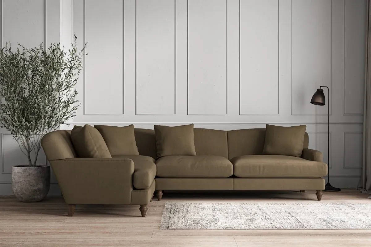 The Deni Large Right Hand Corner Sofa offers comfortable seating with its generous large design, upholstered in premium recycled cotton. Its right-hand configuration provides optimal seating arrangement, while the airforce fabric adds sophisticated appeal to any living space. The made-to-order construction ensures quality craftsmanship, and the recycled cotton upholstery delivers both durability and soft texture.