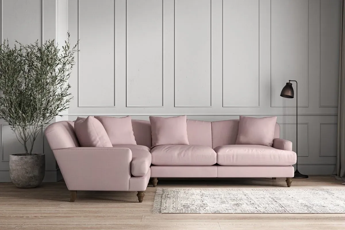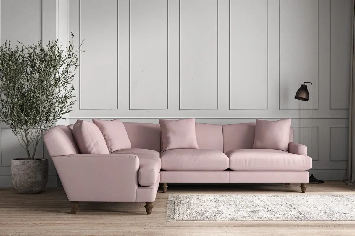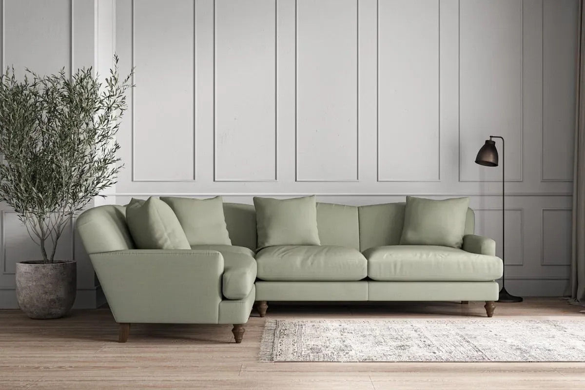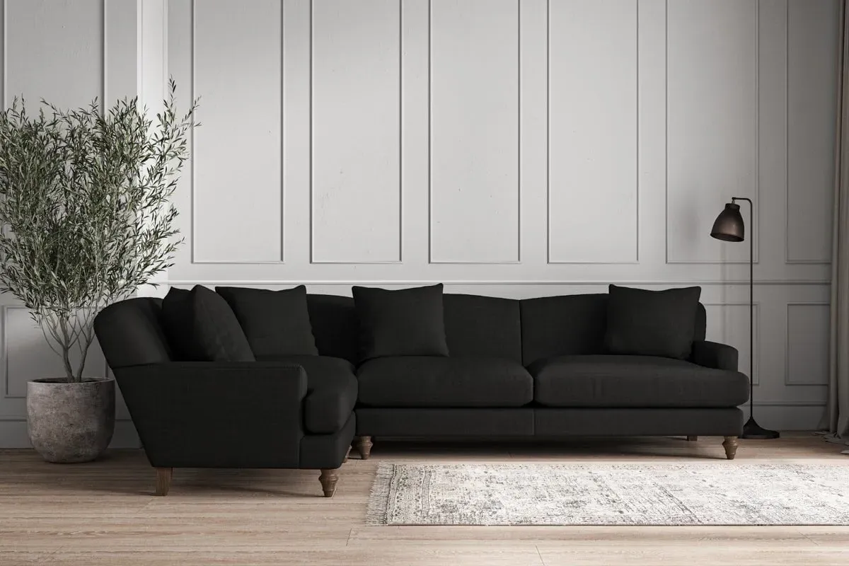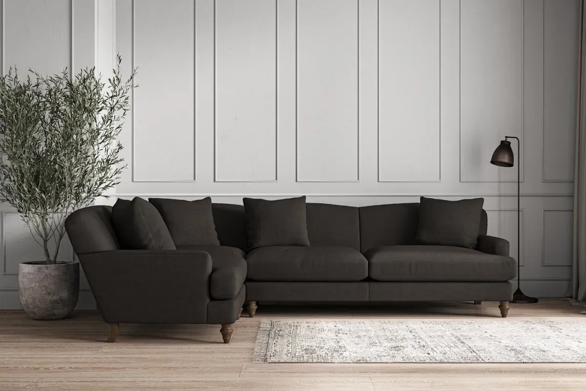 The Deni Large Right Hand Corner Sofa offers comfortable seating with its generous large design, upholstered in premium recycled cotton. Its right-hand configuration provides optimal seating arrangement, while the airforce fabric adds sophisticated appeal to any living space. The made-to-order construction ensures quality craftsmanship, and the recycled cotton upholstery delivers both durability and soft texture.