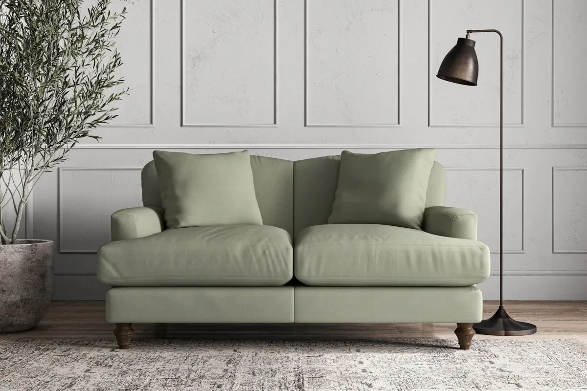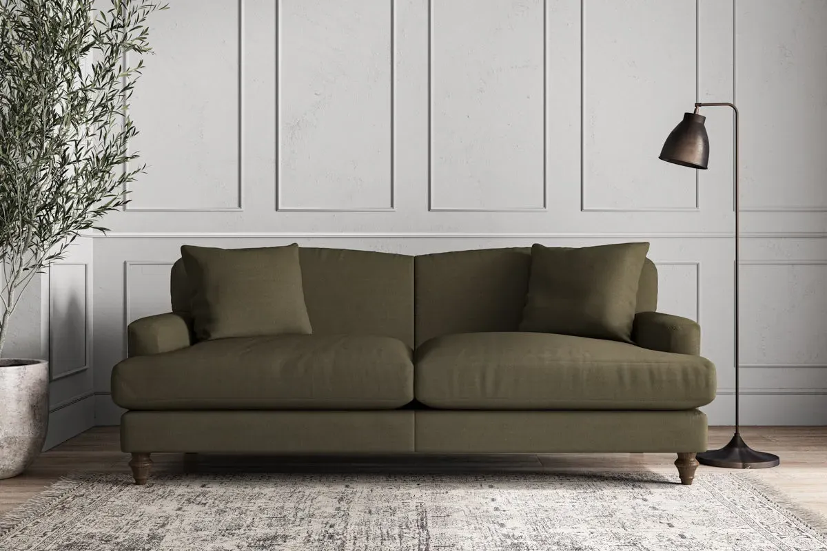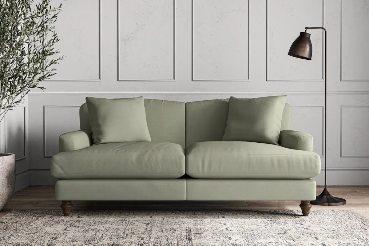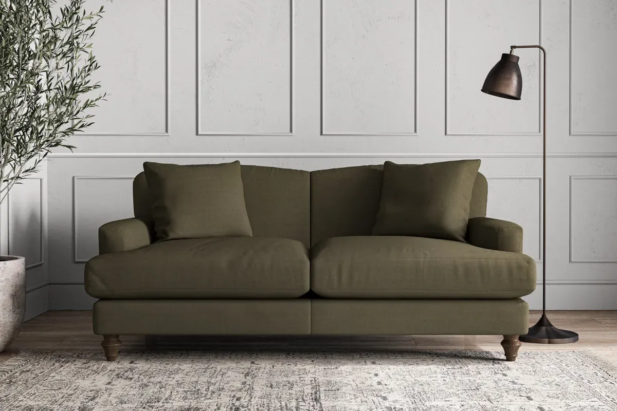 The Deni Sofa offers tailored comfort with its compact small size, upholstered in sustainable recycled cotton fabric. Its custom make-to-order construction ensures quality craftsmanship, while the airforce colorway adds contemporary depth to any space. The sturdy frame provides lasting support and the recycled cotton material delivers both durability and eco-conscious appeal.