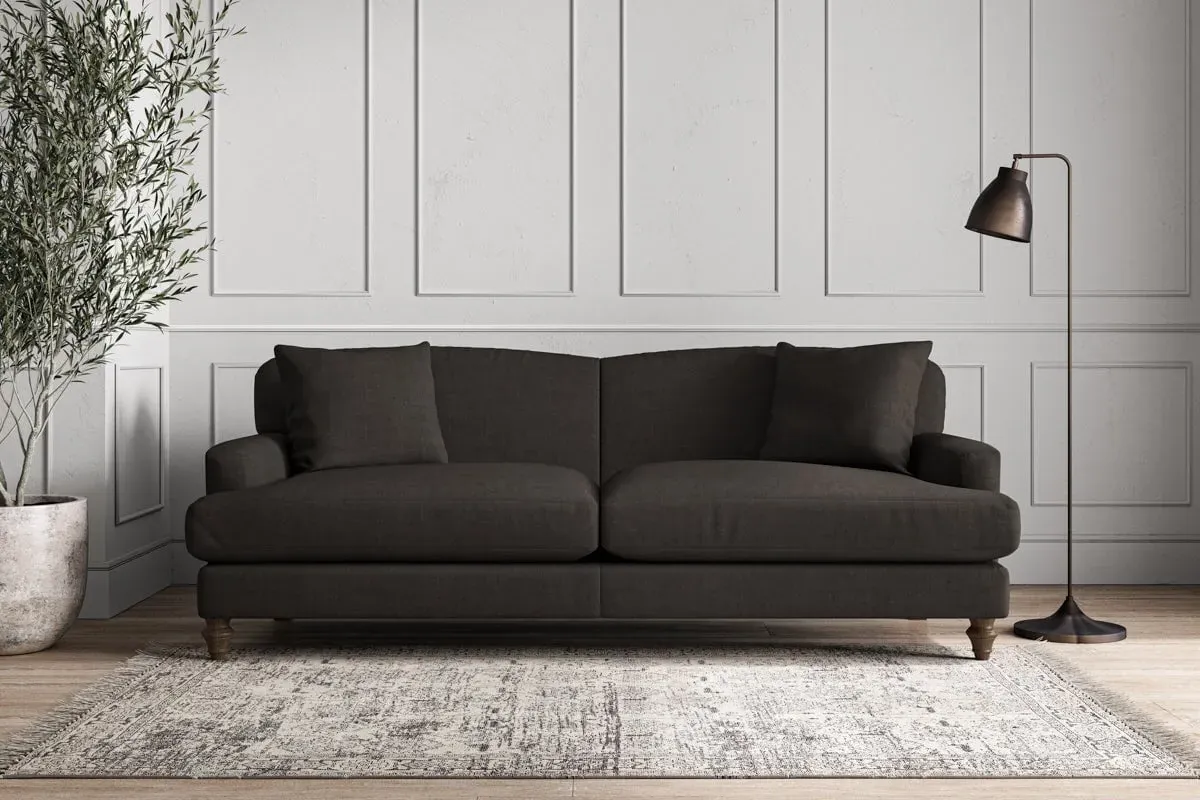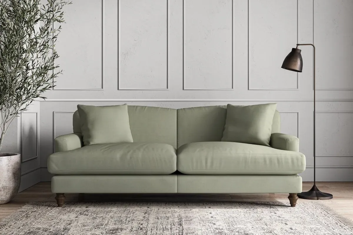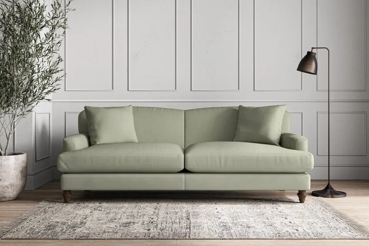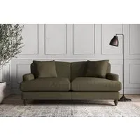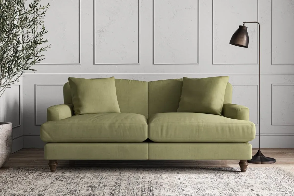 The Deni Sofa offers tailored comfort with its compact small size, upholstered in sustainable recycled cotton fabric. Its custom make-to-order construction ensures quality craftsmanship, while the airforce colorway adds contemporary depth to any space. The sturdy frame provides lasting support and the recycled cotton material delivers both durability and eco-conscious appeal.