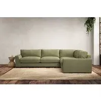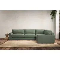The Guddu Left Hand Corner Sofa offers comfortable seating with its large proportions and L-shaped configuration. Upholstered in recycled cotton fabric, it provides both comfort and sustainability for daily use. The left-hand orientation suits various room layouts, while the airforce finish adds sophisticated appeal to any space.