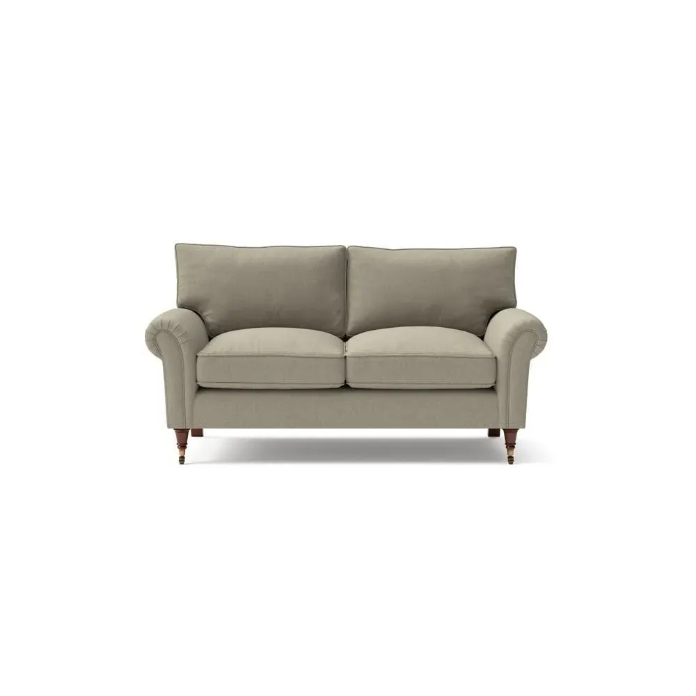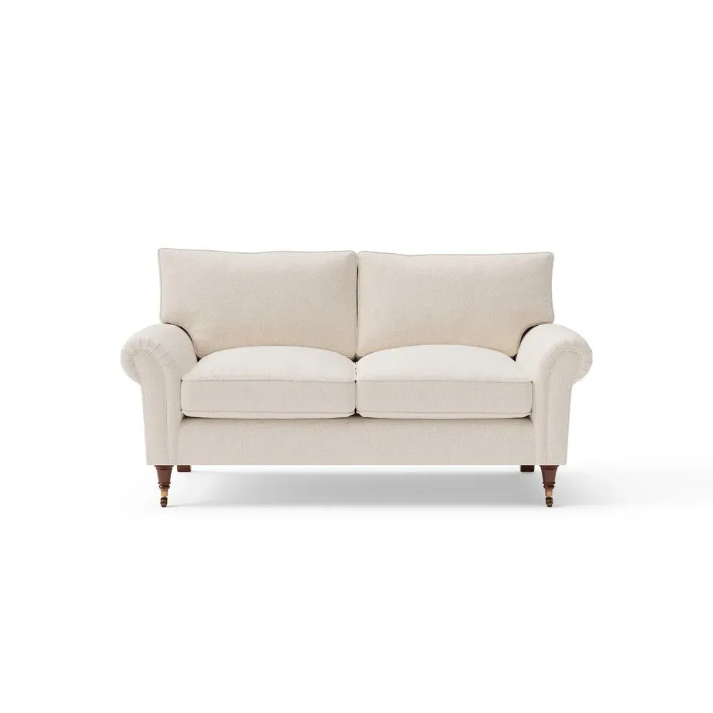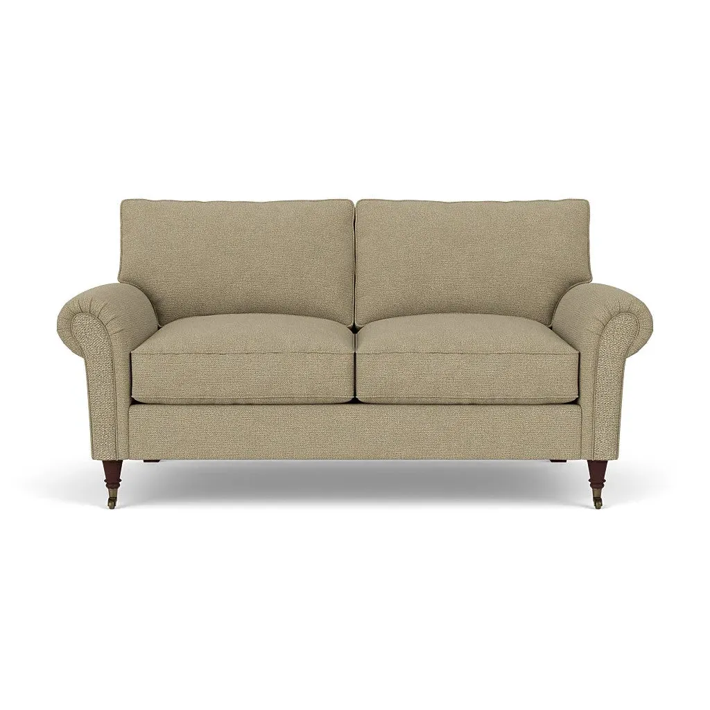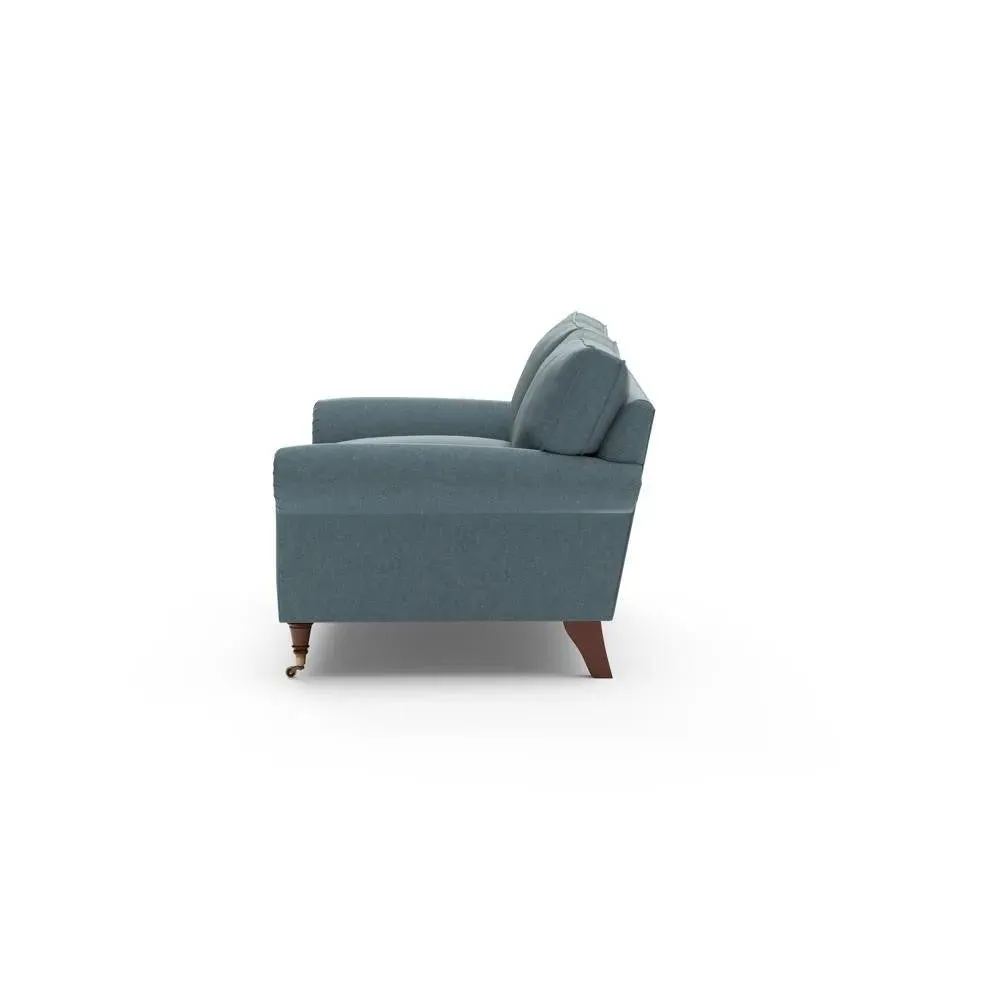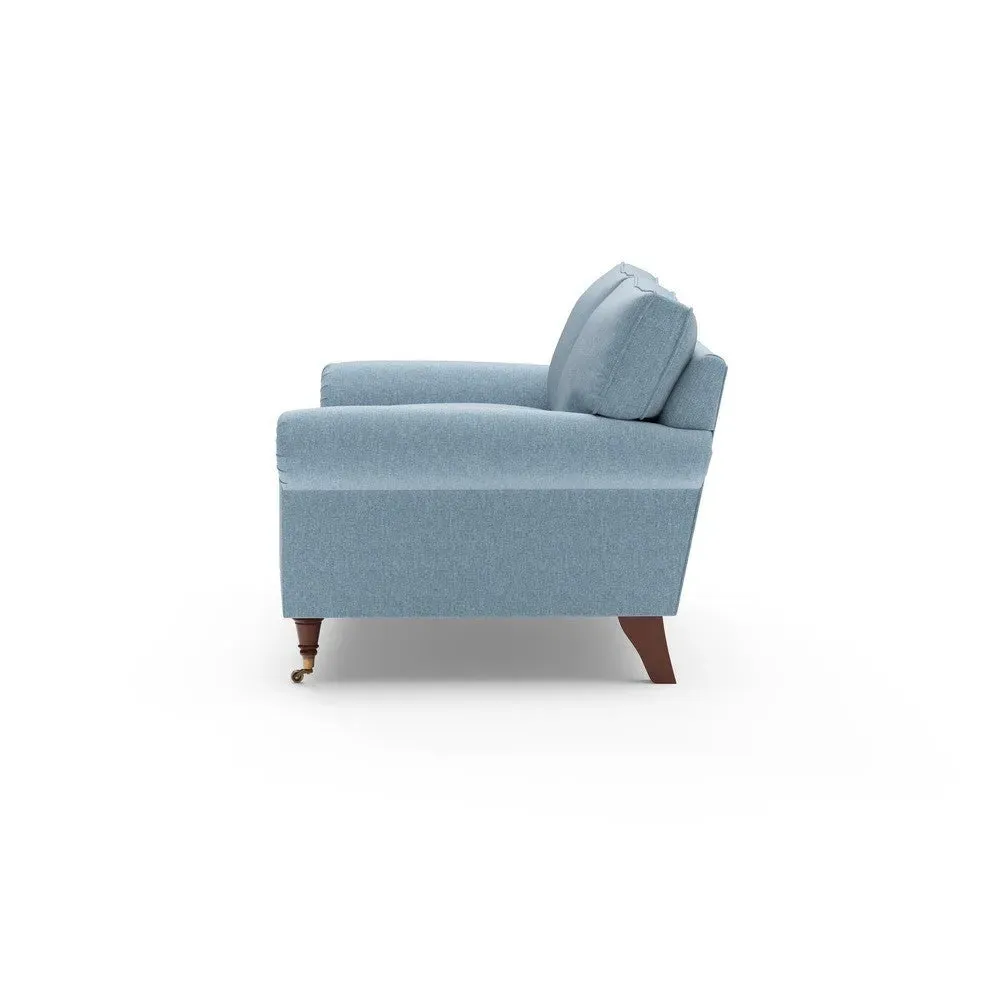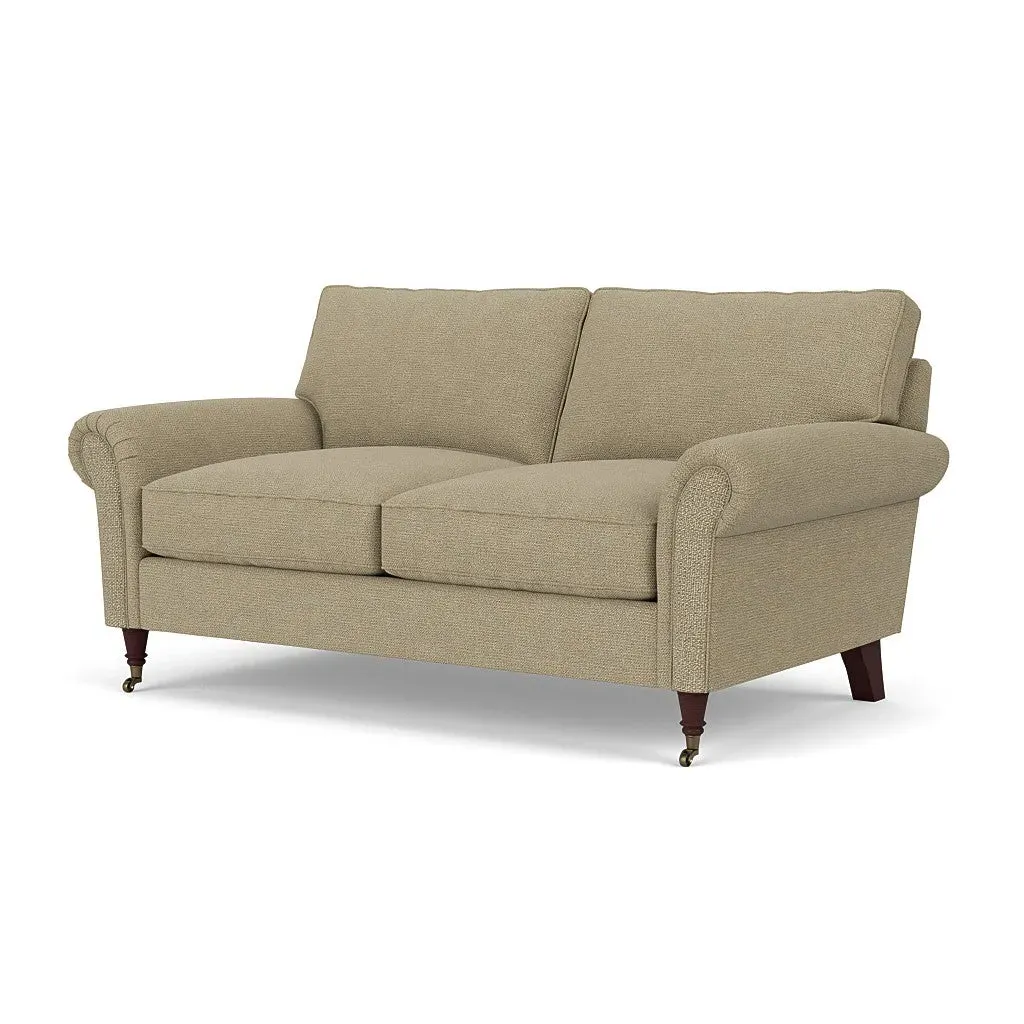 The sofa combines comfort with pleated detailing and classic castor feet. Its open arms provide easy resting space, while the house weave upholstery adds texture and durability. Available in luxurious feather or low maintenance interior options to suit different preferences.