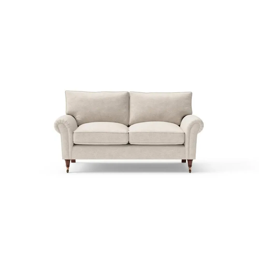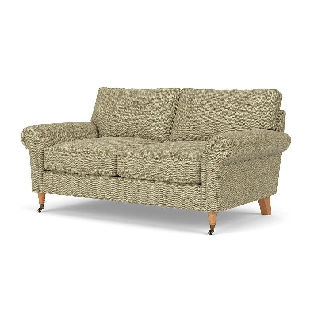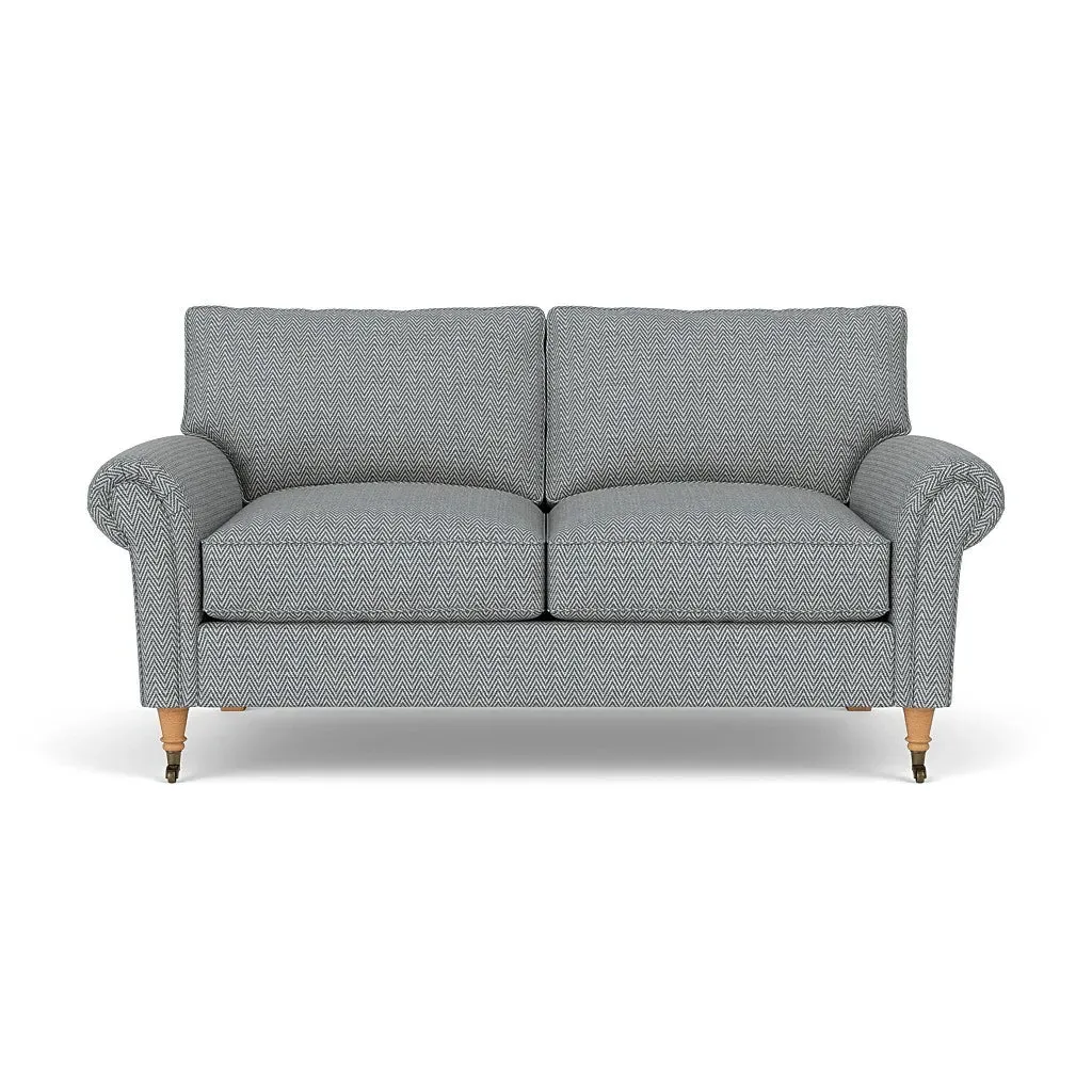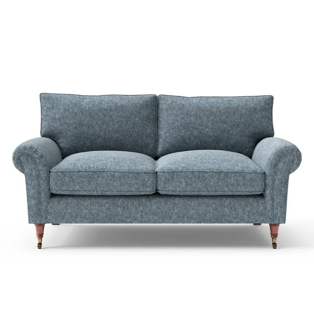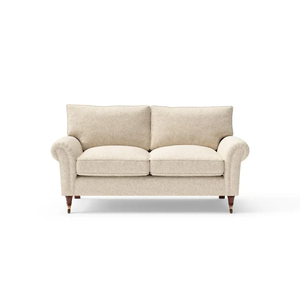 The sofa combines comfort with pleated detailing and classic castor feet. Its open arms provide easy resting space, while the house weave upholstery adds texture and durability. Available in luxurious feather or low maintenance interior options to suit different preferences.