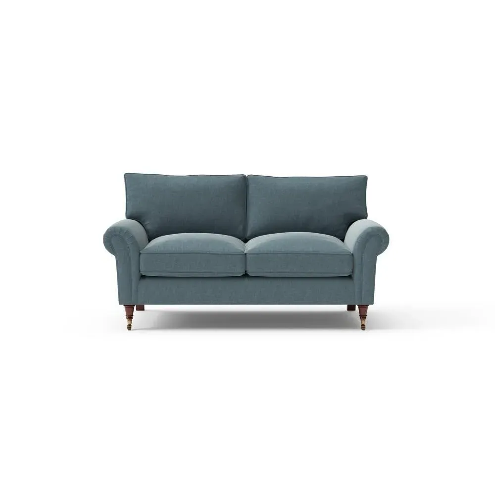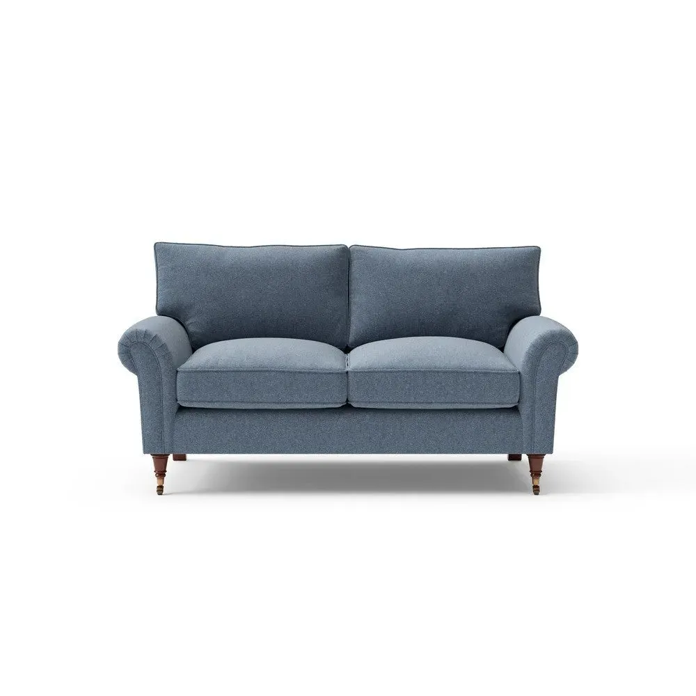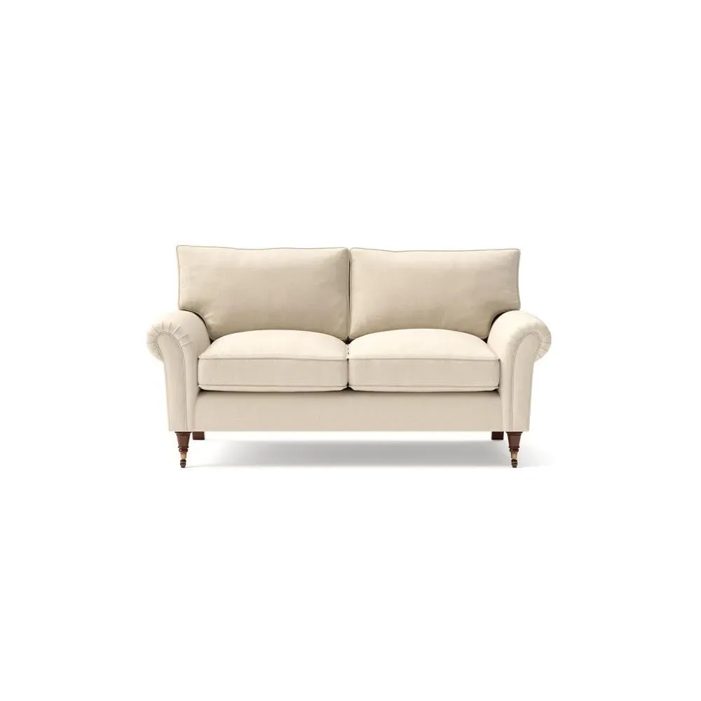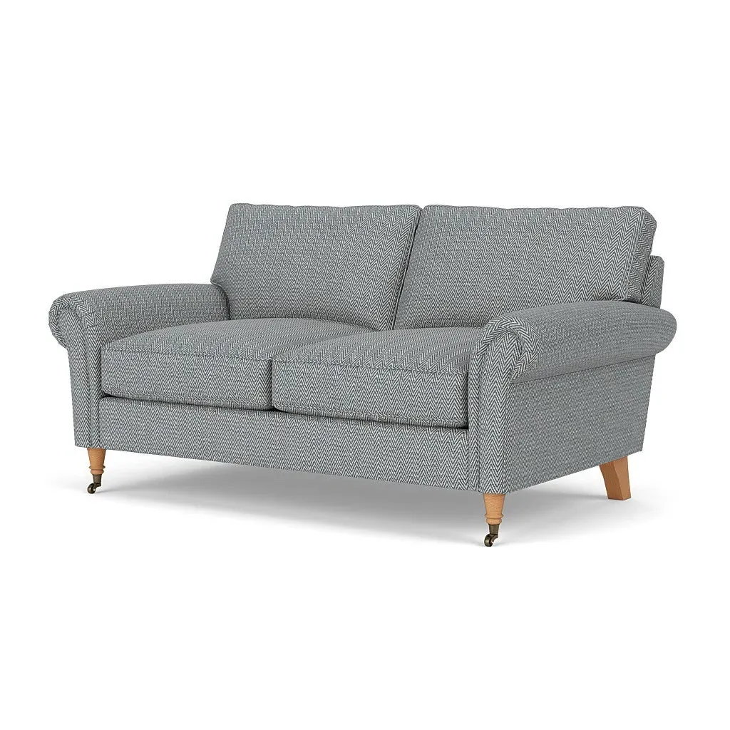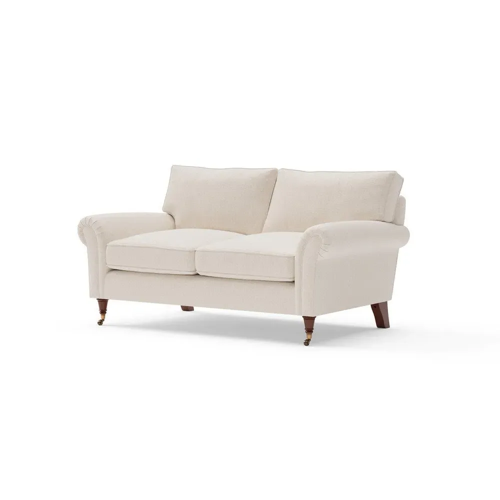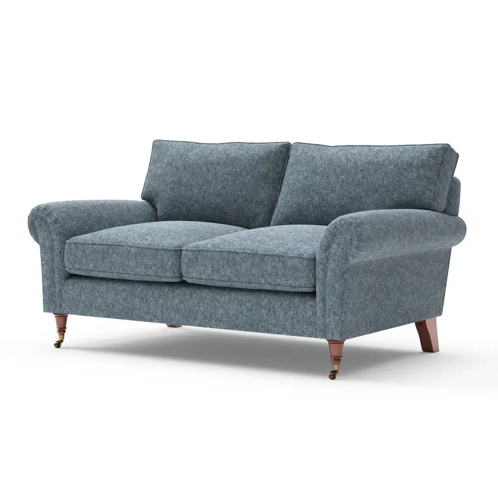 The sofa combines comfort with pleated detailing and classic castor feet. Its open arms provide easy resting space, while the house weave upholstery adds texture and durability. Available in luxurious feather or low maintenance interior options to suit different preferences.