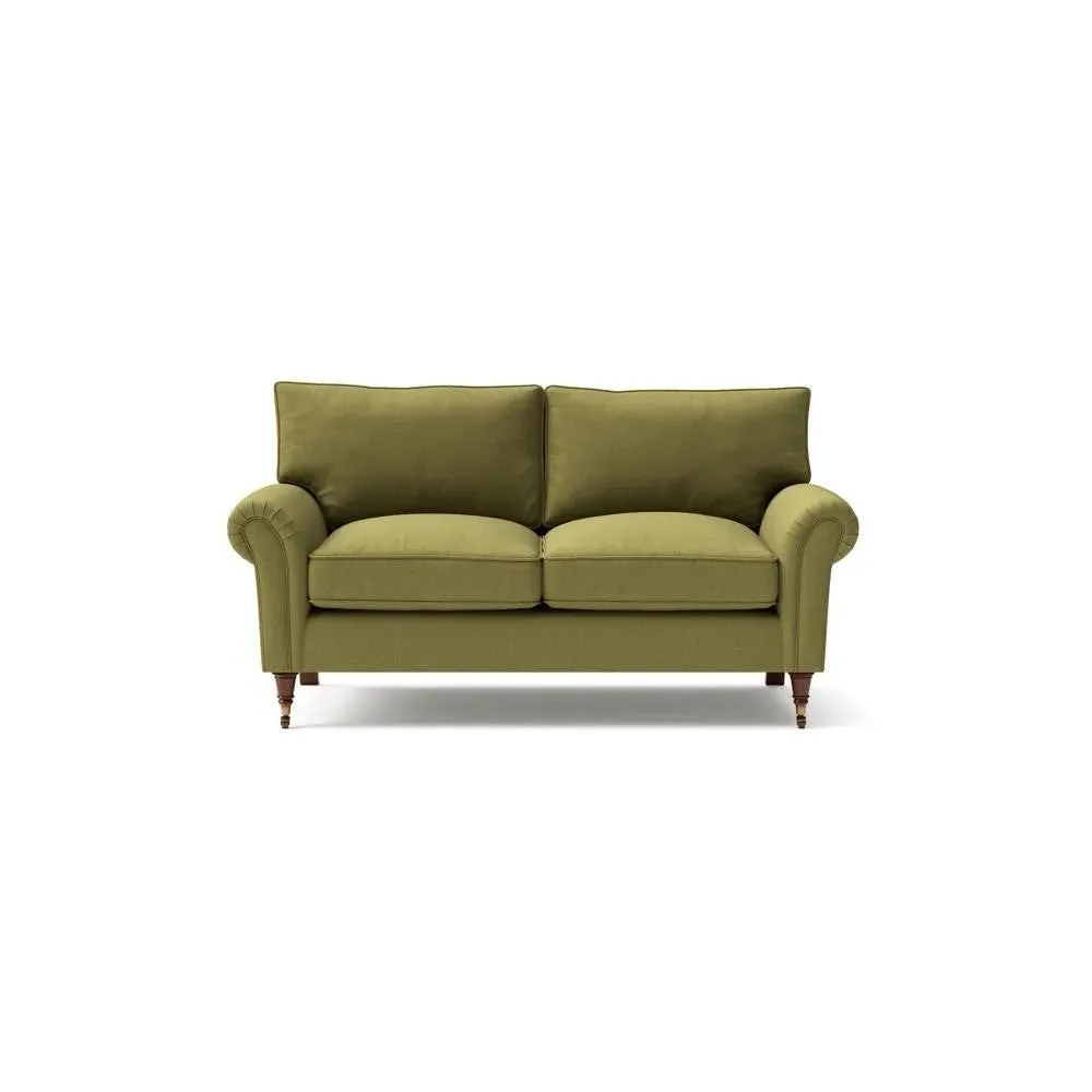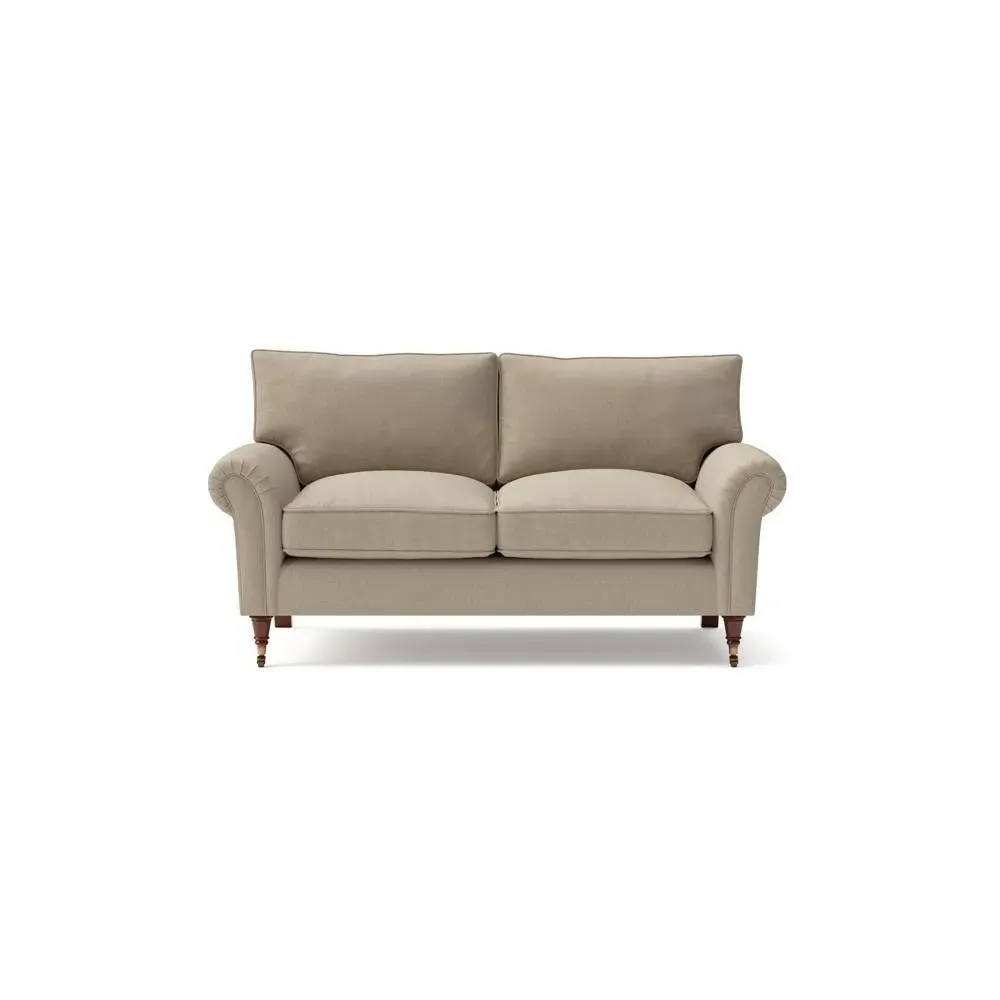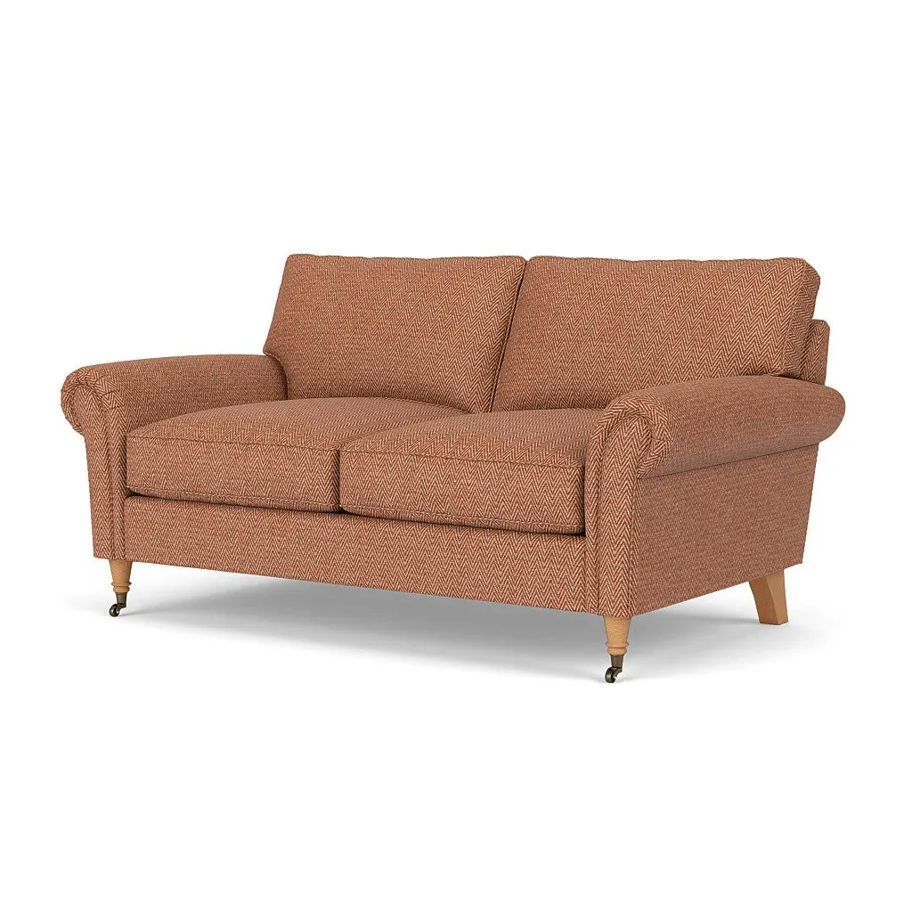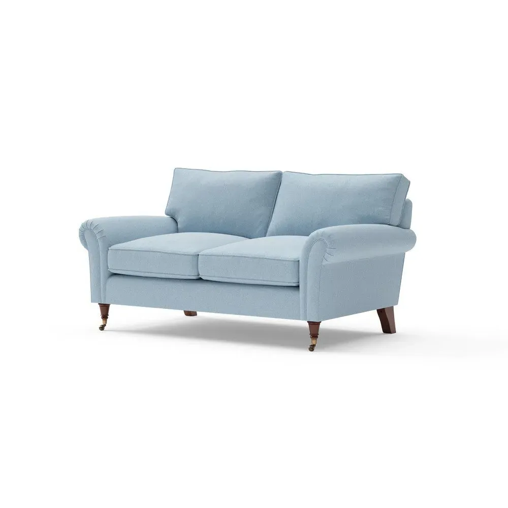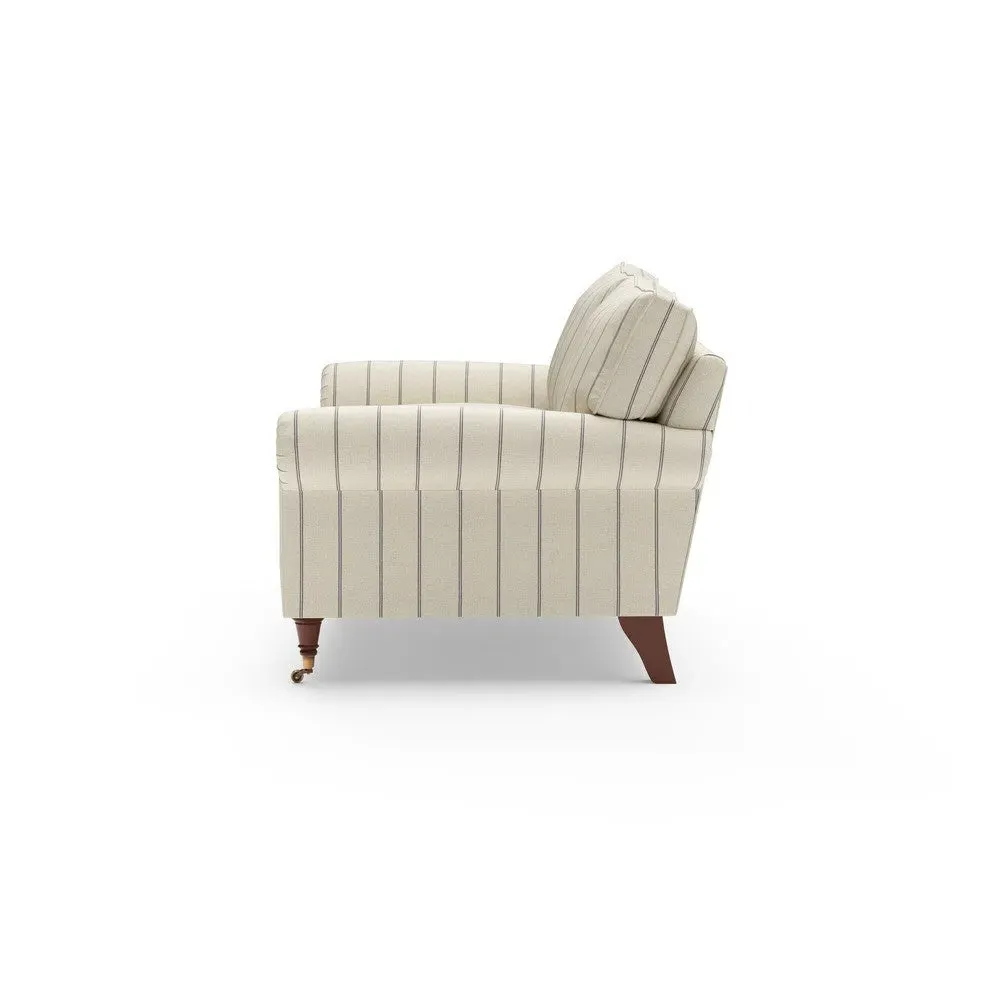 The sofa combines comfort with pleated detailing and classic castor feet. Its open arms provide easy resting space, while the house weave upholstery adds texture and durability. Available in luxurious feather or low maintenance interior options to suit different preferences.