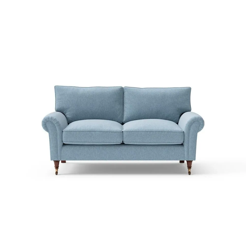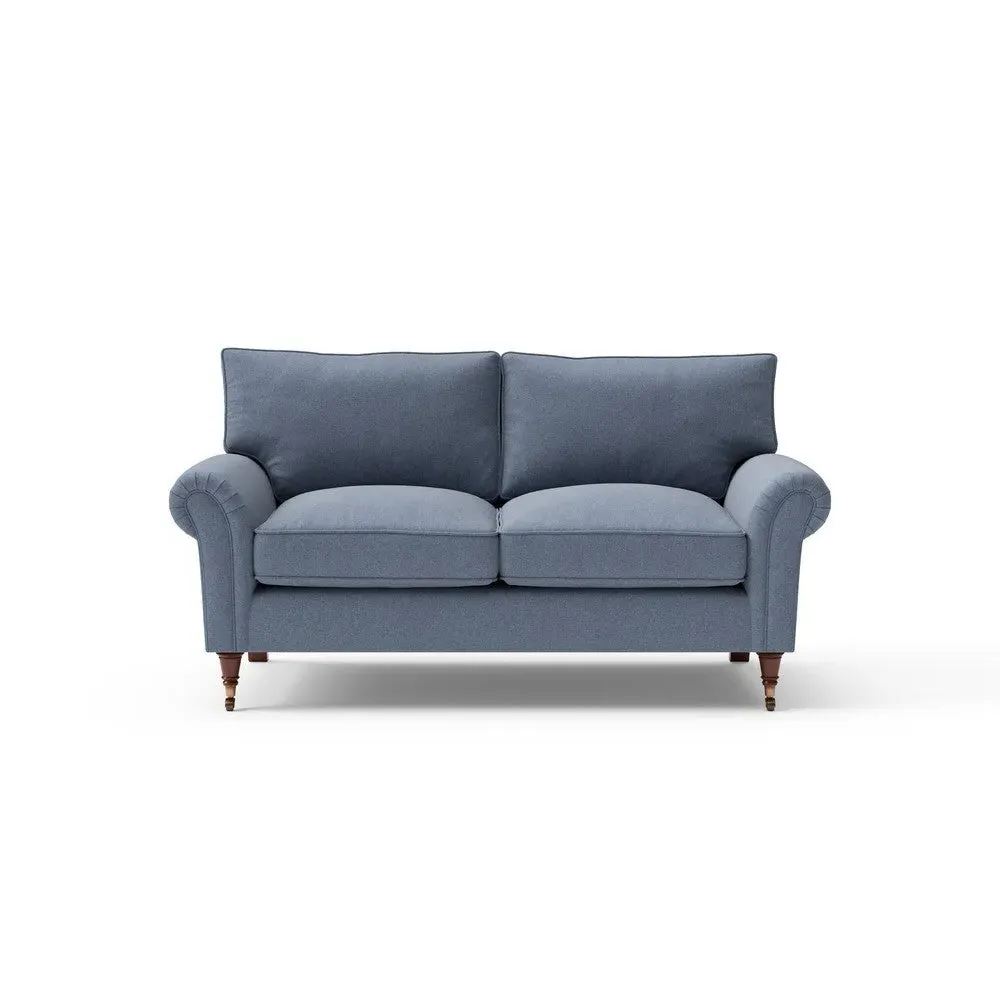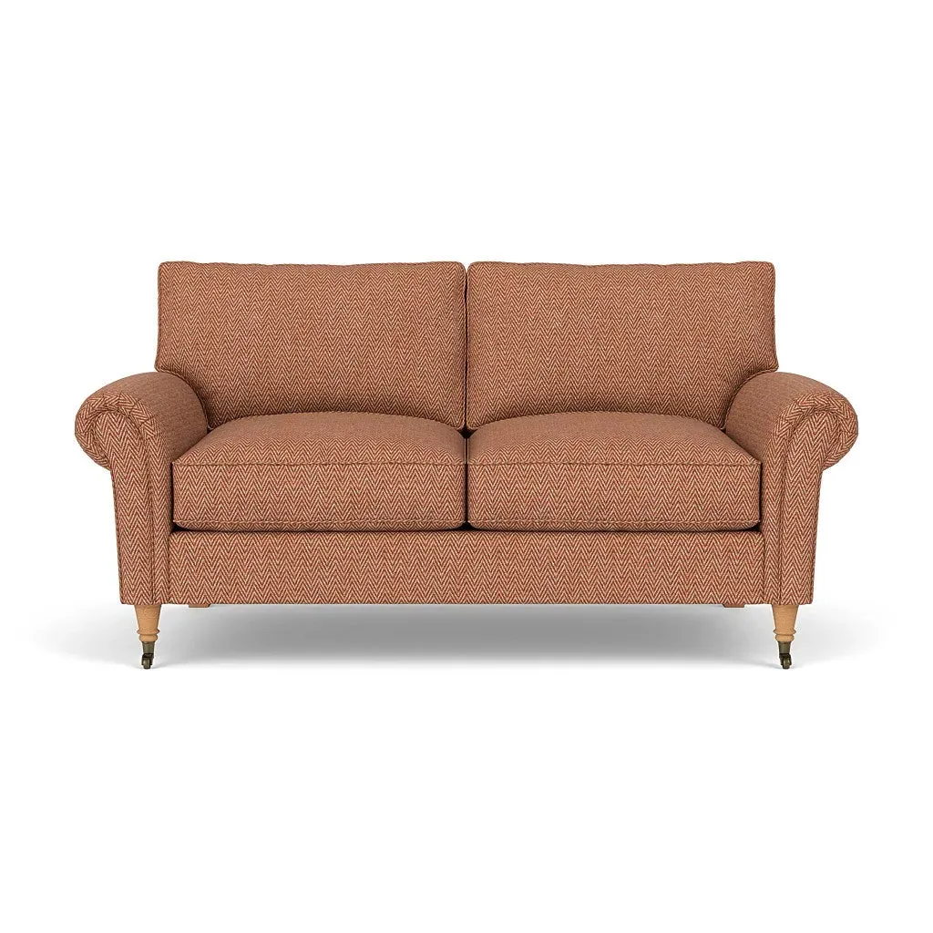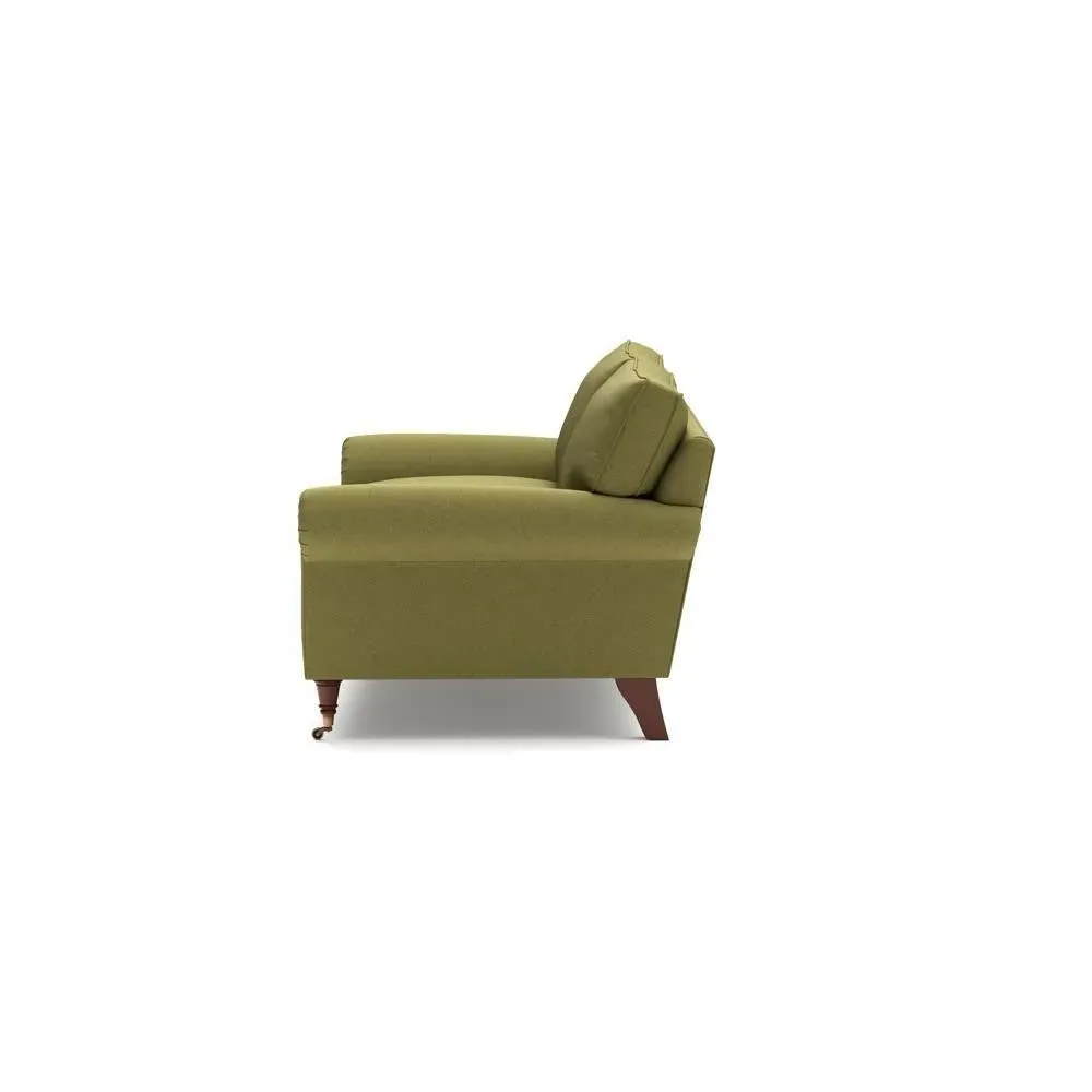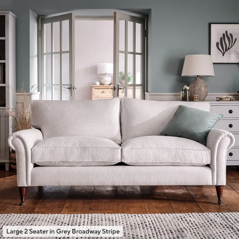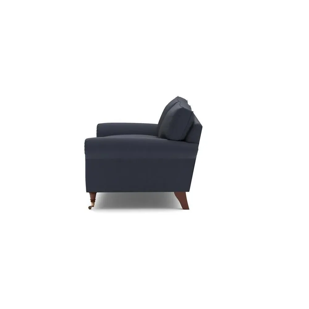 The sofa combines comfort with pleated detailing and classic castor feet. Its open arms provide easy resting space, while the house weave upholstery adds texture and durability. Available in luxurious feather or low maintenance interior options to suit different preferences.