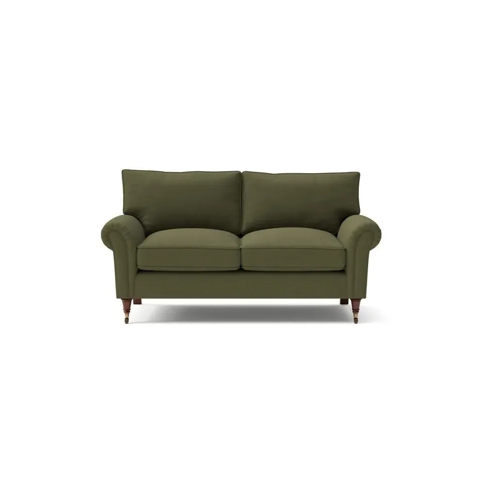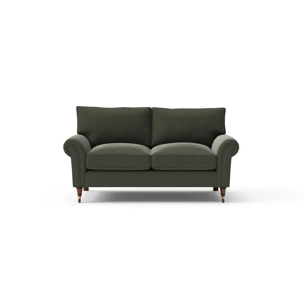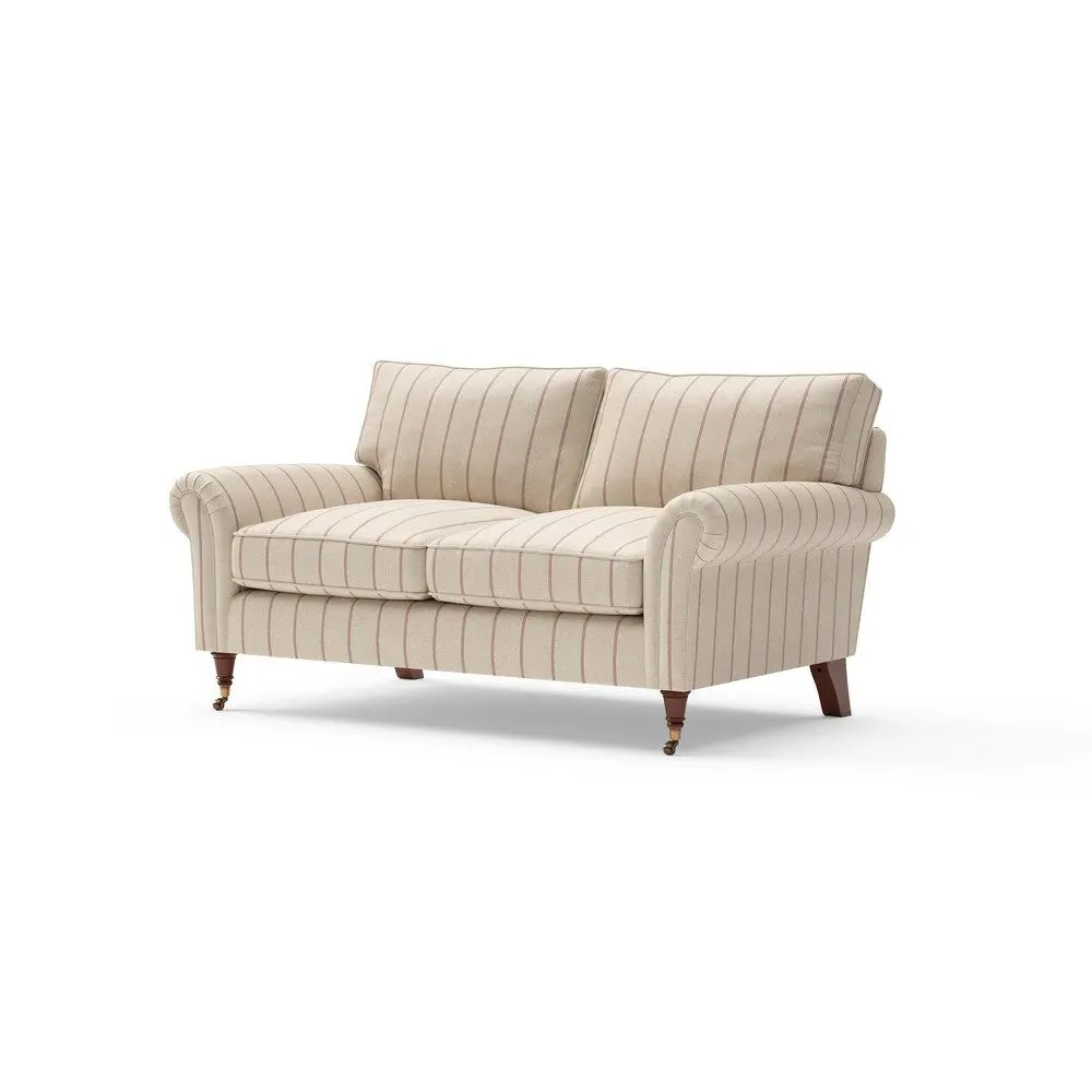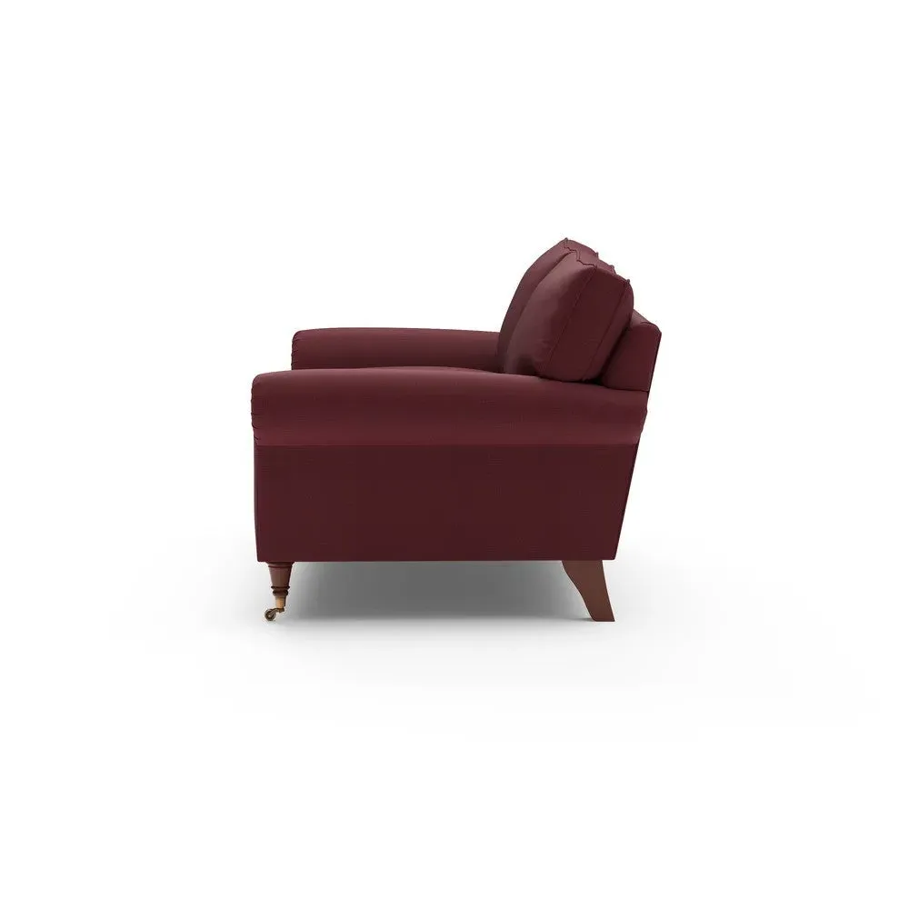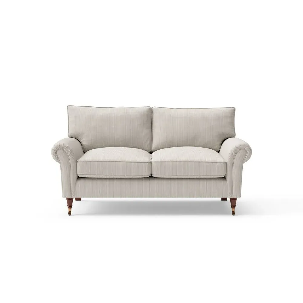 The sofa combines comfort with pleated detailing and classic castor feet. Its open arms provide easy resting space, while the house weave upholstery adds texture and durability. Available in luxurious feather or low maintenance interior options to suit different preferences.