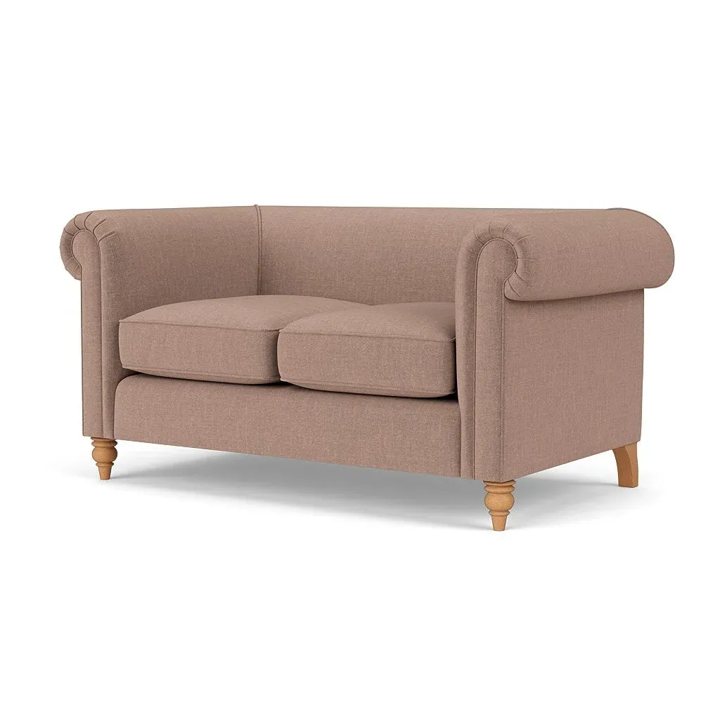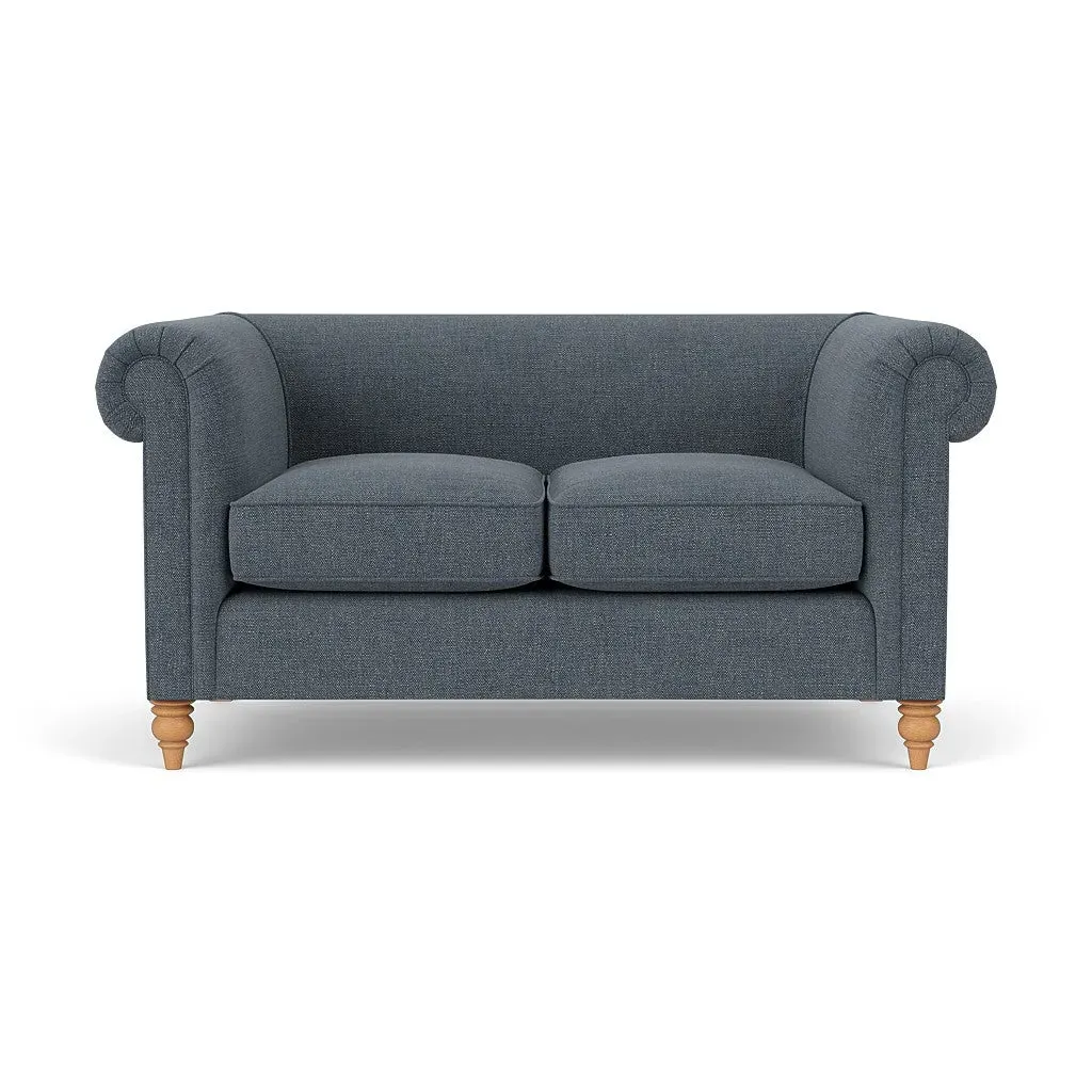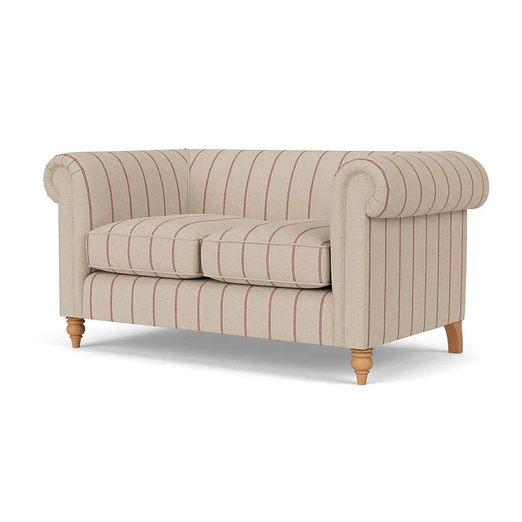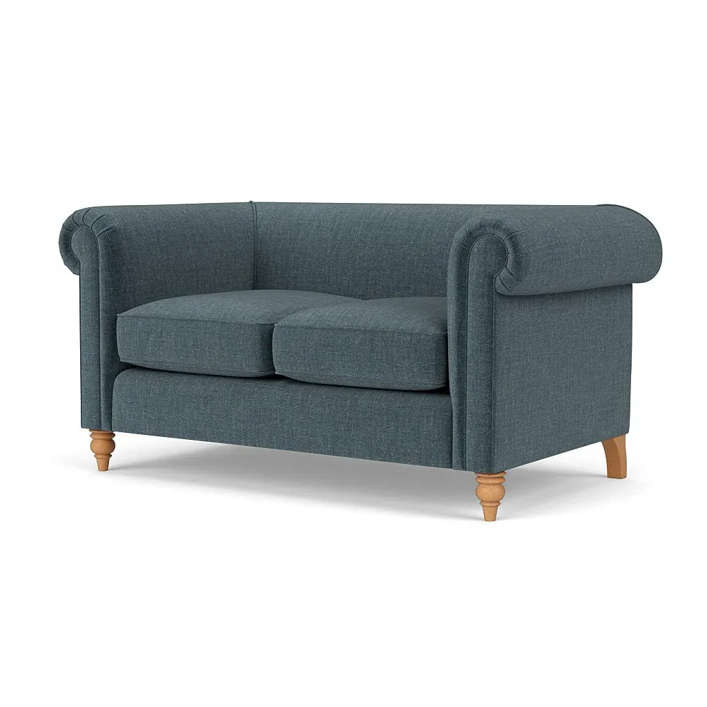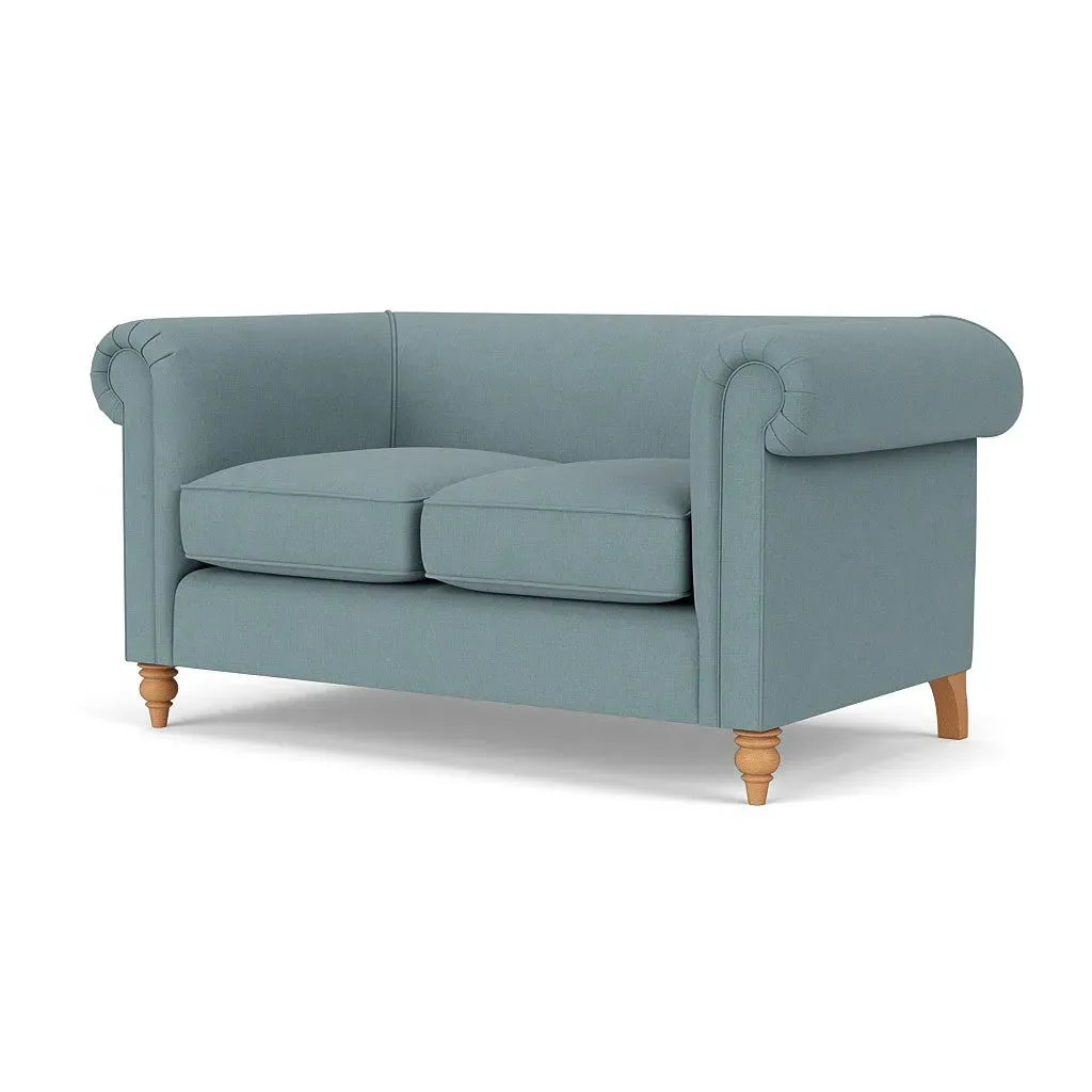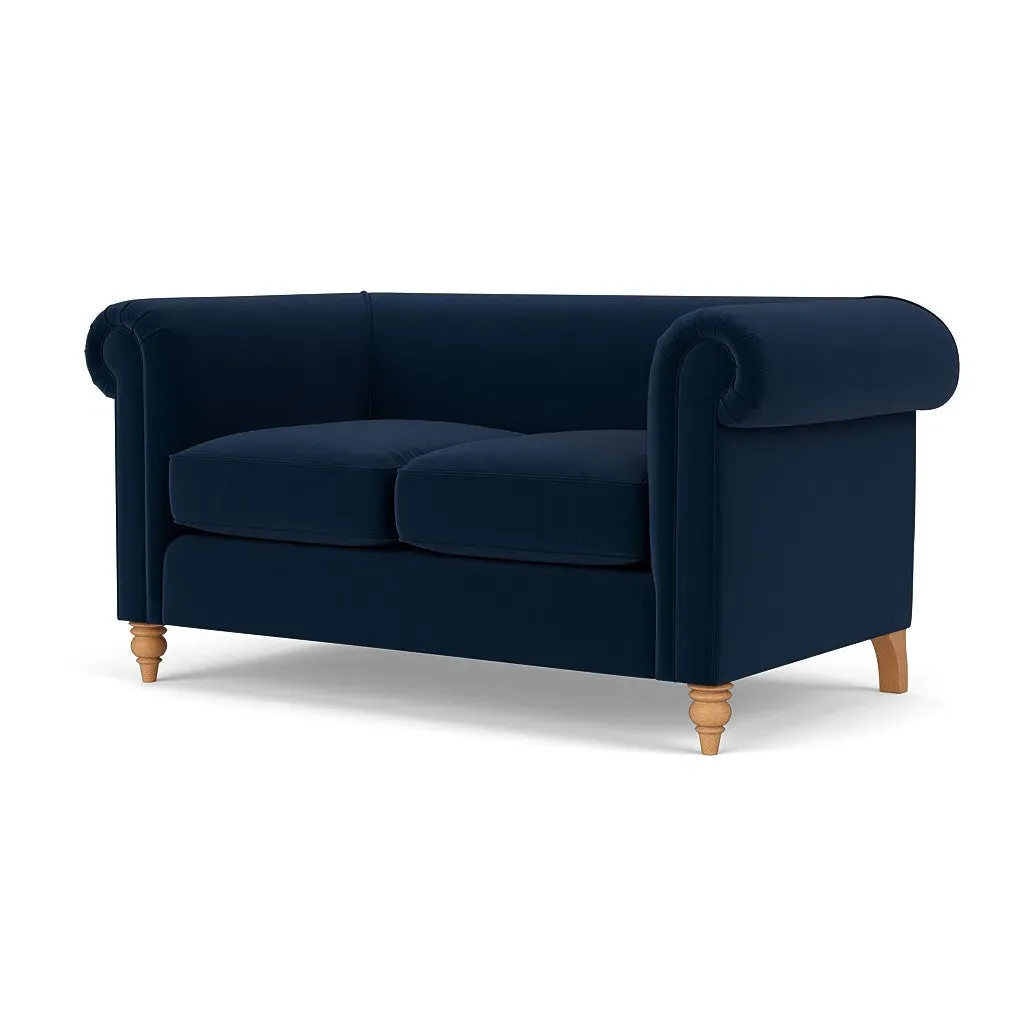 The 2-seater sofa offers Chesterfield-inspired comfort with its low back and gently scrolled arms. Piping along the seat cushions and arms provides a tailored finish, while the beautifully turned feet add character. The deep, sink-in design suits relaxed seating, and the choice of feather or fibre fillings ensures personalized comfort.