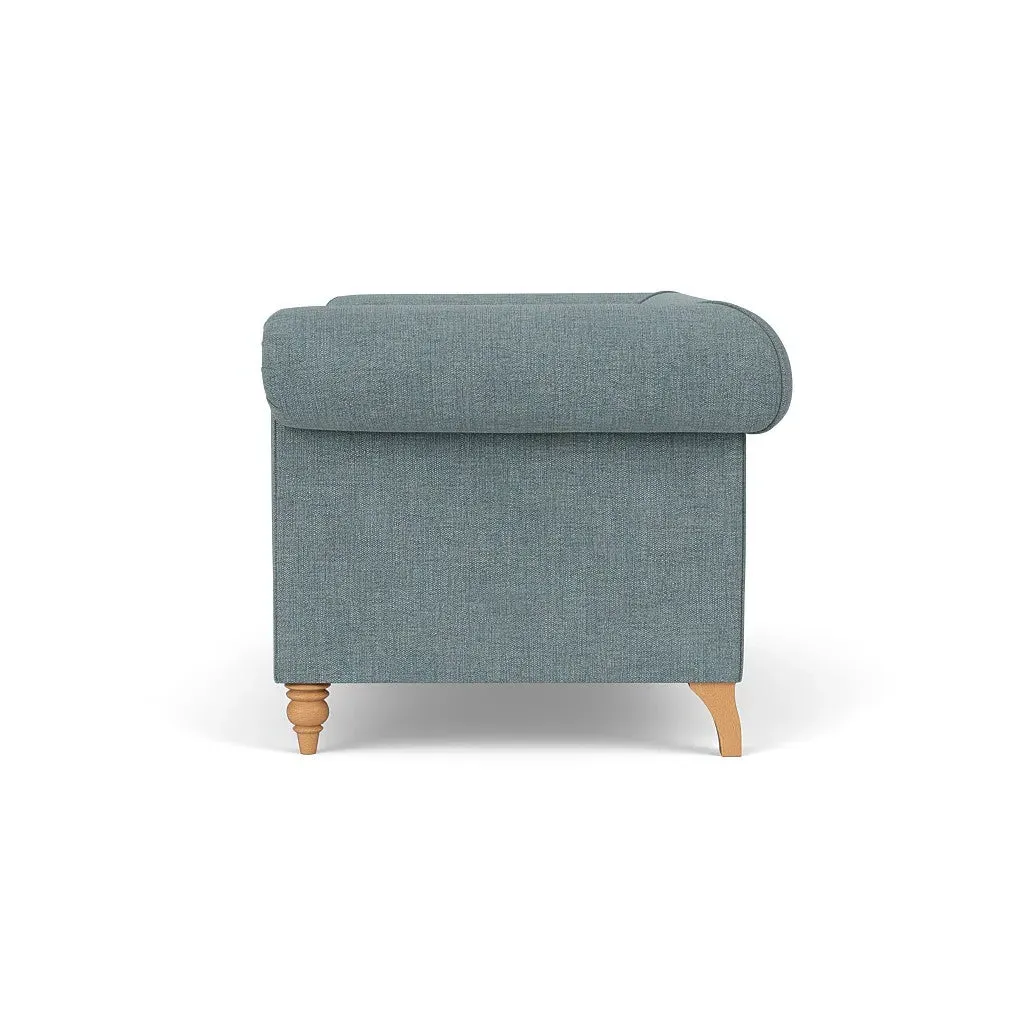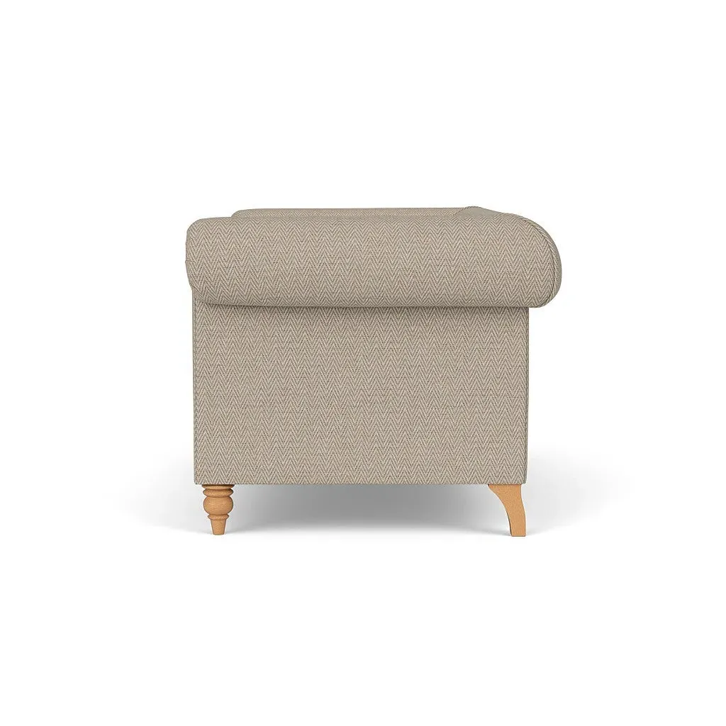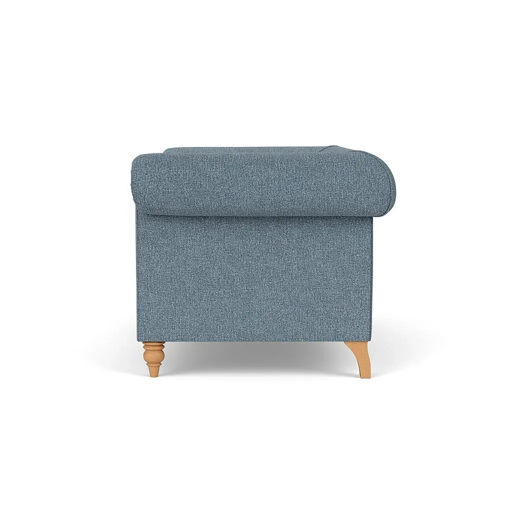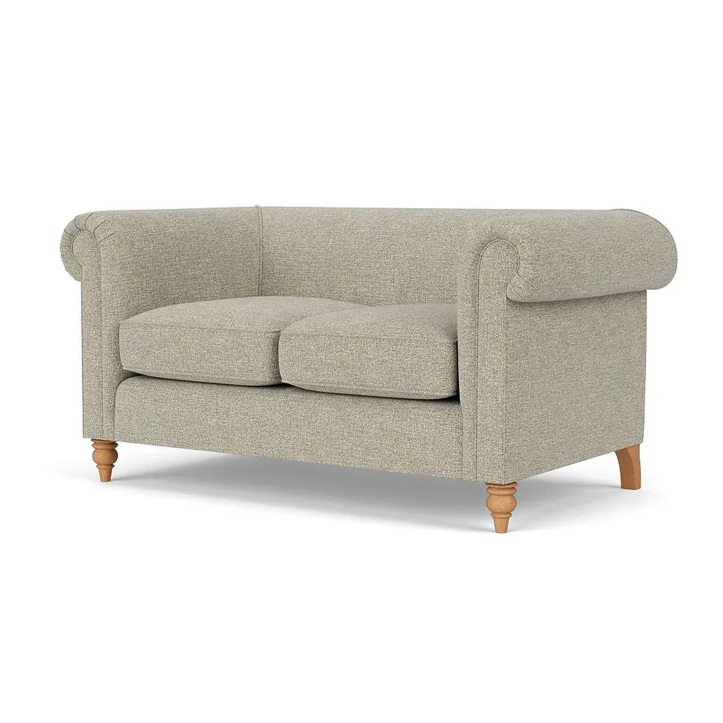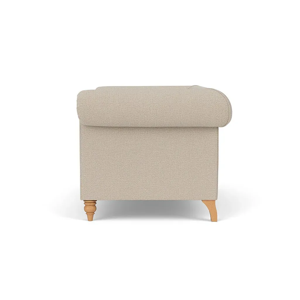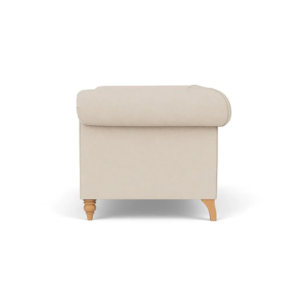 The 2-seater sofa offers Chesterfield-inspired comfort with its low back and gently scrolled arms. Piping along the seat cushions and arms provides a tailored finish, while the beautifully turned feet add character. The deep, sink-in design suits relaxed seating, and the choice of feather or fibre fillings ensures personalized comfort.