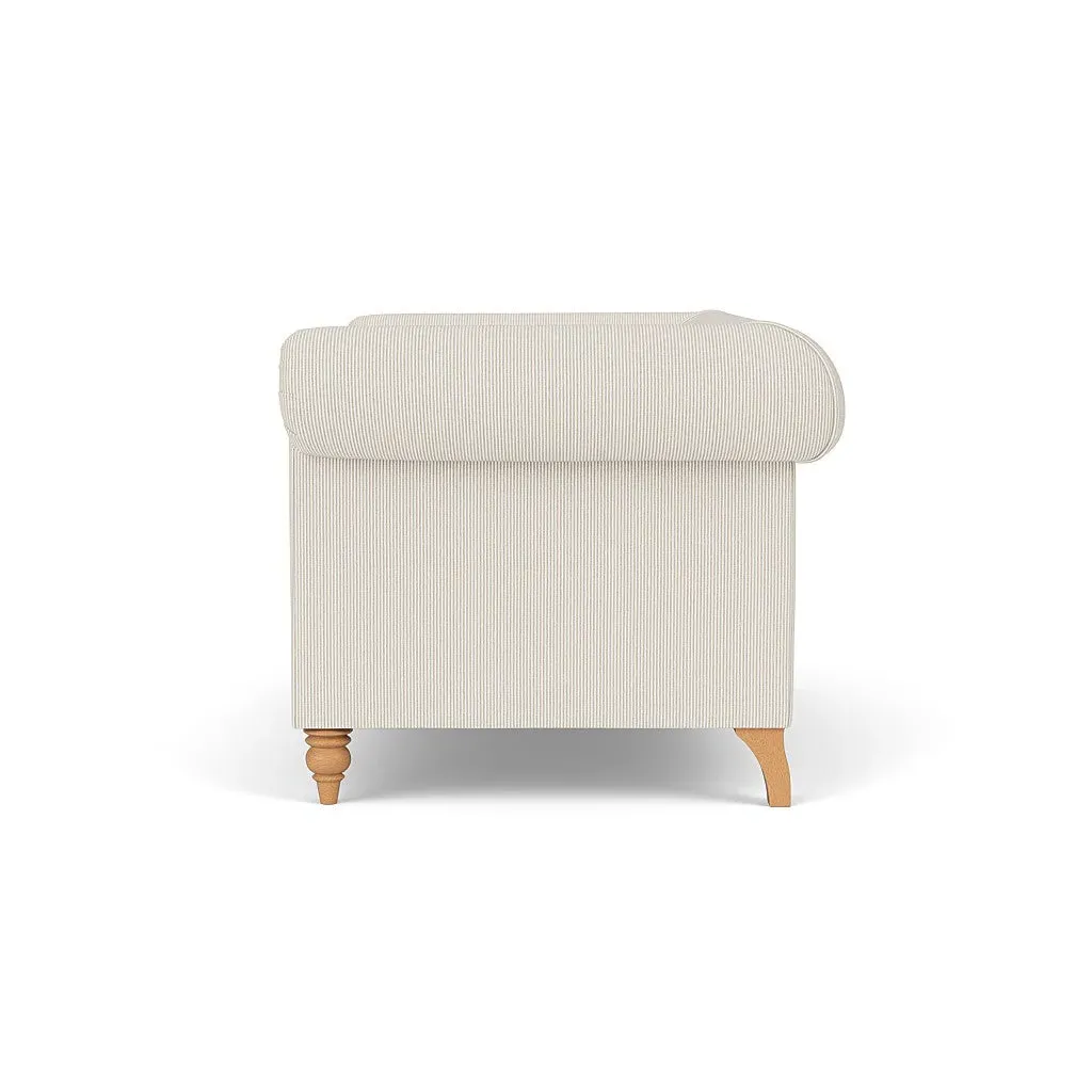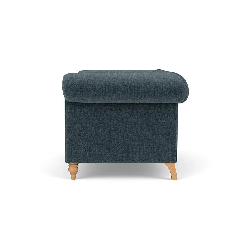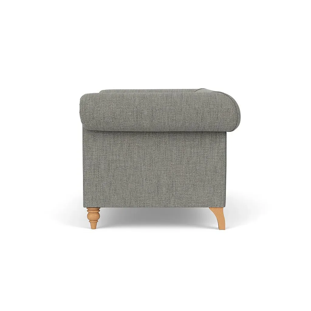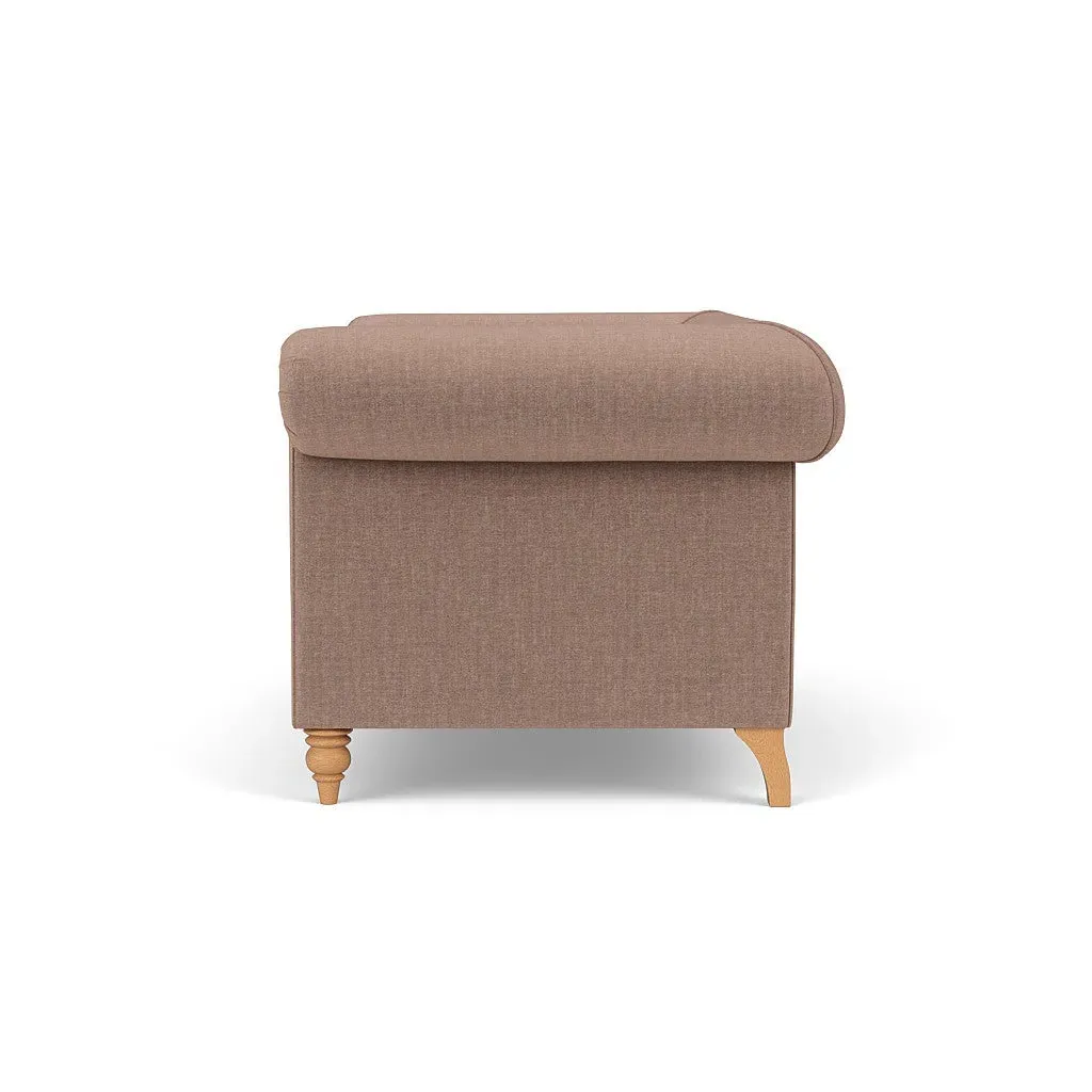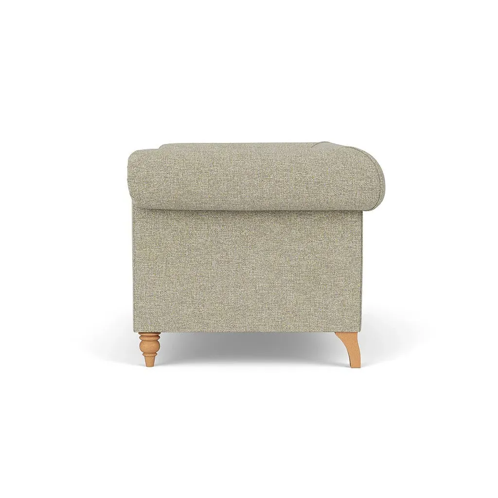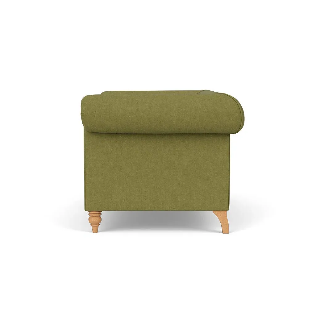 The 2-seater sofa offers Chesterfield-inspired comfort with its low back and gently scrolled arms. Piping along the seat cushions and arms provides a tailored finish, while the beautifully turned feet add character. The deep, sink-in design suits relaxed seating, and the choice of feather or fibre fillings ensures personalized comfort.