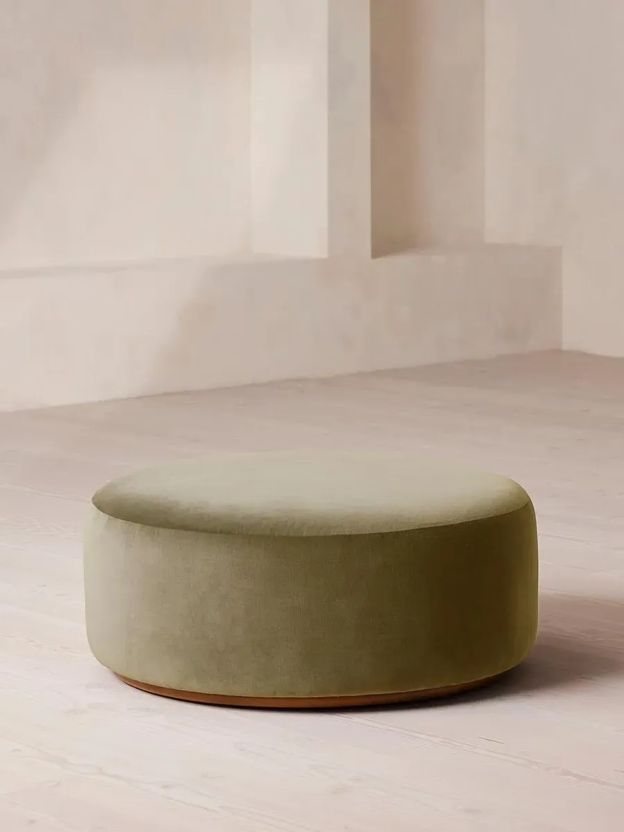 A large, curved silhouette upholstered in velvet is spacious enough to let guests put their feet up, or provide extra seating in social spaces. The curved silhouette of the Aline ottoman is wrapped in velvet in a range of bespoke colours to mirror the social seating areas seen in Soho House Stockholm.