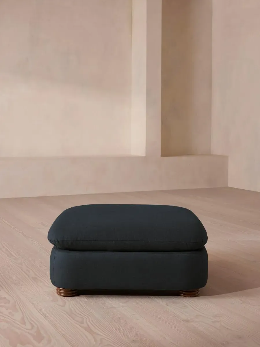 Designed to complement the Rava modular sofa, a square silhouette is softened by curved edges and wrapped in velvet. Taking cues from the social spaces of Soho House Nashville, this ottoman is designed to complement the Rava modular sofa. Upholstered in velvet that comes in our full made-to-order palette, its square silhouette is rounded at the corners for a soft, comfortable finish.