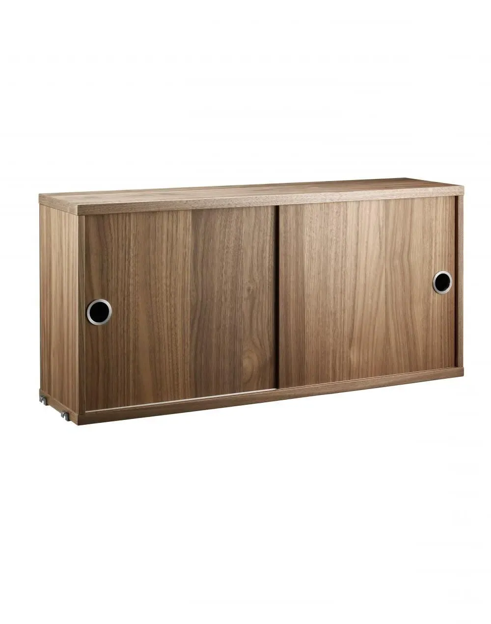 Aesthetic and functional, the String cabinet with sliding doors was designed to fit into all wire and plex panels (both wall and floor versions) from the String Shelving System. Offering a bold visual element to your shelf, it also provides ample extra storage. The cabinet has a middle divider and two adjustable inner shelves, where the inner dimensions are 4cm less than the outer dimensions. The cabinet comes in a wide range of wood and colour options, including white, grey, beige, ash, black stained ash, oak and walnut to suit any and every interior style. A truly multifunctional piece, the String cabinet with sliding doors is a modern must-have for both home and office environments.