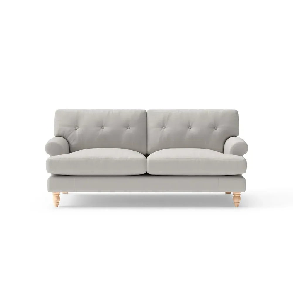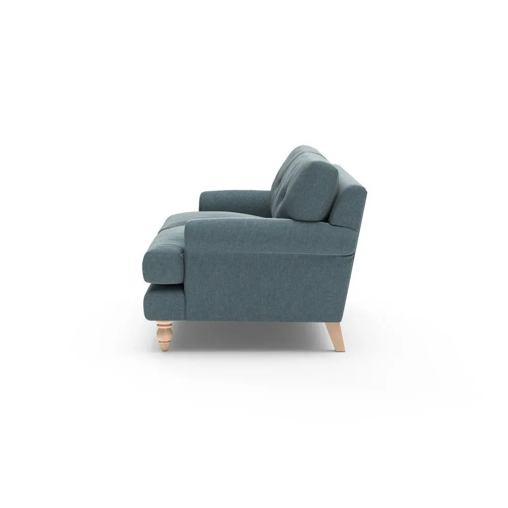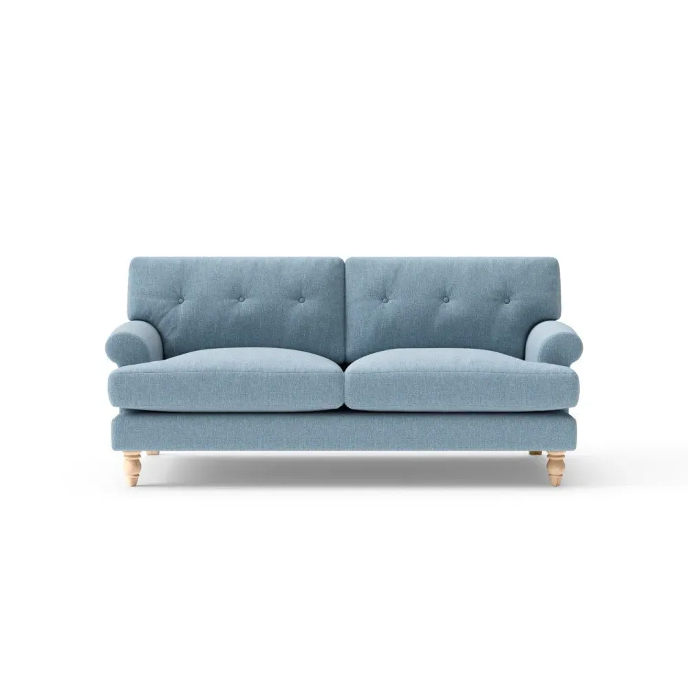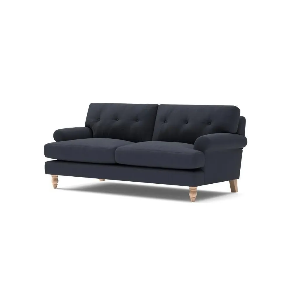 The sofa provides generous comfort with its deep, well-proportioned seats and smart button back detailing. Its relaxed design offers a comforting and supportive embrace, while the house linen mix fabric adds breathability and natural texture. Available in both luxurious feather or low maintenance interior options to accommodate different preferences.