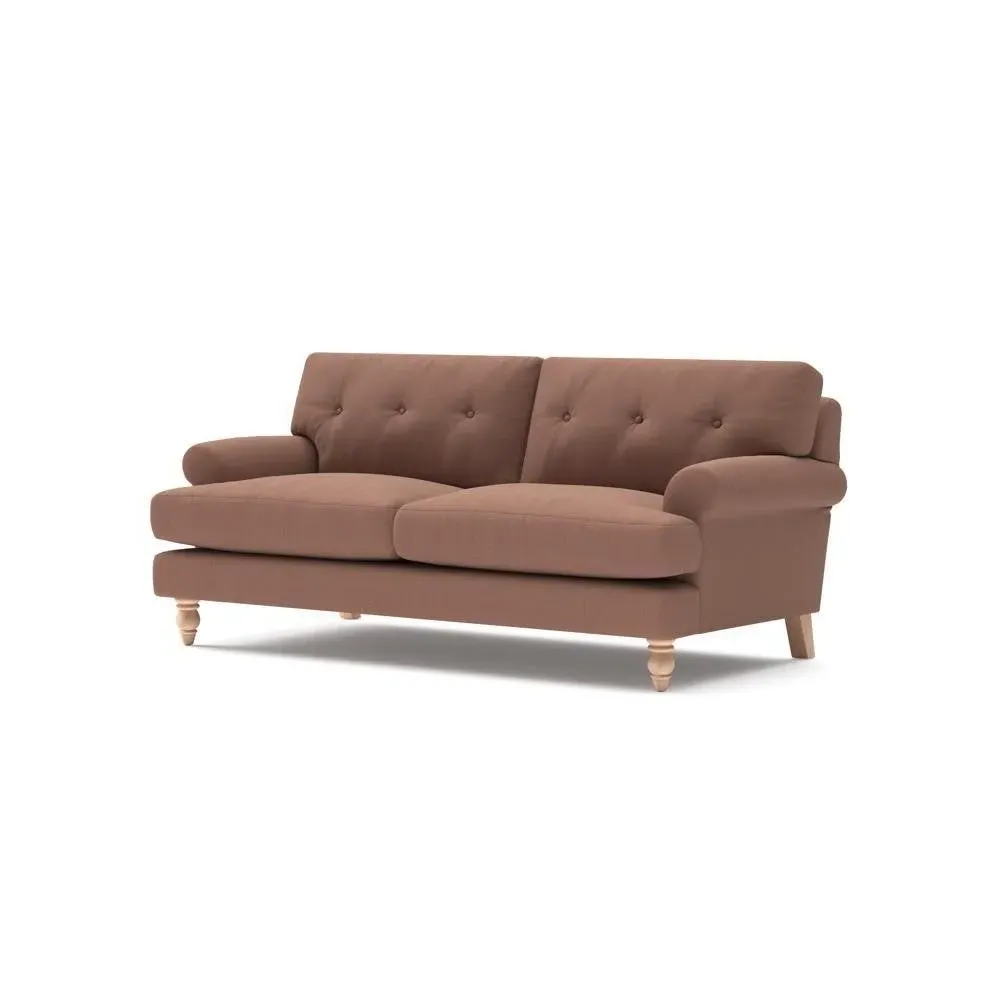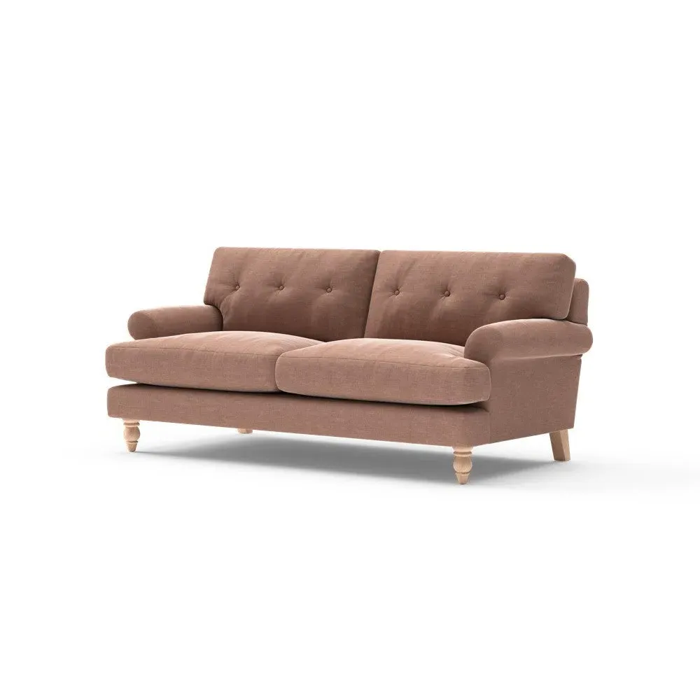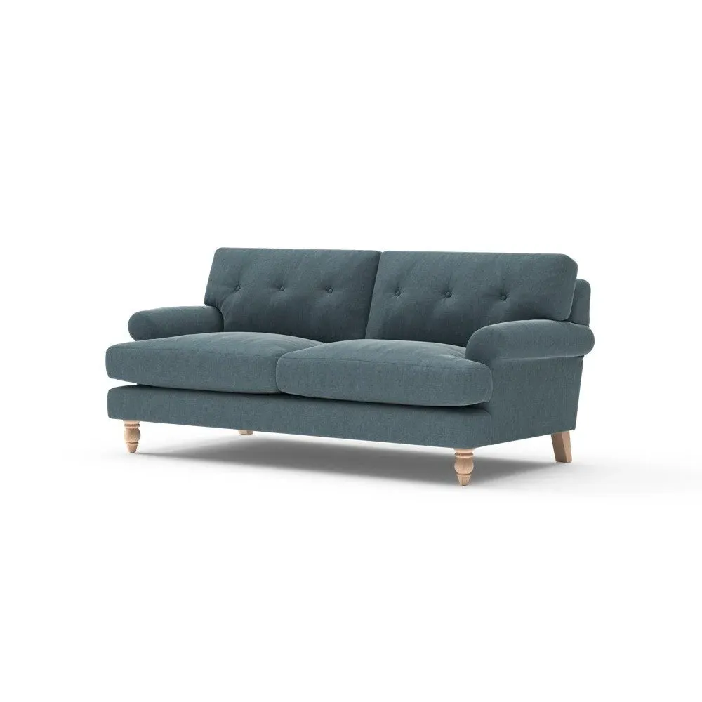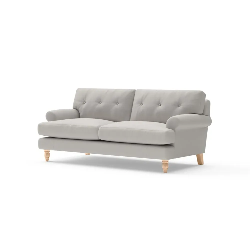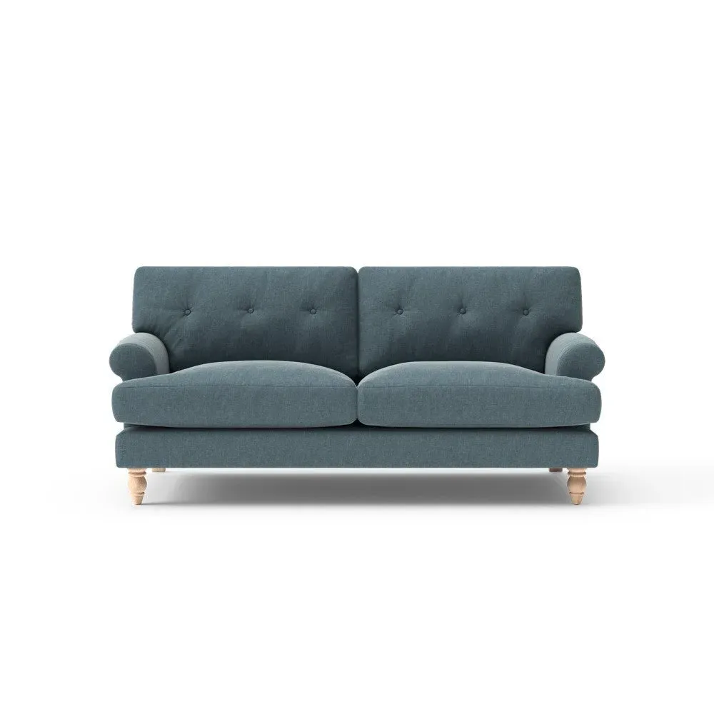 The sofa provides generous comfort with its deep, well-proportioned seats and smart button back detailing. Its relaxed design offers a comforting and supportive embrace, while the house linen mix fabric adds breathability and natural texture. Available in both luxurious feather or low maintenance interior options to accommodate different preferences.