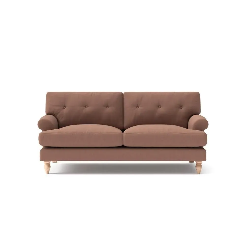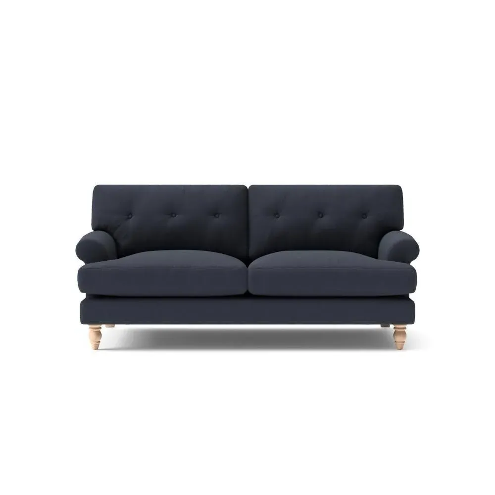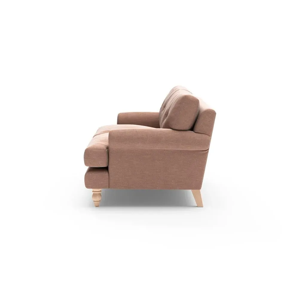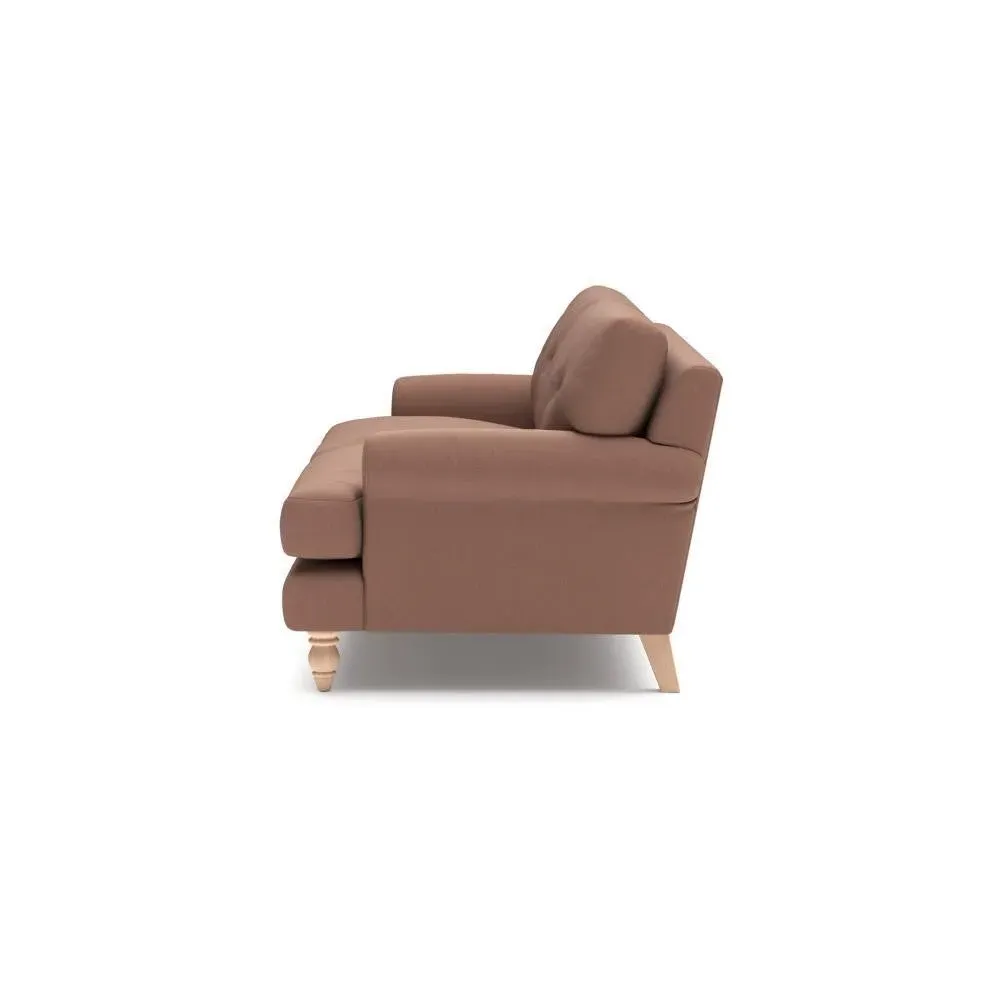 The sofa provides generous comfort with its deep, well-proportioned seats and smart button back detailing. Its relaxed design offers a comforting and supportive embrace, while the house linen mix fabric adds breathability and natural texture. Available in both luxurious feather or low maintenance interior options to accommodate different preferences.
