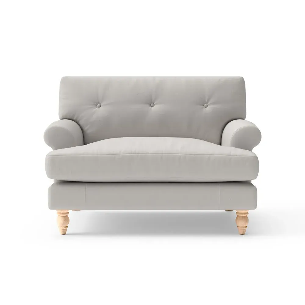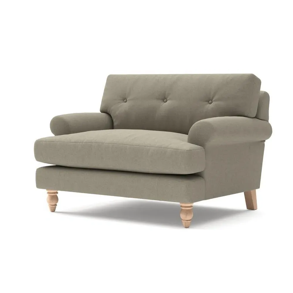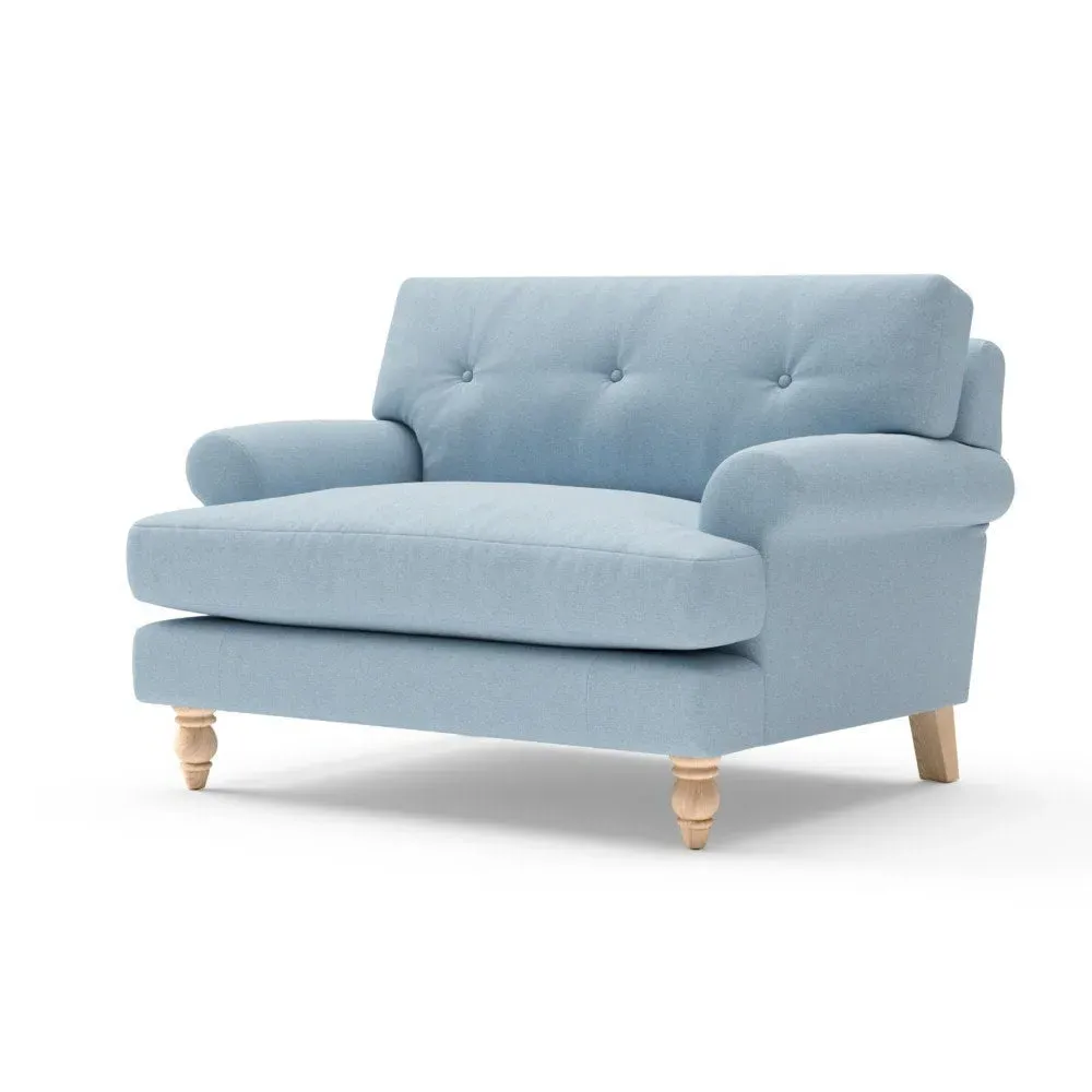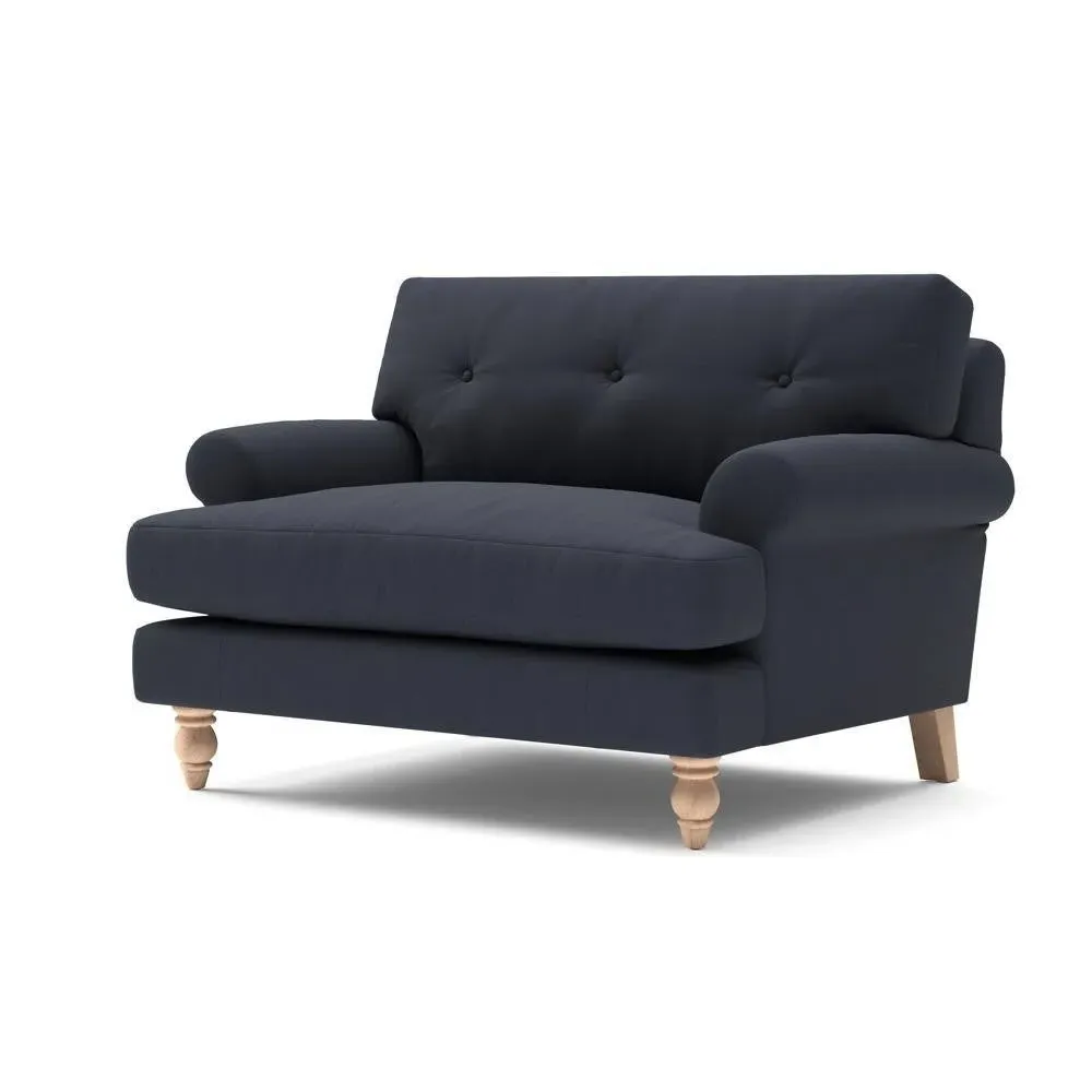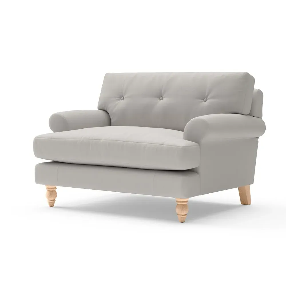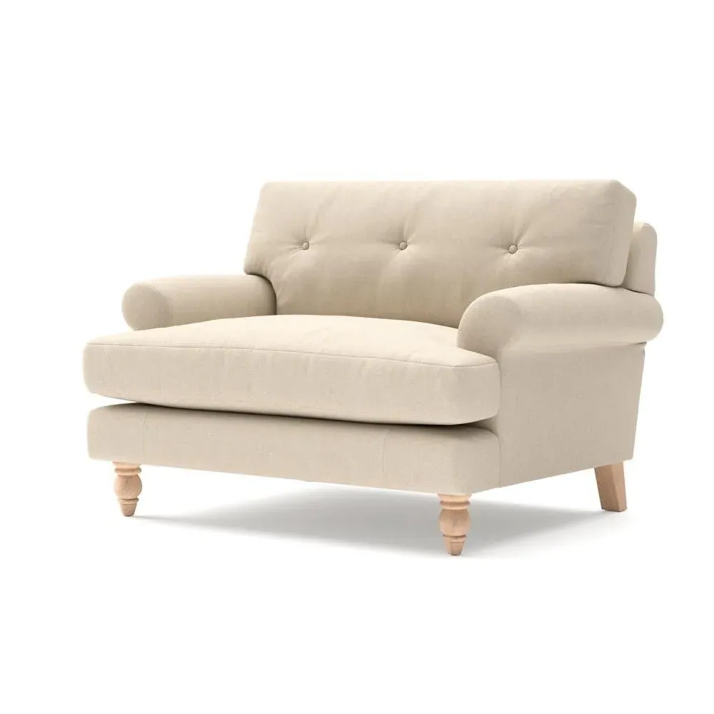 The Love Seat offers generous comfort with its deep, proportioned seats and button back detailing. Its supportive design provides a comforting embrace, while the house linen mix fabric adds durability and texture. Available in both luxurious feather or low maintenance interior options to suit different preferences.