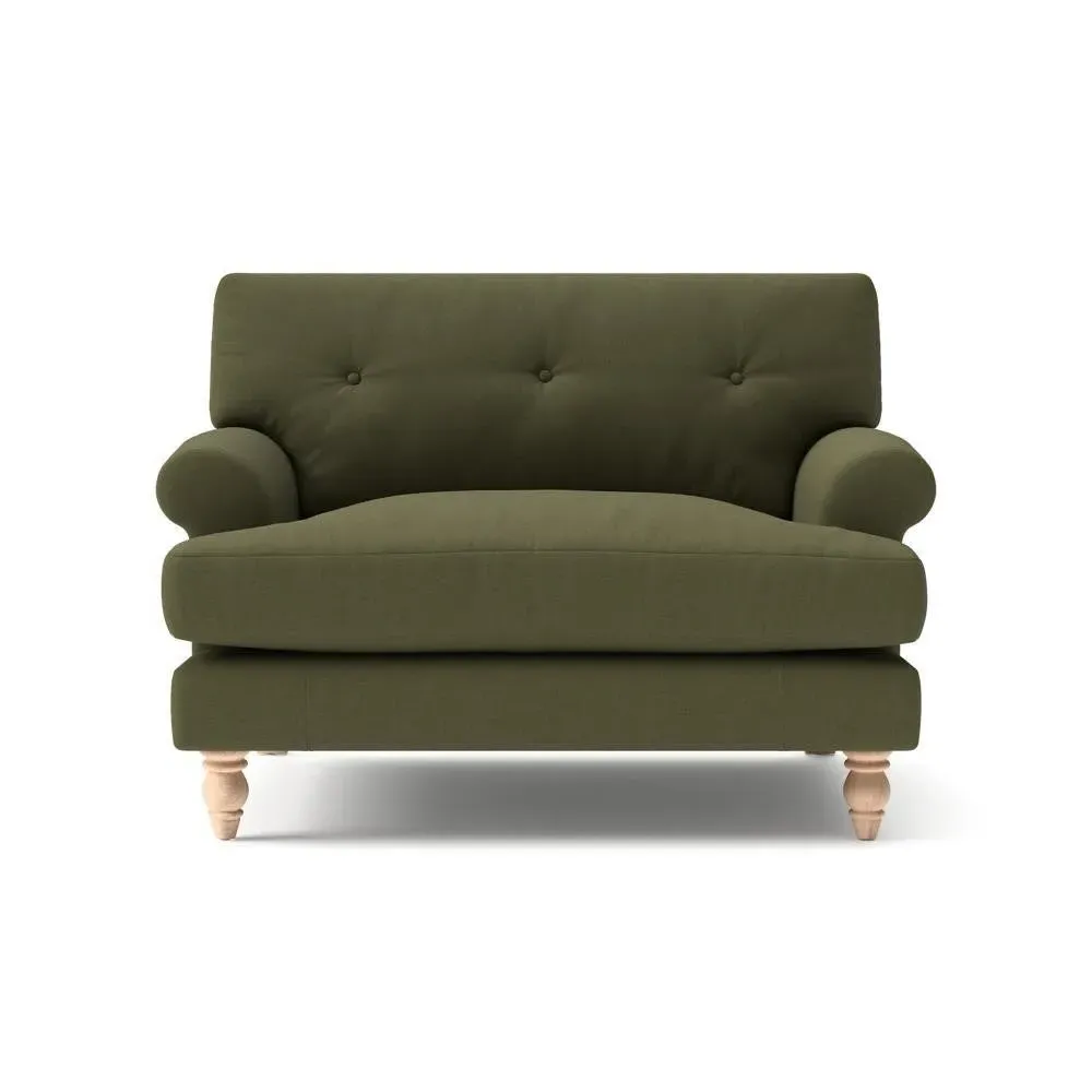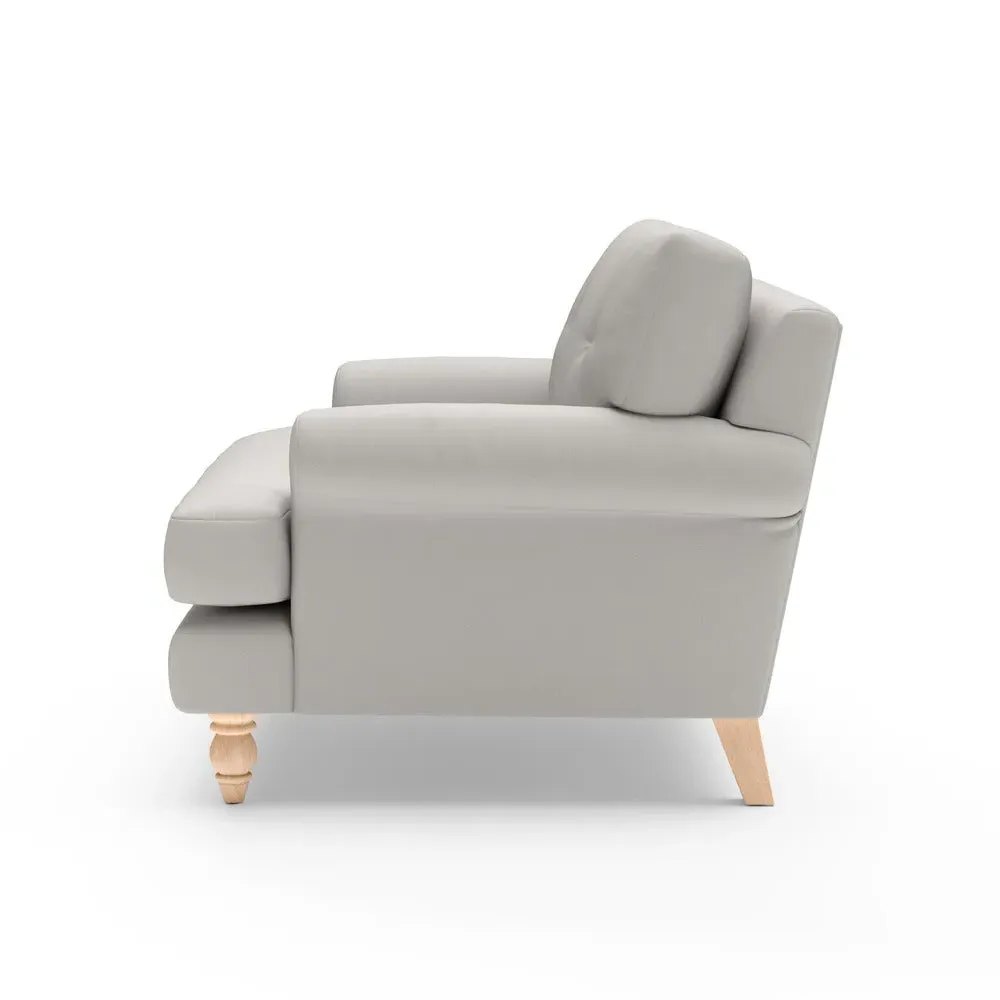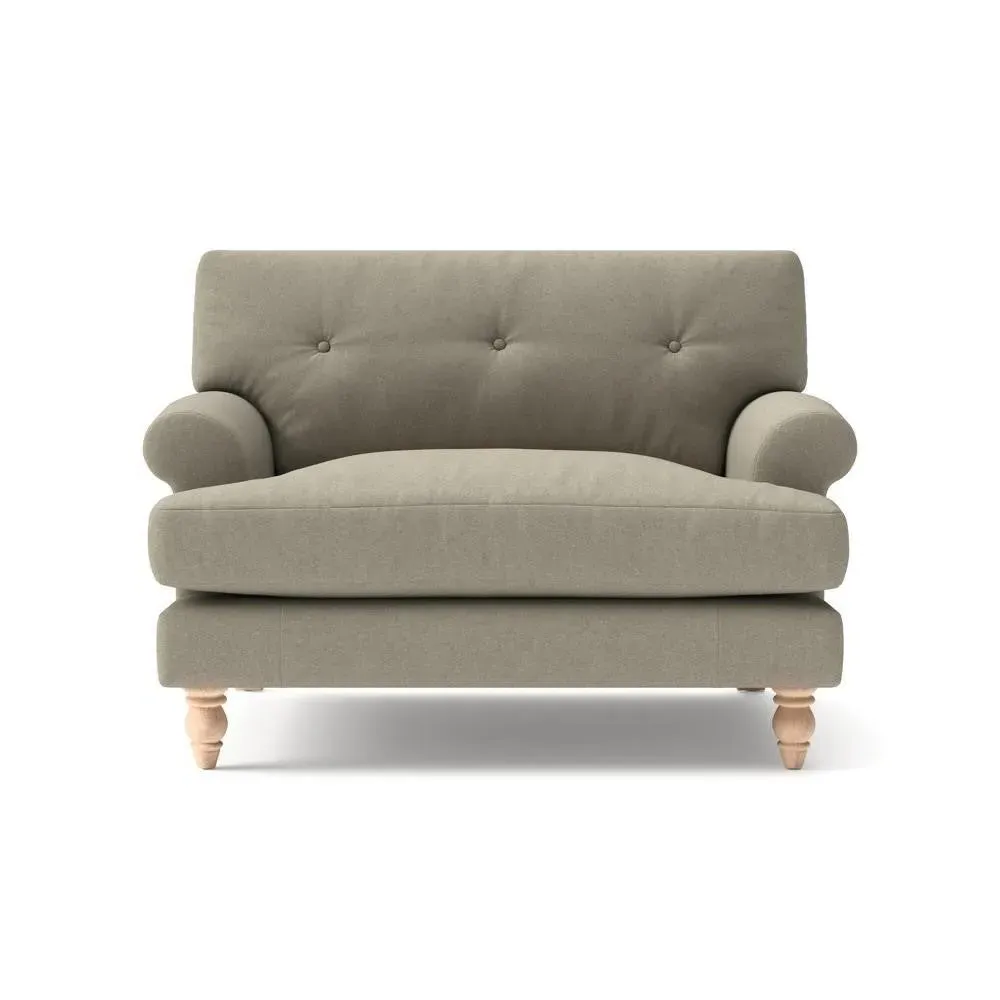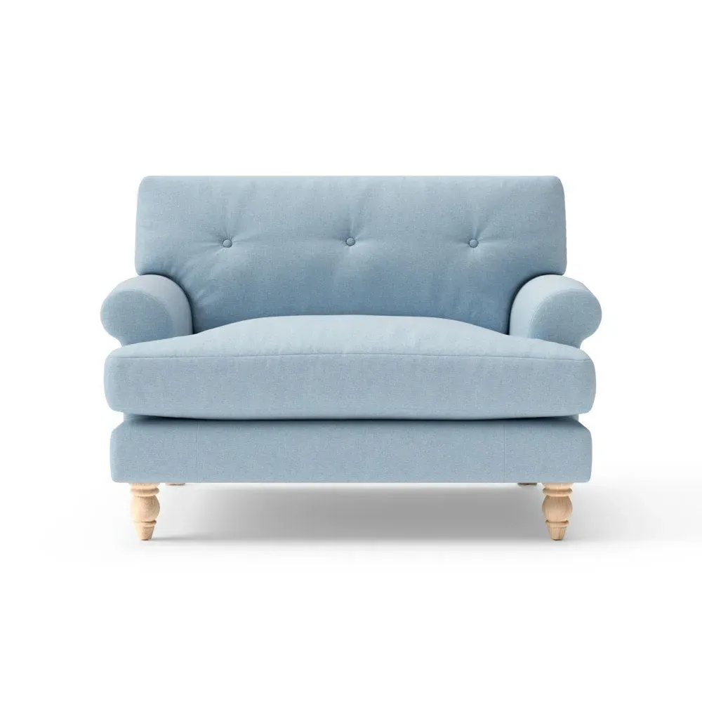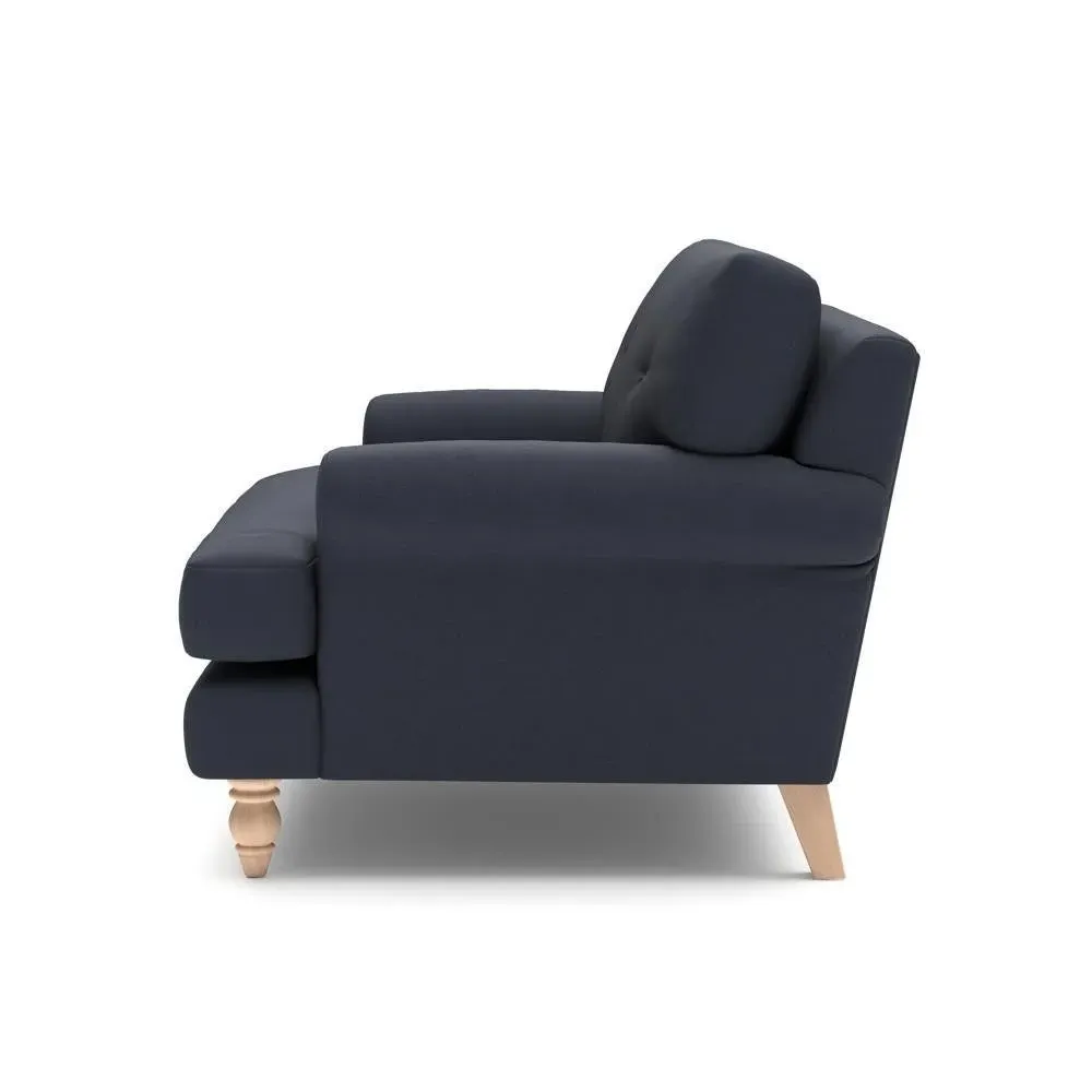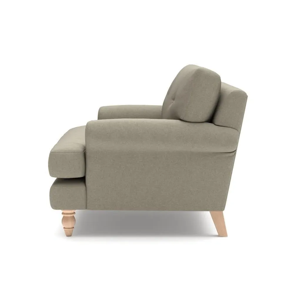 The Love Seat offers generous comfort with its deep, proportioned seats and button back detailing. Its supportive design provides a comforting embrace, while the house linen mix fabric adds durability and texture. Available in both luxurious feather or low maintenance interior options to suit different preferences.