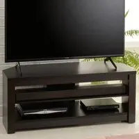 The Memphis TV stand is a stylish black TV stand with angled corners, ideal for positioning in room corners or against a wall. It includes a height-adjustable middle shelf, which gives plenty of flexible storage space for electronic accessories, such as a DVD player, satellite box or soundbar, and a cable management leg on the rear of the stand hides unsightly cables. Sturdily constructed, the Memphis TV stand will hold a maximum weight of 45 kg on the top, 15 kg on the middle shelf and 25 Kg on the lower shelf. Suitable for most TVs up to 55” (TV size is a recommendation only. Please check the size of the TV's pedestal/feet before purchase.)