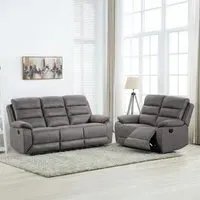 Kinley Grey Endurance Fabric 3+2 Seater Manual Recliner Sofa Set - , available to buy online or at Choice Furniture Superstore UK on stockist sale price. Get volume - discount with fast and Free Delivery.