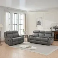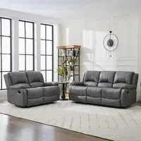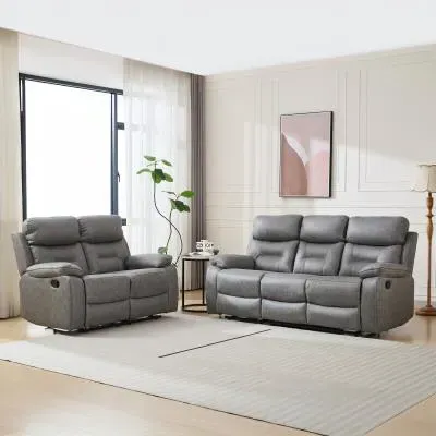 The Kinley sofa set combines comfort and functionality with its manual reclining system across both pieces. Its endurance fabric construction delivers superior resistance to daily use, while the grey upholstery complements various interior styles. The set features smooth reclining mechanisms that provide effortless adjustment, and the sturdy frame design supports extended relaxation sessions.