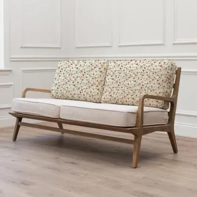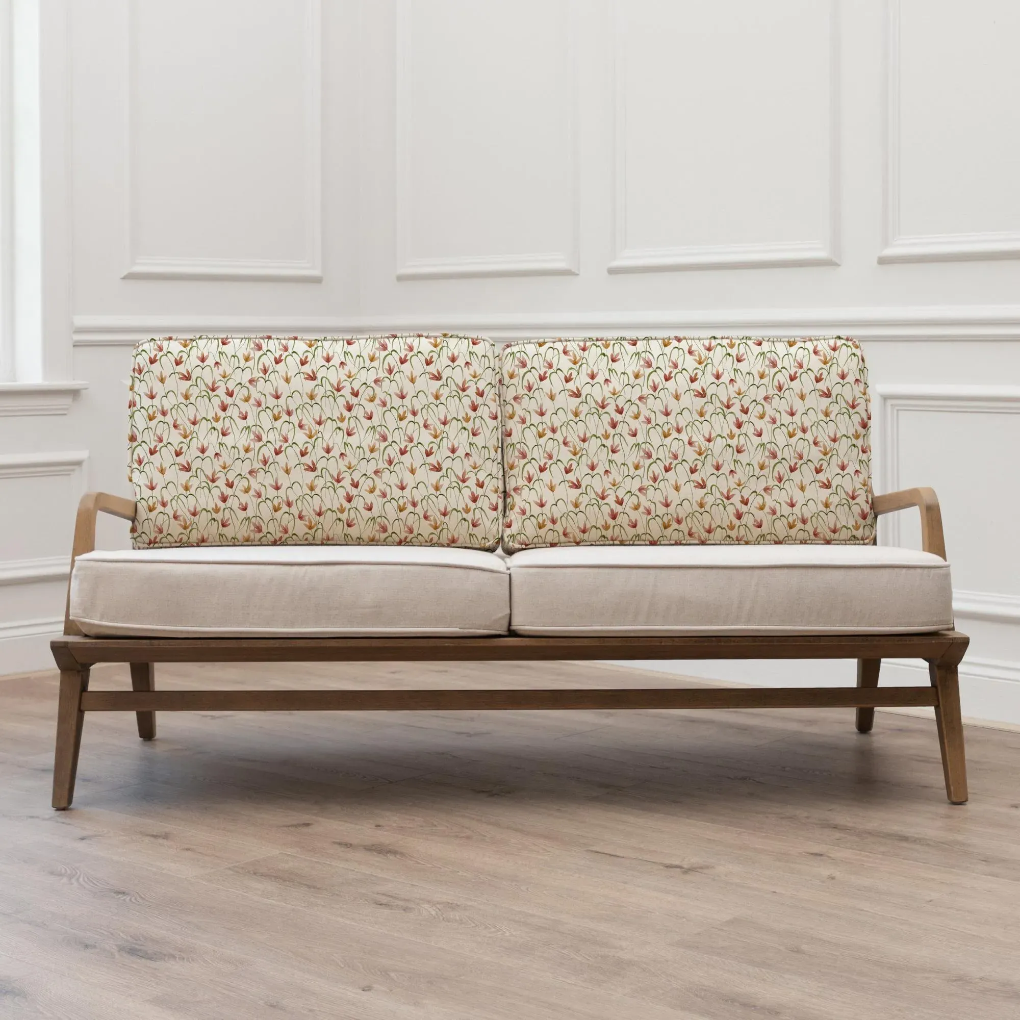 The Delamere 2-Seater Sofa combines comfort with distinctive printed linen upholstery in vibrant orange tones. Its compact design provides seating for two while the linen fabric offers natural breathability and texture. The printed pattern adds visual interest to the piece, while the sturdy frame ensures lasting support for daily use.