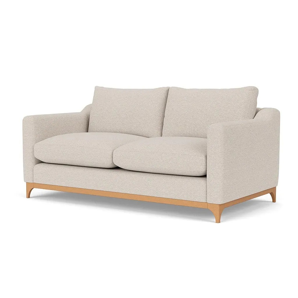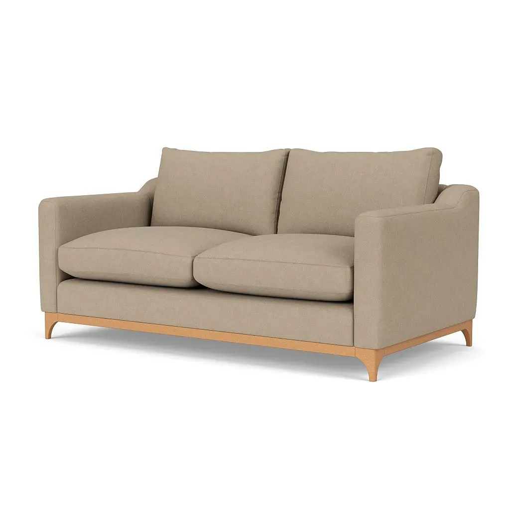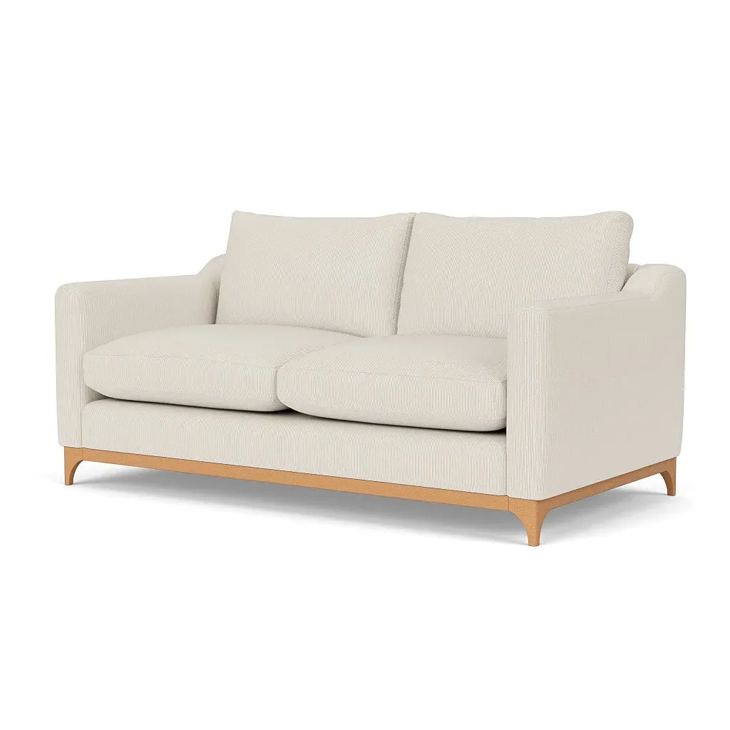 A contemporary silhouette set apart by its distinctive wooden base - available in light, mid or dark finishes to suit your décor. Its deep seat and gently structured shape make it perfect for relaxed, modern spaces. Available with a choice of fillings: go for the cushion feel you love - whether cocooning feather filled or supportive, low-maintenance fibre.