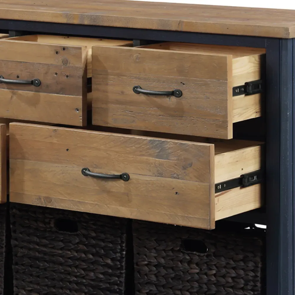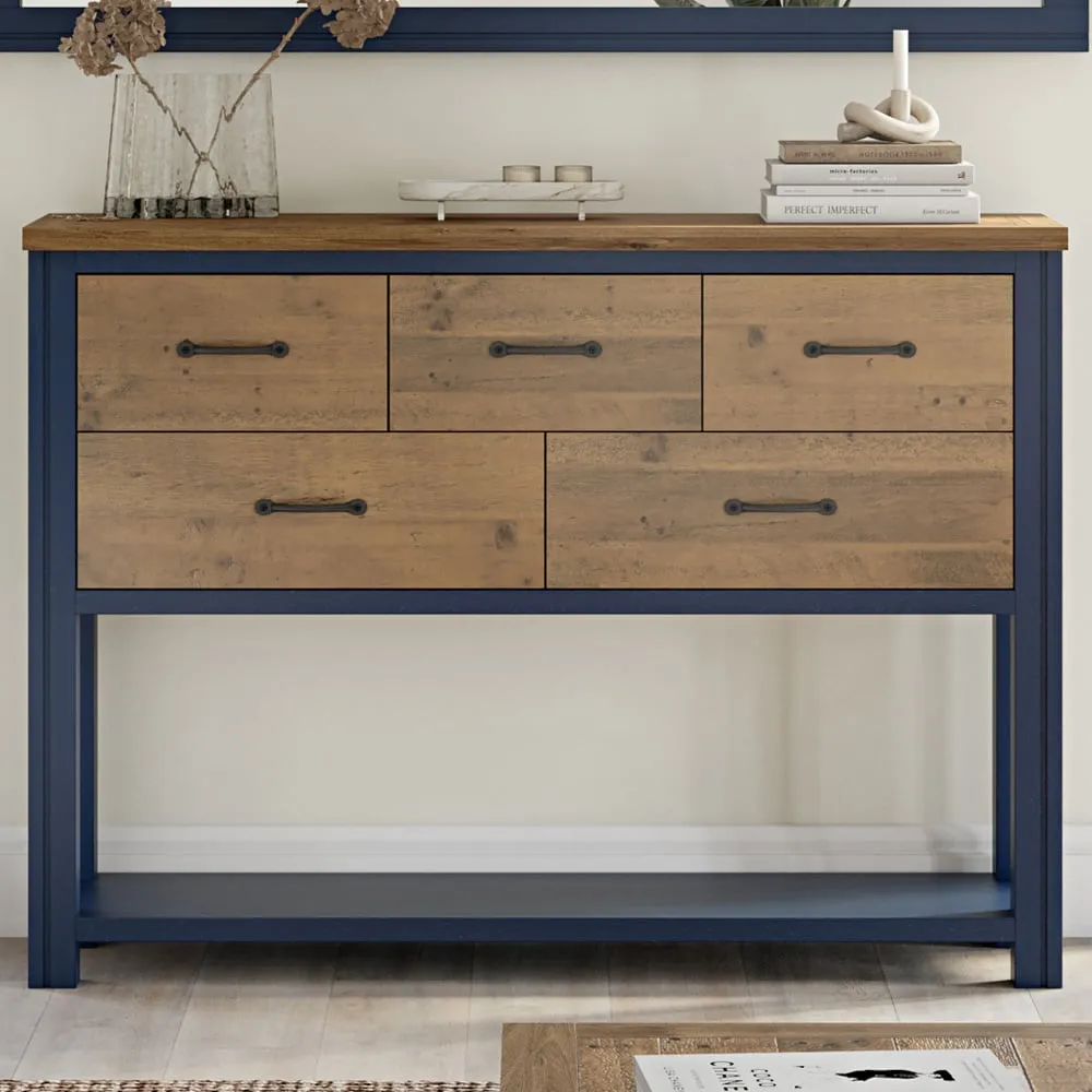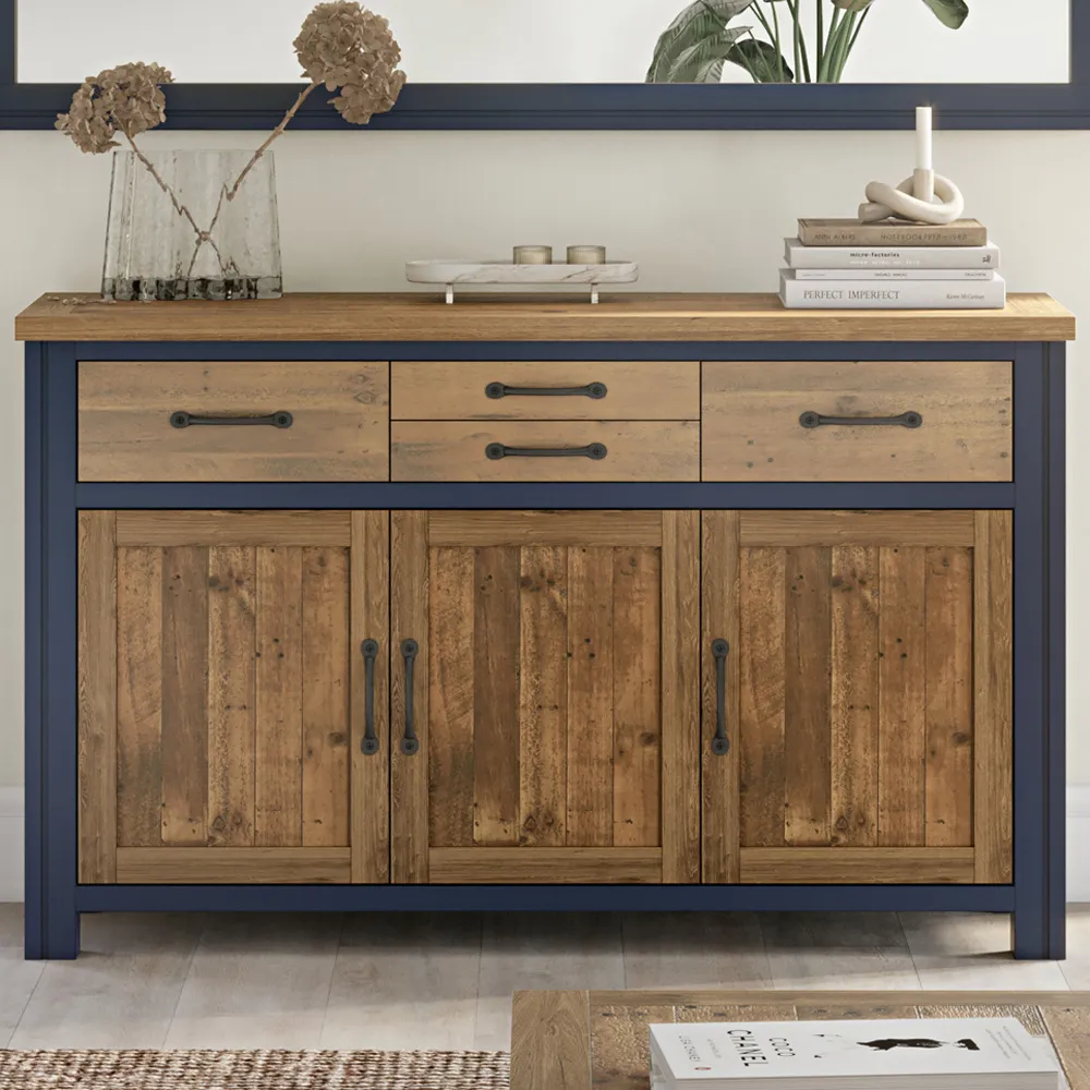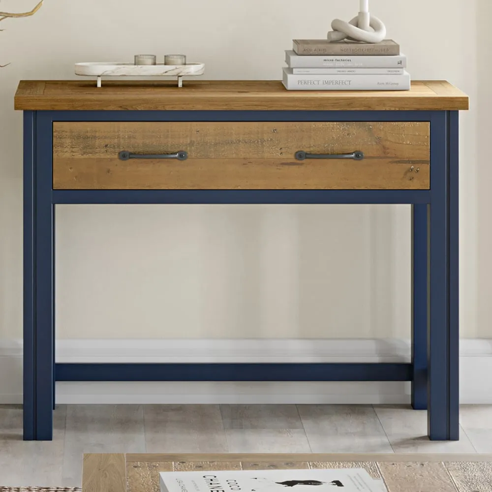 Enhance your space with the Baumhaus Splash of Blue Extra Long Wall Mirror. It offers versatility in both portrait and landscape orientations. Crafted with precision and adorned with an on-trend paint finish, meticulously handcrafted from reclaimed weathered wood with a contrasting colourway, ensuring each piece stands out with its unique charm. Crafted by skilled artisans, every item in the collection embraces the rustic allure of reclaimed wood, carefully selected to showcase its natural grain markings, knots, and subtle colour variations. The painted sections undergo meticulous hand spraying to achieve a flawless, contrasting finish against the natural wood, resulting in a true work of art with each piece. To protect and enhance the beauty of the reclaimed timber, a clear, hard-wearing lacquer is applied, accentuating the wood grain while preserving its distinct characteristics. Delivered fully assembled. Backed by a comprehensive 5-year warranty, it guarantees quality and reliability. Overall dimensions: H150cm W55cm D5 cm.