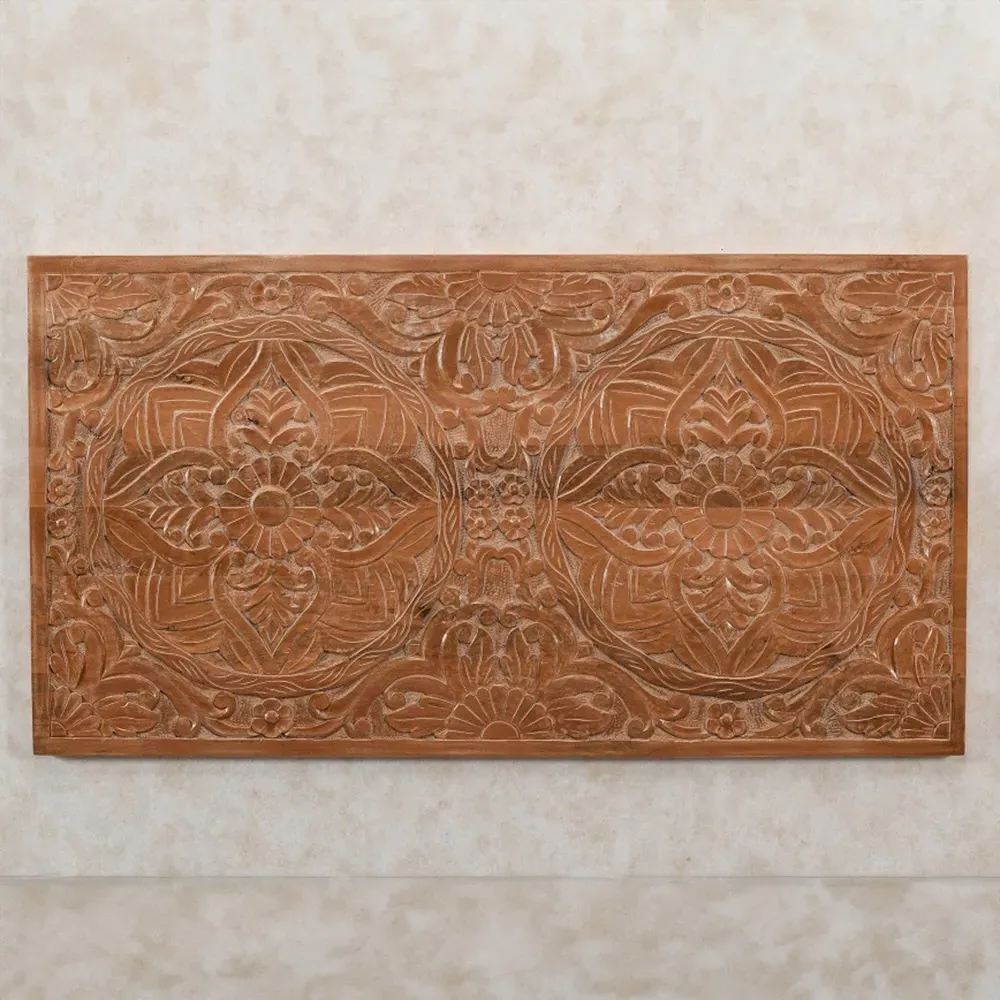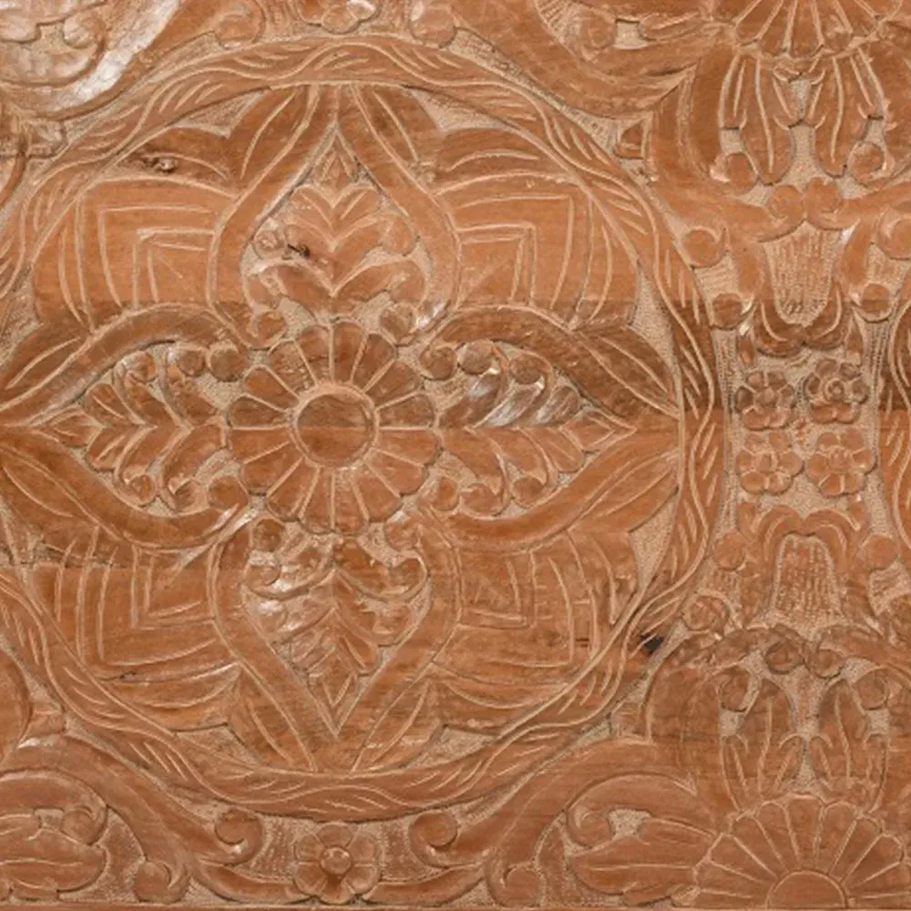 The wall art brings dimensional beauty to any space with its unique carved mango wood construction. Its solid wood composition adds natural texture and warmth, while the intricate detailing creates visual interest on the wall. Crafted from 100% eco-sourced solid mango wood with a light whitewash finish that enhances the carved elements. W40 x H40 cm.