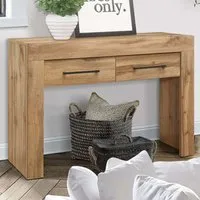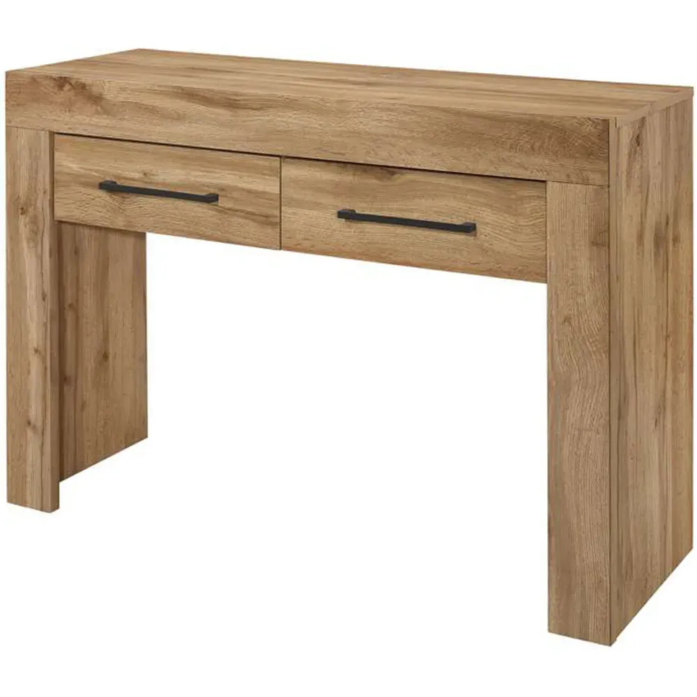 The Compton Lamp Table provides convenient bedside storage with its compact oak construction. Its lower shelf offers space for books and essentials, while the tabletop accommodates a lamp or personal items. The black metal handles complement the natural oak finish. The sturdy build ensures reliable support for daily use.