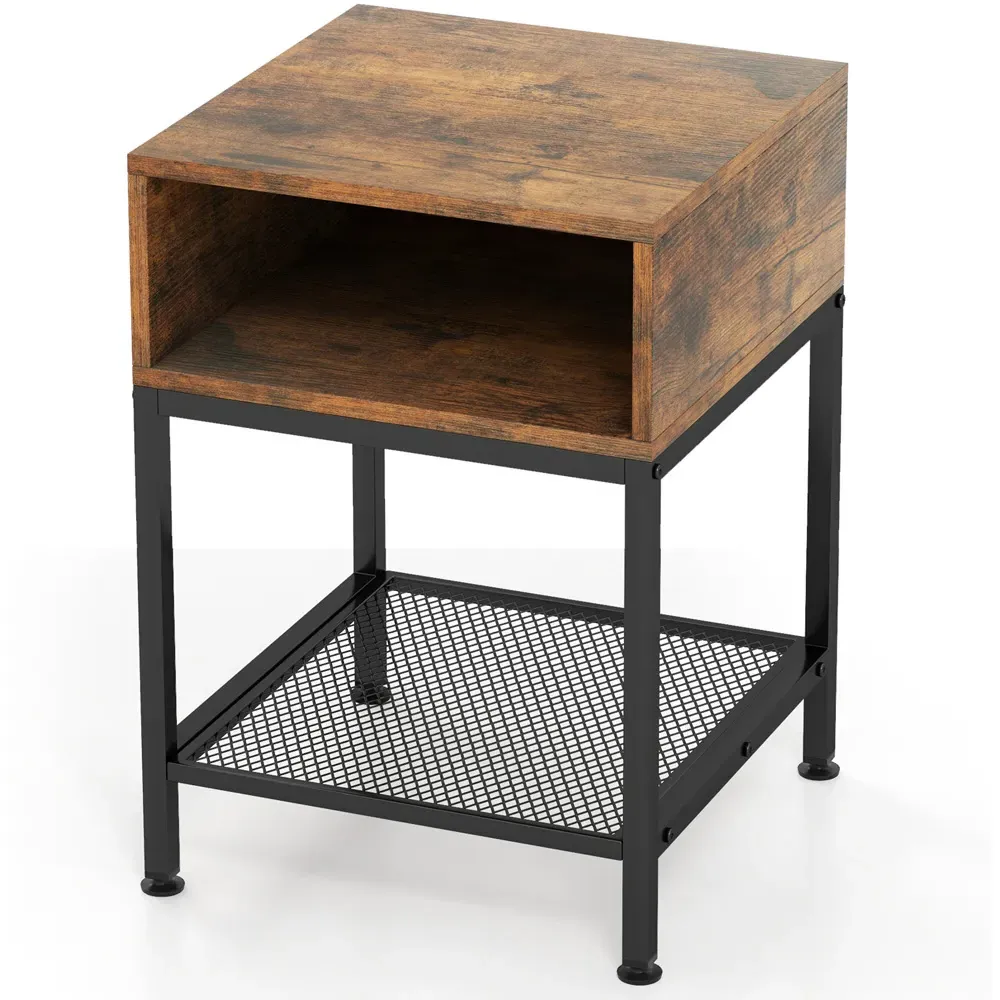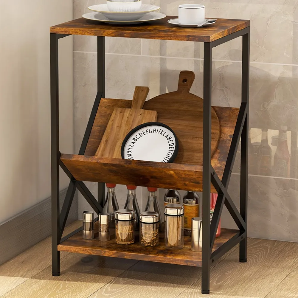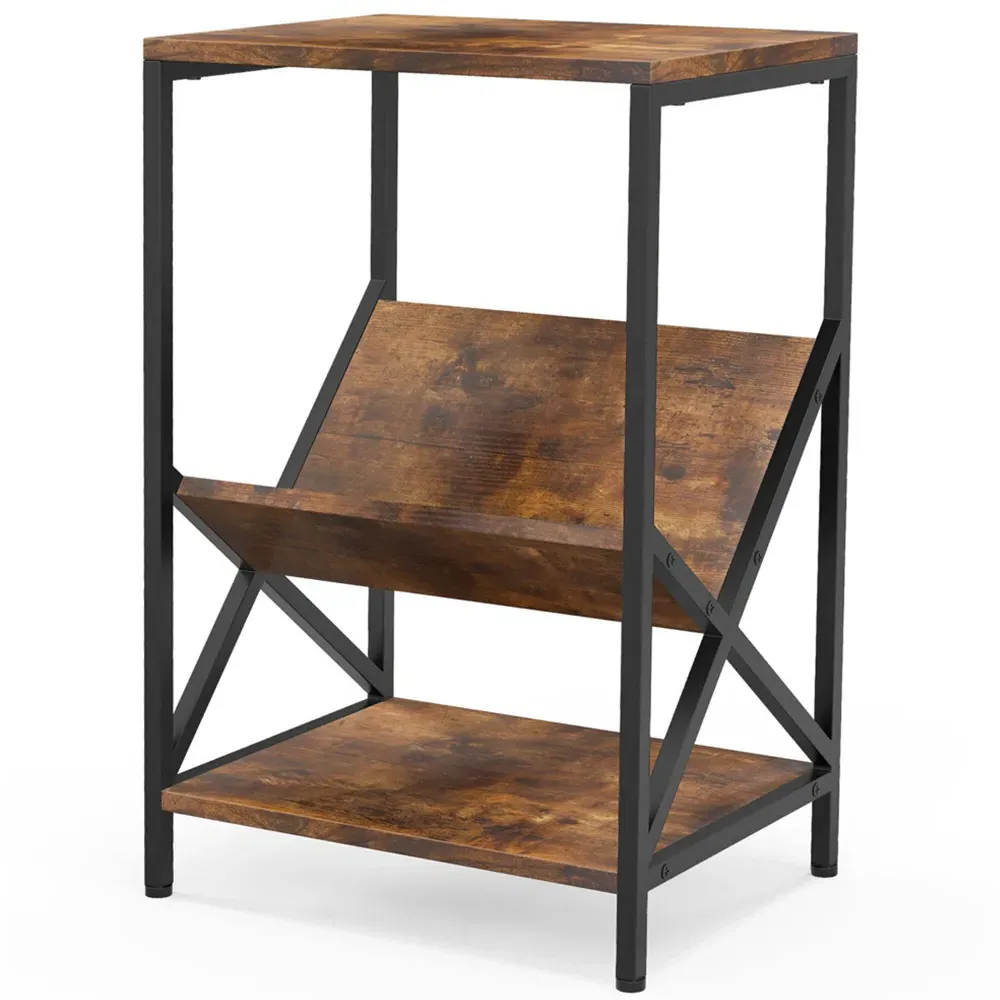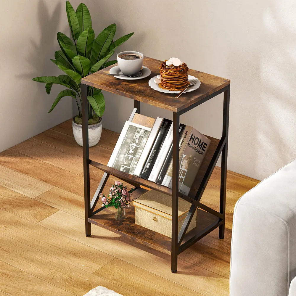 The side table offers functional storage with its unique S-shaped design and two open shelves. Its reinforced thickened boards provide crack-resistant durability, while the smooth PVC edge banding ensures easy maintenance. The anti-slip foot pads protect floors from scratches, and the burr-free construction adds safety to daily use.