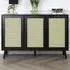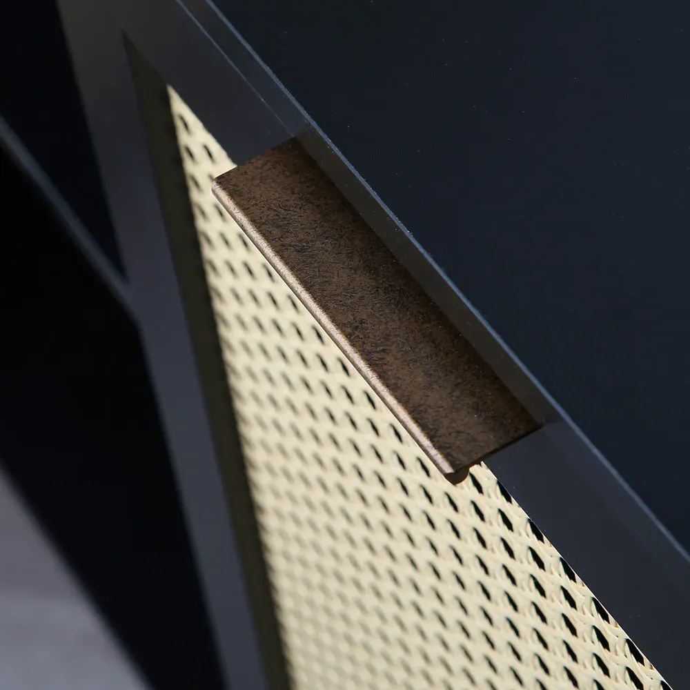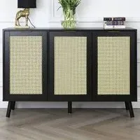 Get ready to transform your living space with the Home Garden Direct Craven 2 Door Black Sideboard with Cane Front. This beautiful black-painted cabinet features natural cane doors that create a stunning contrast with its frame. It adds a touch of dark bohemia to your hallway, enhancing the overall look. With its two doors, this sideboard offers both style and practicality, making it a great storage solution for your hallway, living room, or office. Inside, you will find an adjustable shelf that you can customise for your needs, whether you want to store cushions, shoes, or magazines. The cane detailing pairs beautifully with the painted finish, while the solid pine and MDF frame ensures stability and durability.