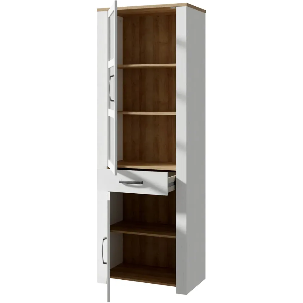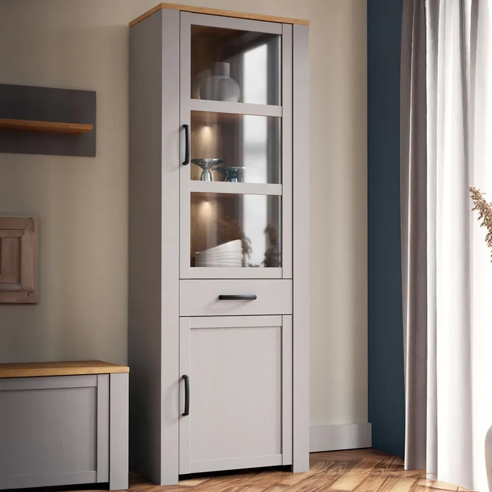 The Florence Bohol TV Unit combines functionality with its two-door and single-drawer design, featuring sleek black metal handles. Its light Riviera Oak construction with white finish provides durability while adding warmth to your space. The clean tabletop surface offers ample display area, and the storage compartments keep essentials organized and accessible.