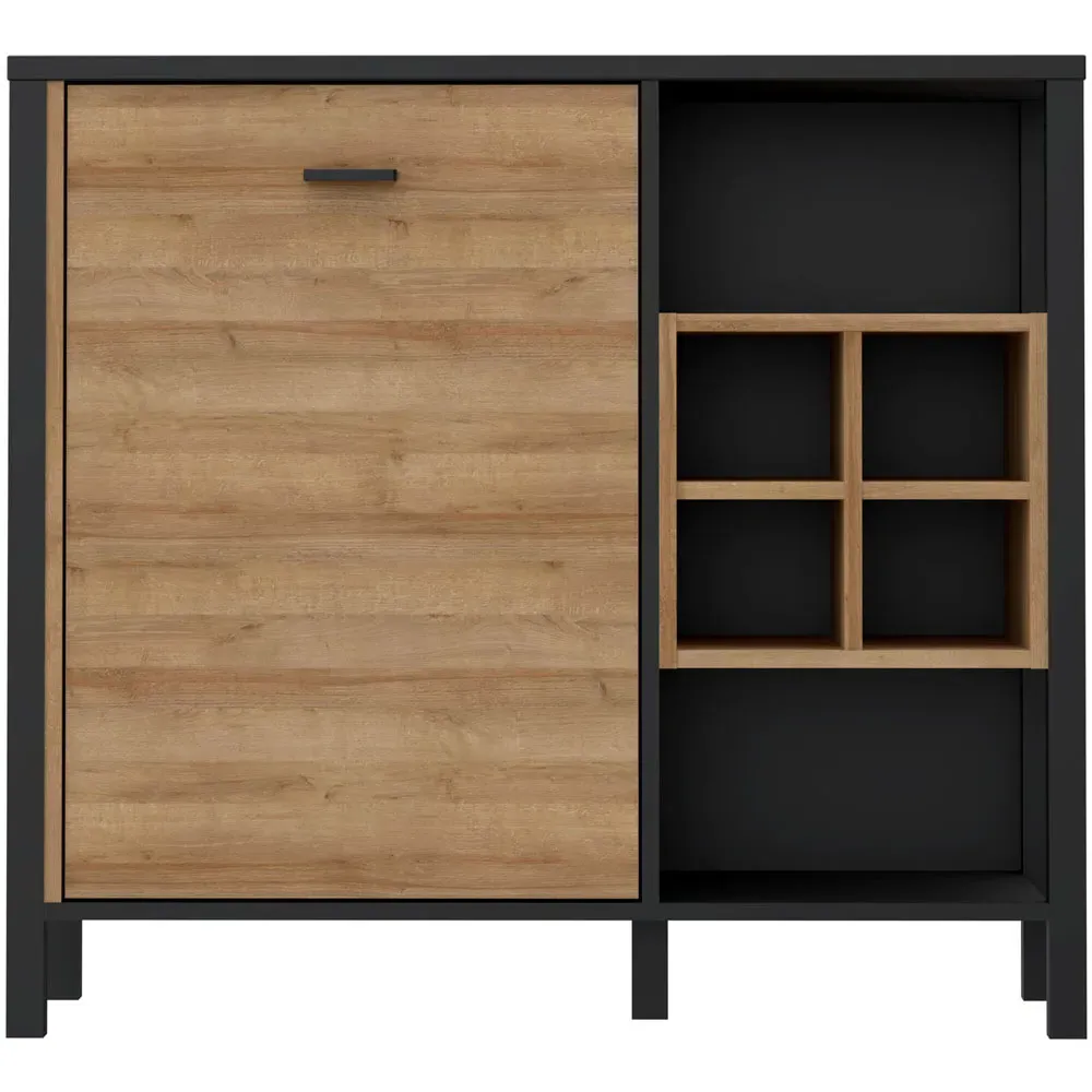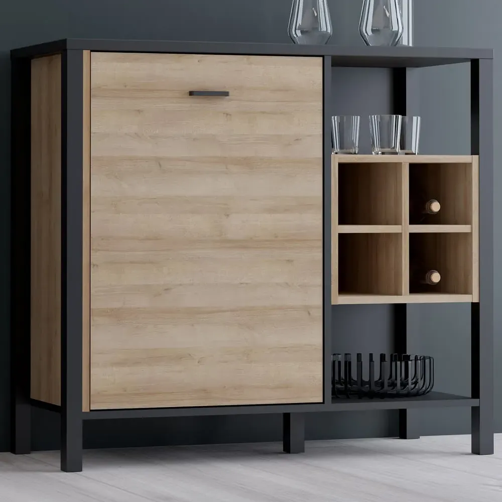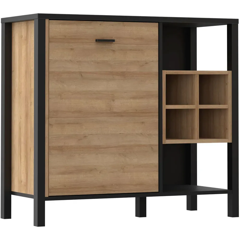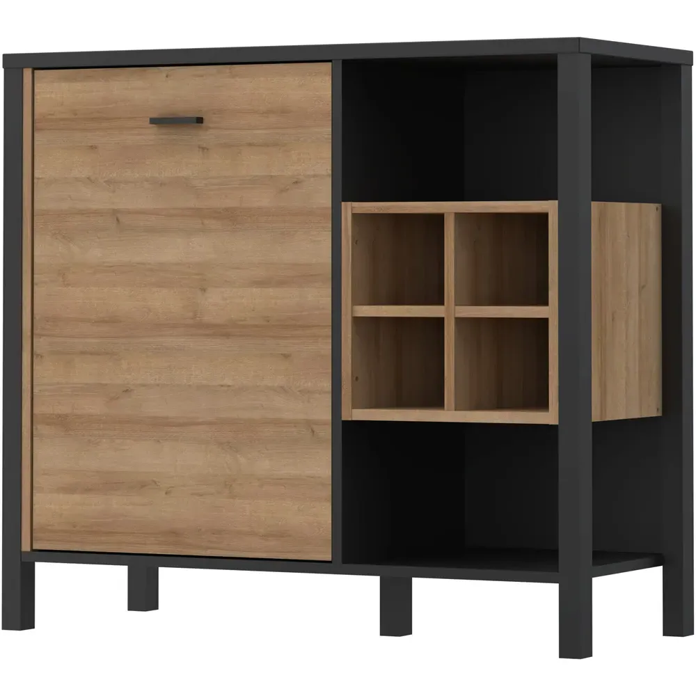 This Furniture To Go High Rock Sideboard features a contemporary design with a perfect blend of the Riviera oak decor with deep matt black accents. It has a single-drawer structure with the top surface to offer a generous storage space. The sleek black metal handles add a touch of elegance, while the table boasts robust metal legs in a frame-like design, contributing to a distinct loft character within the space. Beyond its striking aesthetics, it prioritises functionality with its ingenious storage solutions. It effortlessly fits into any room, from the living room and dining area to the hall, youth room, or bedroom, adding a touch of sophistication and practicality to every corner of the home.