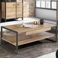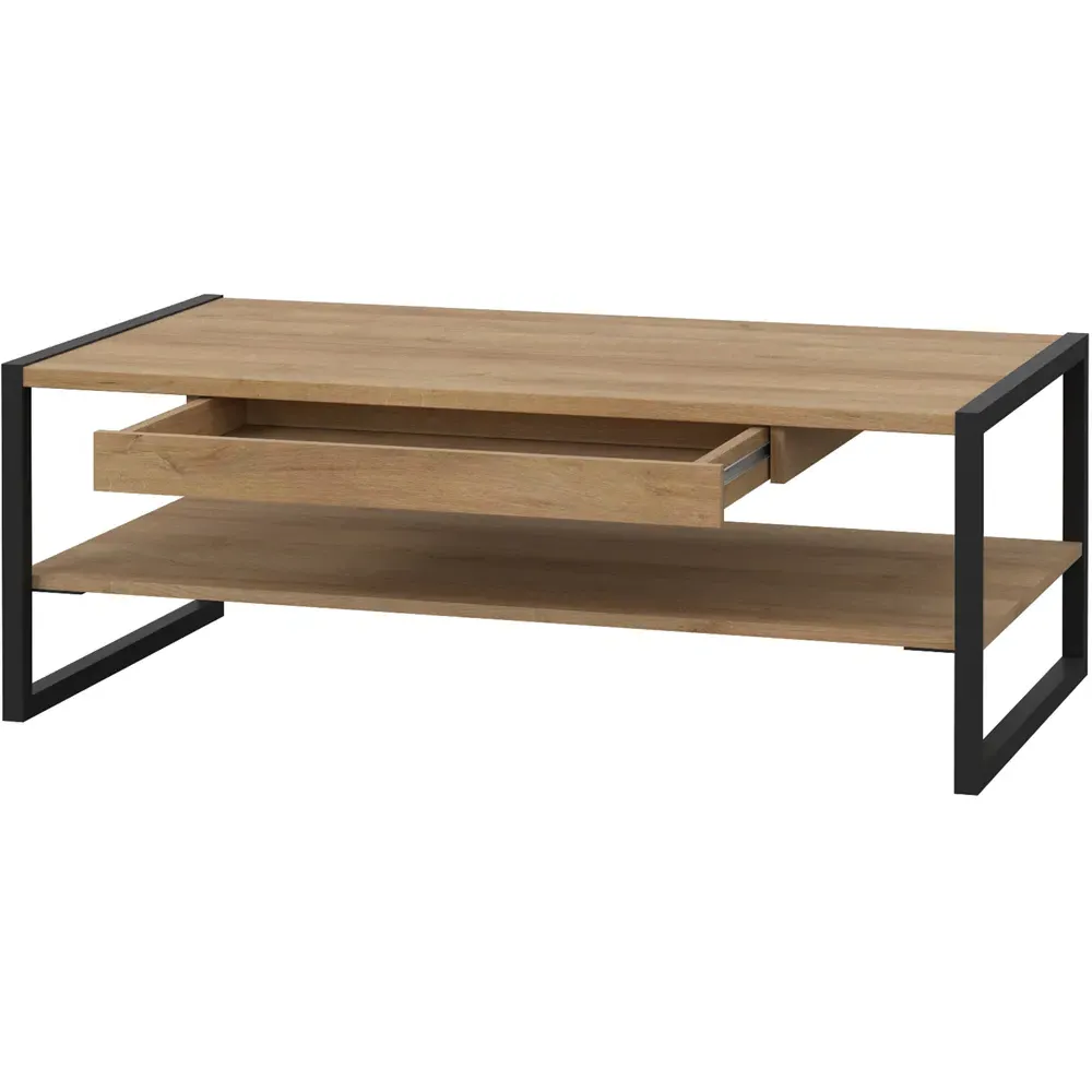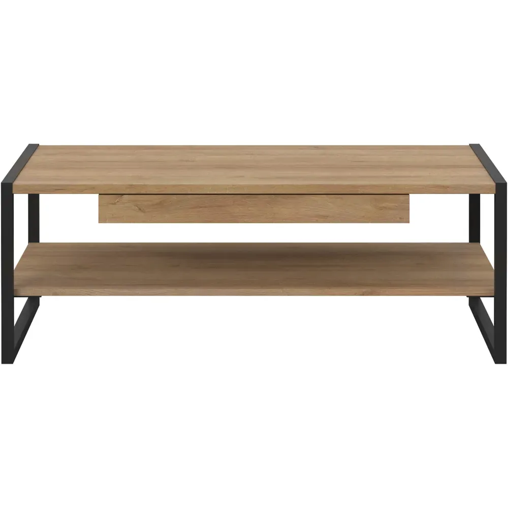 The Florence High Rock Bedside Table combines Riviera oak decor with matt black accents for industrial-inspired style. Its single-drawer structure provides convenient bedside storage, while the spacious top surface accommodates essentials. The robust metal frame legs ensure stability, and the sleek black metal handle adds functional detail.
