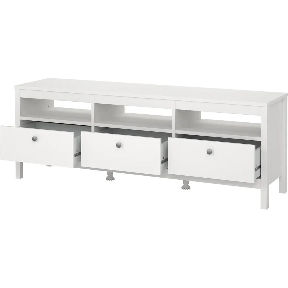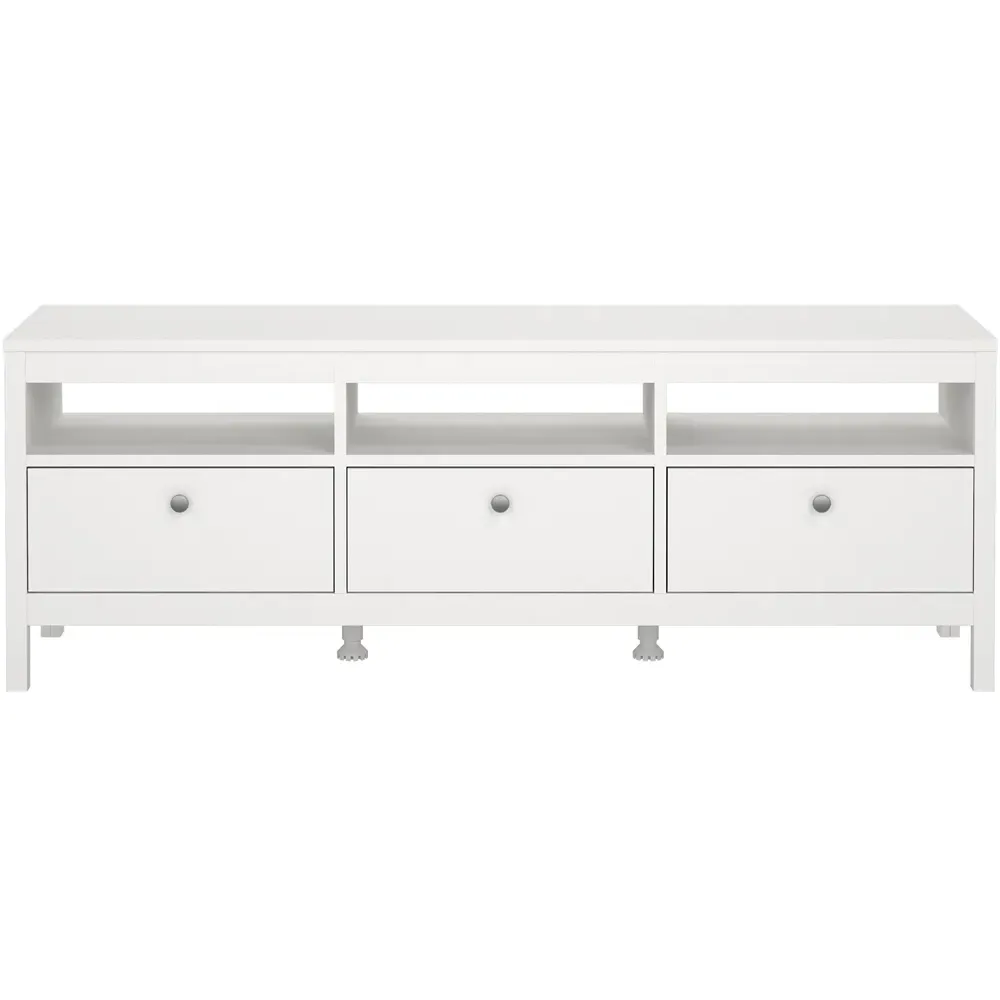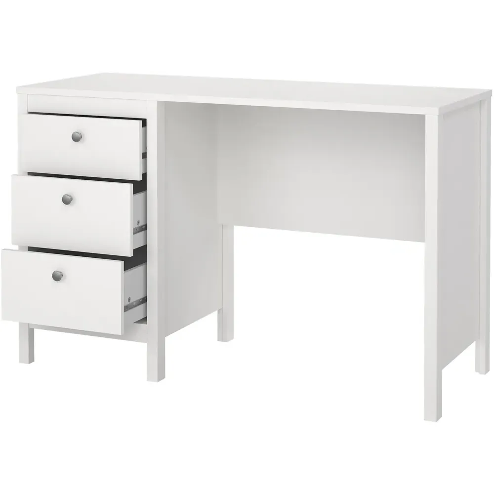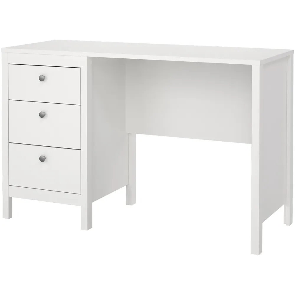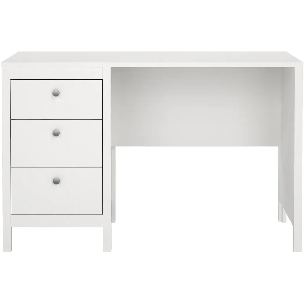 Add a touch of elegance to your bedroom with this Madrid Bedside Table by Florence. This contemporary bedside table features an elegant design completed with a simple metal handle. Its soothing white finish offers a clean and modern look that seamlessly uplifts your interior. This bedside table features two drawers, which are easy to assemble and offer sufficient storage space to arrange your essentials. This table is made from PEFC Certified sustainable wood, which also features a high-quality laminated board. Apart from offering a convenient storage space, this table also enhances your bedroom decor.