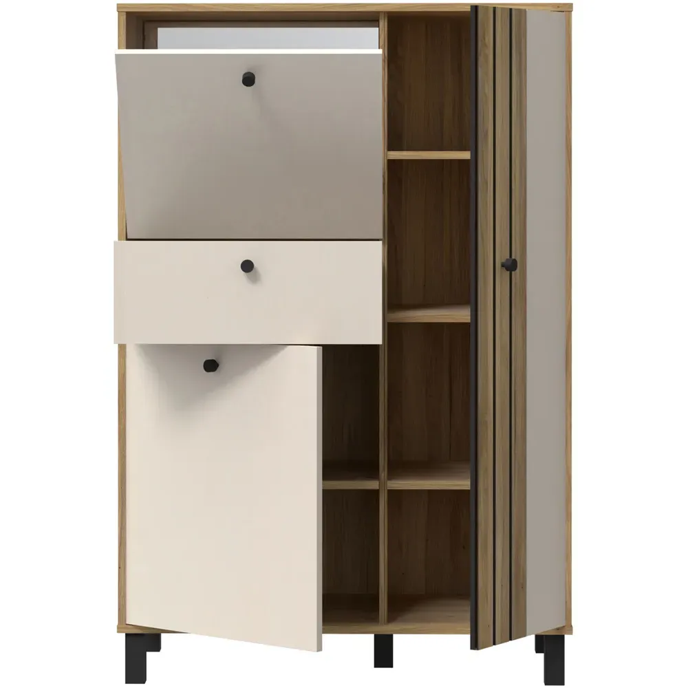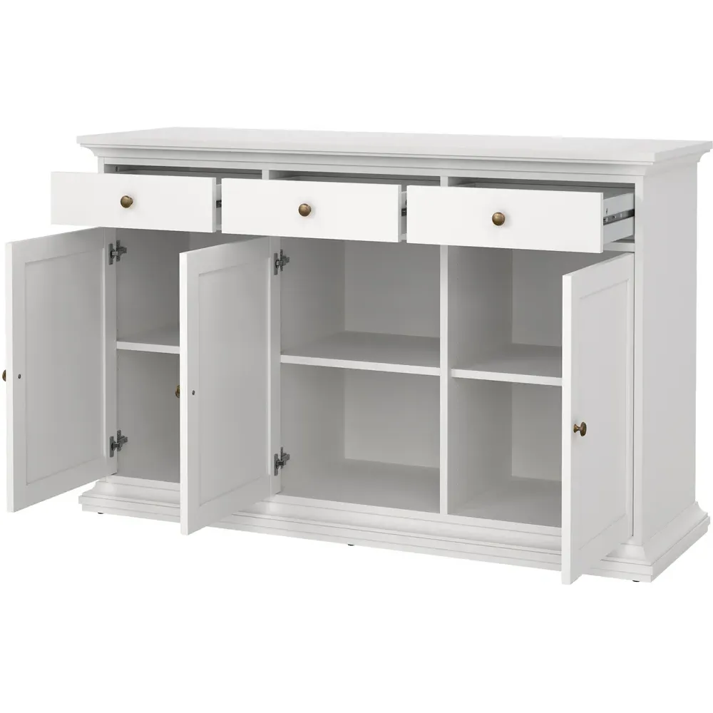 The larger sideboard in the Zingaro range is 50cm longer than its more compact counterpart - this additional length is utilised with an extra cupboard, meaning even more storage space.