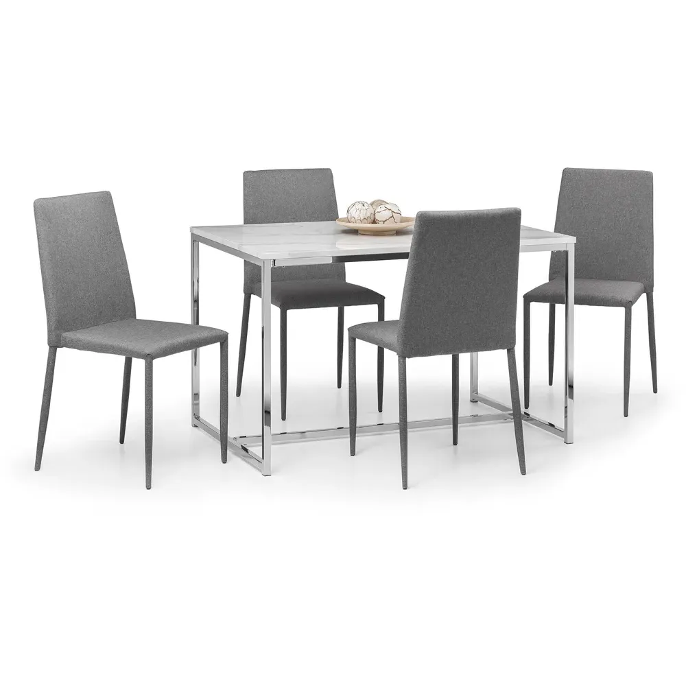 Create a home that reflects your individuality with this Julian Bowen Scala Chrome and White Marble Top Lamp Table. This sleek lamp table features a chic marble effect top on a well-crafted chrome stainless steel frame. It has a timeless Italian design that fits well with a wide range of decorative styles. It is not only aesthetically pleasing but also durable and functional, providing you with comfort and convenience.