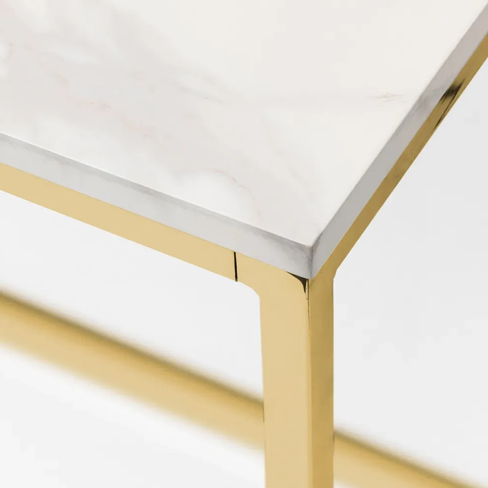 The Scala lamp table combines Italian design with a marble effect top and chrome stainless steel frame. Its sleek construction provides durability while the marble surface adds visual appeal. The chrome frame ensures stability and the compact design suits various spaces.