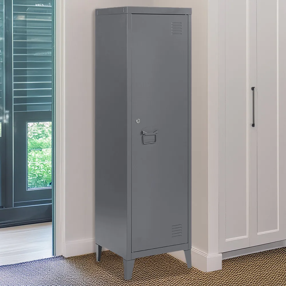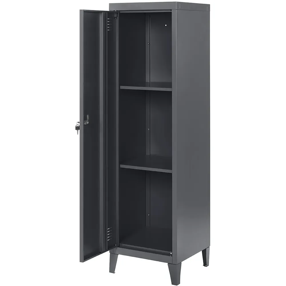 The locker cabinet combines secure storage with industrial design, featuring two spacious shelves and a reliable lock mechanism. Its durable metal construction ensures longevity, while the single door provides easy access to stored items. The cabinet offers protection for valuables and personal belongings, with the compact frame fitting seamlessly into various spaces. W38.5 x D38.5 x H137 cm.