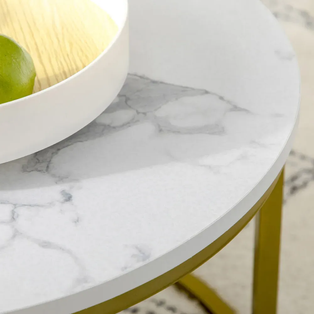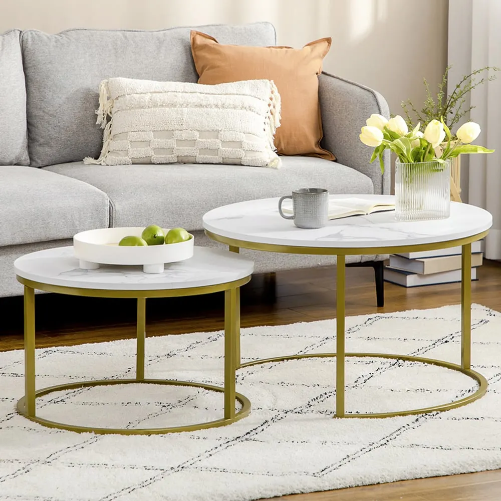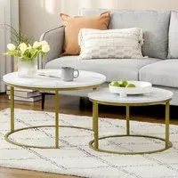 Elevate your interiors with the Portland White Triangular Nest of Tables Set of 2. These tables can be placed together for extended space or left to stand separately for display space in different places. Elegant and vintage, the white tabletops are carved into a soft triangular shape for the point of interest, with the three natural-finish wooden legs on each corner providing plenty of balance. The legs are made from wood, so they're tough and strong. When not being used, you can tuck the smaller table underneath the more prominent table-Set of 2.