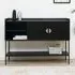 The Thea Sideboard combines natural wood tones with practical storage, featuring two doors and two drawers for organized storage solutions. Its clean lines provide a timeless appearance, while the natural finish adds warmth to any space. The dual storage design offers both enclosed cupboard space and drawer organization, and the simple construction ensures versatile placement options.