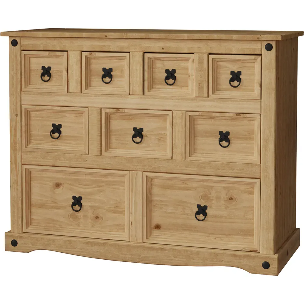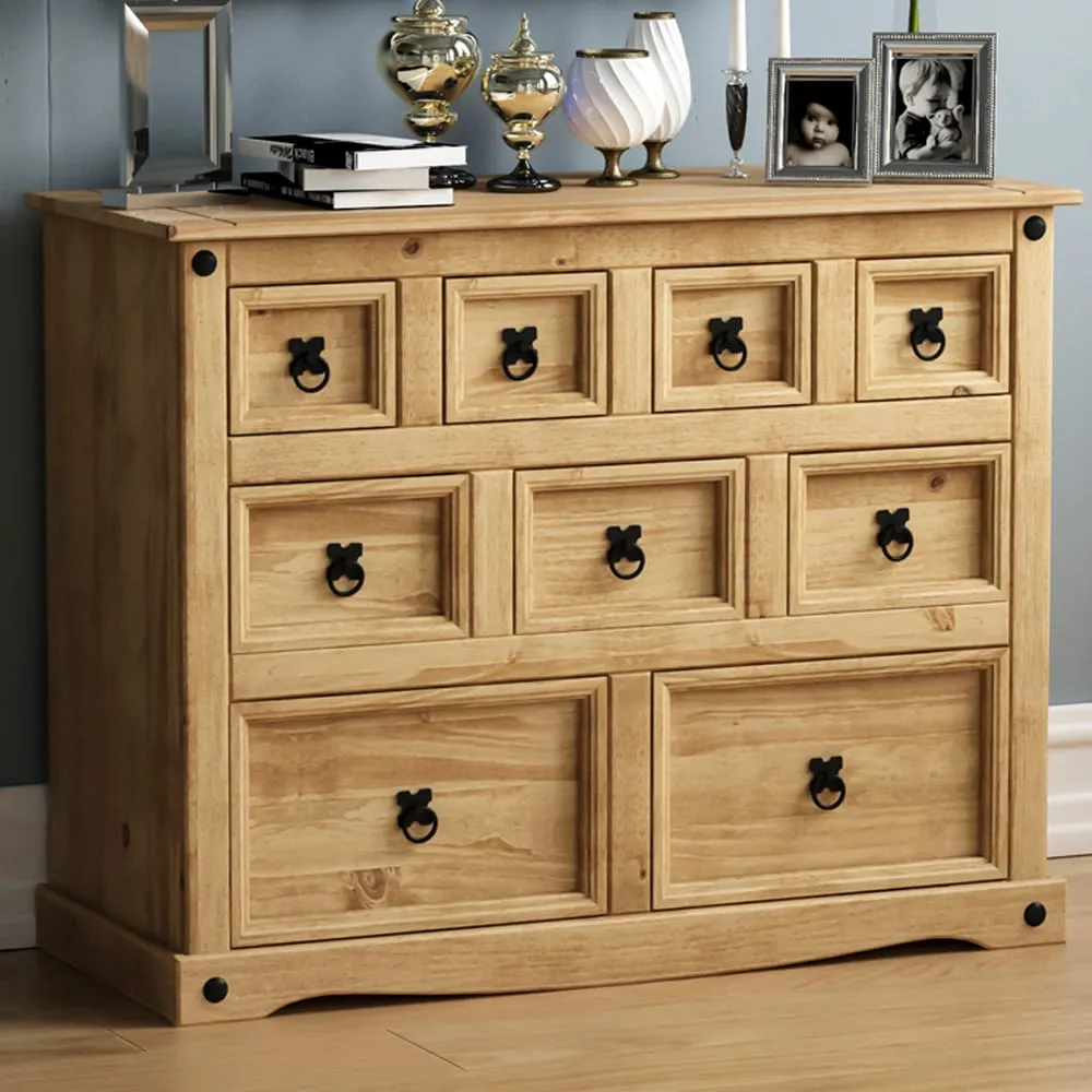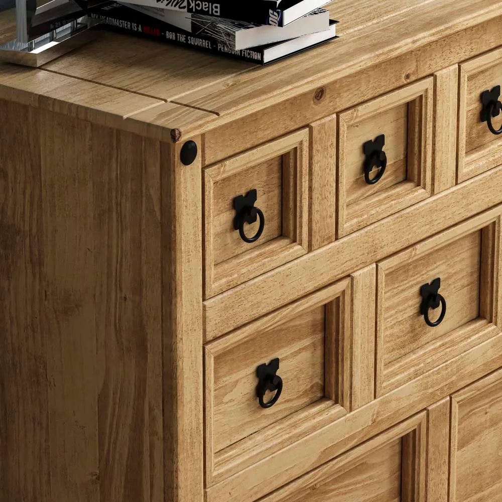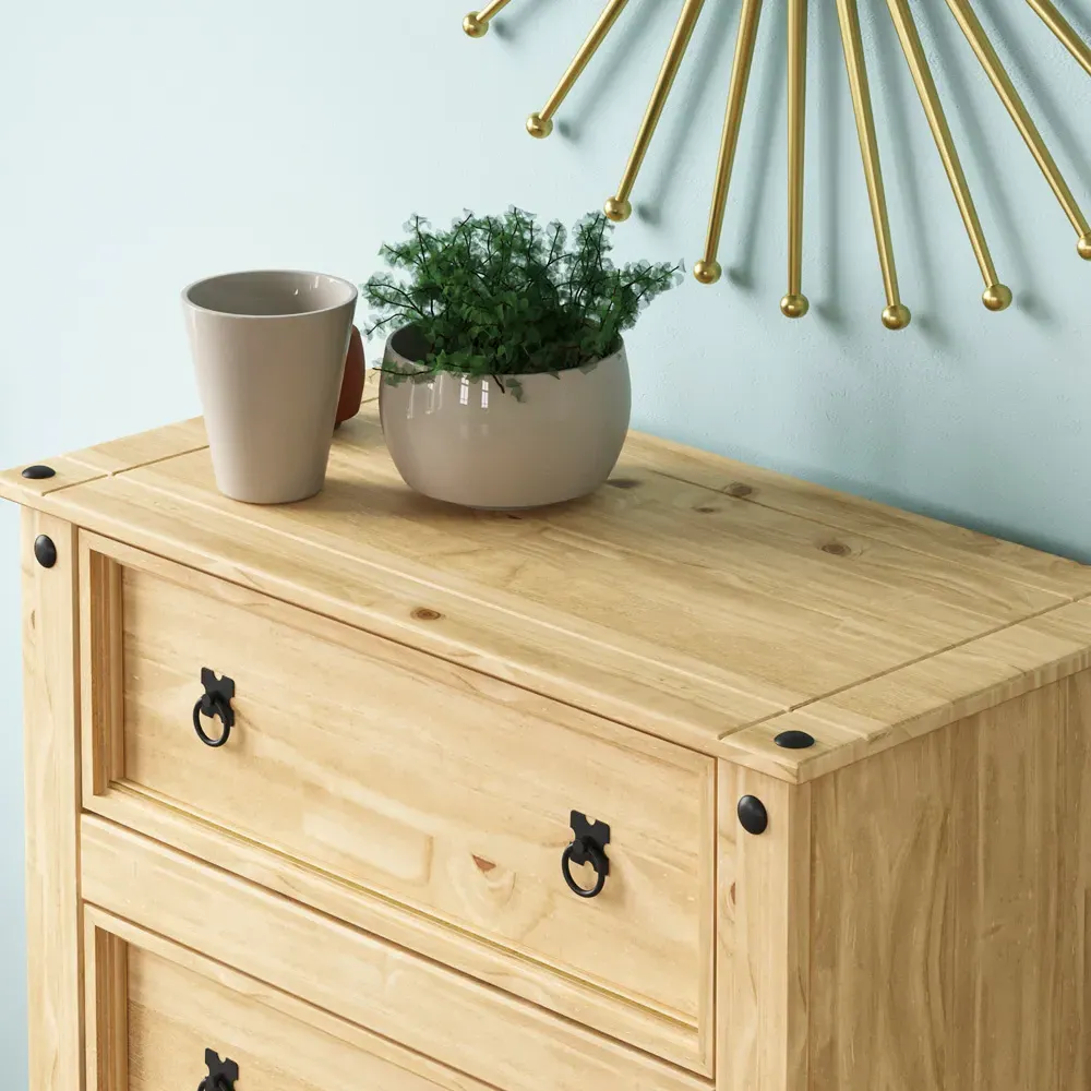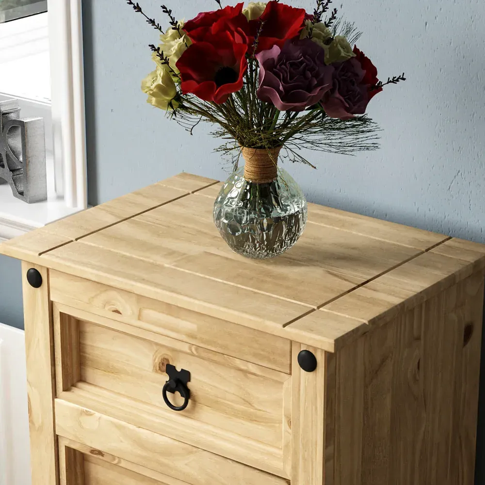 Create a warm and inviting atmosphere in your home decor with the Vida Designs Corona Pine Nesting Tables. This set of three tables is expertly crafted from solid wood, guaranteeing durability and long-lasting quality. With varying sizes, these tables offer a practical solution for all your living room needs. The distressed waxed finish adds a touch of rustic charm and character to the wood. With black metal studs that adorn the edges - it perfectly complements the distressed wood adding a subtle industrial touch. These tables can be easily stacked together to create a delightful multi-tiered coffee table. The versatility allows you to customise your living room layout according to your preferences and requirements. Technical specification: Large table: H50 x W60 x D38cm approximately. Medium table: H40.5 x W46 x D33.5cm approximately. Small table: H31.5 x W32.5 x D28.5cm approximately. Weight limit: 20kg per table. Please note: This item requires self-assembly with easy-to-follow instructions provided.