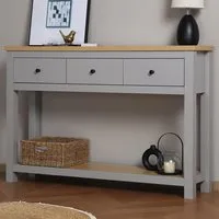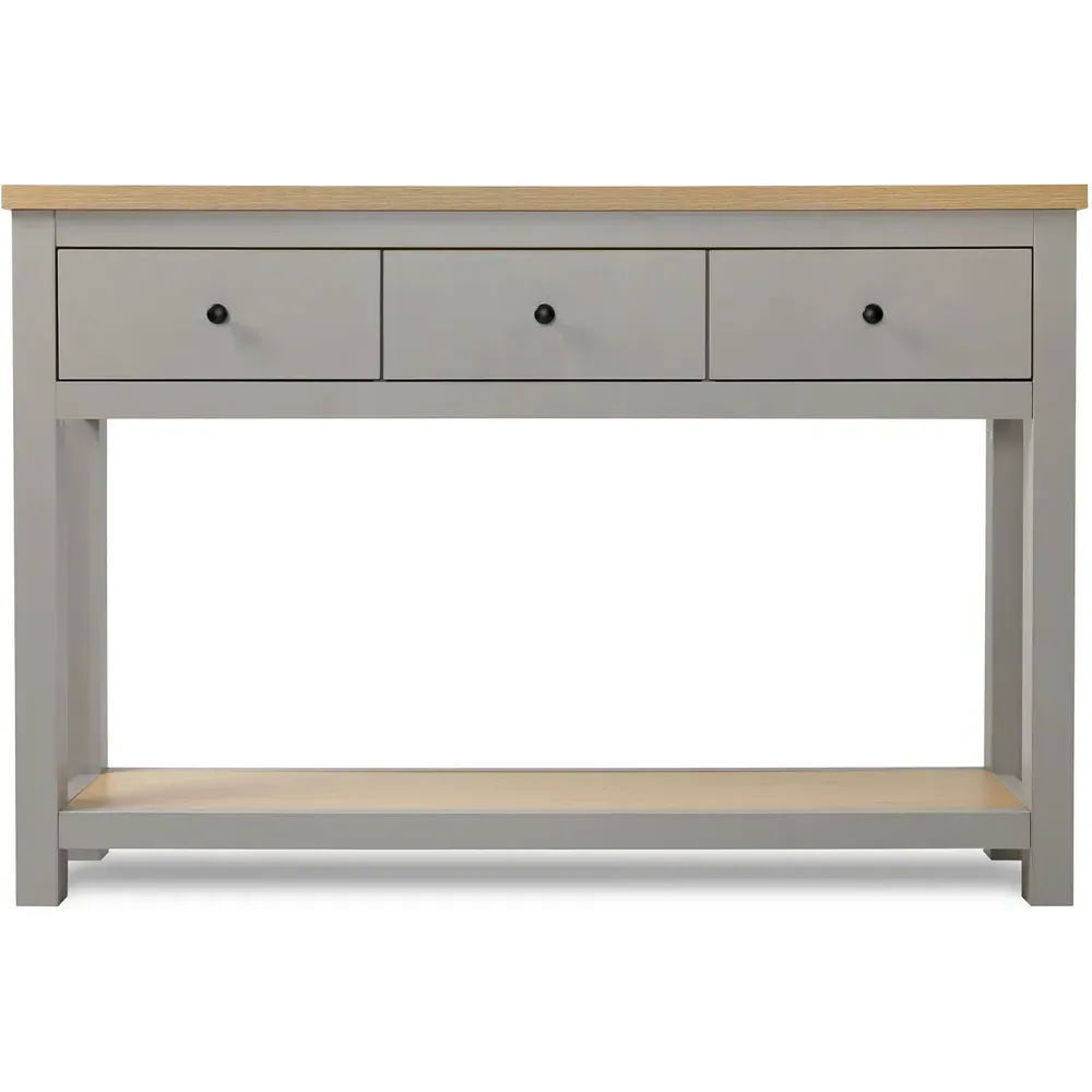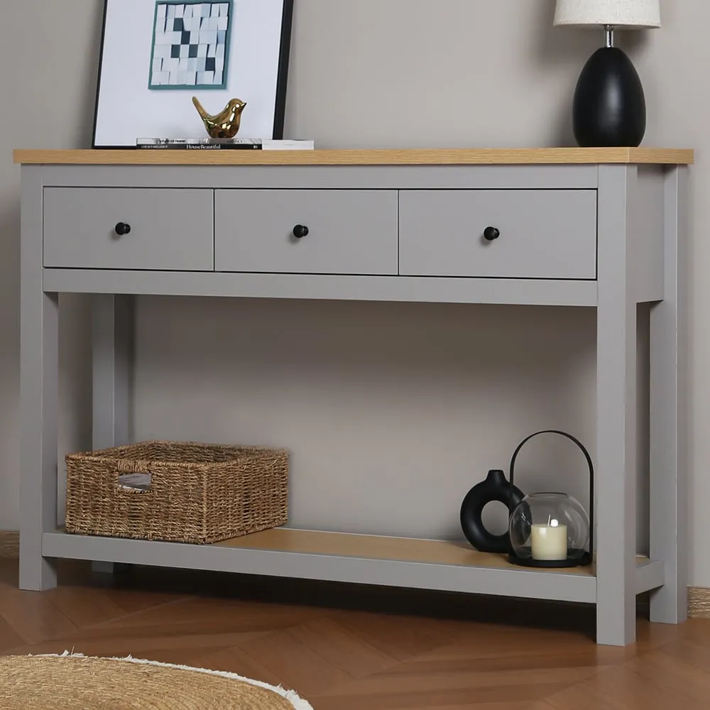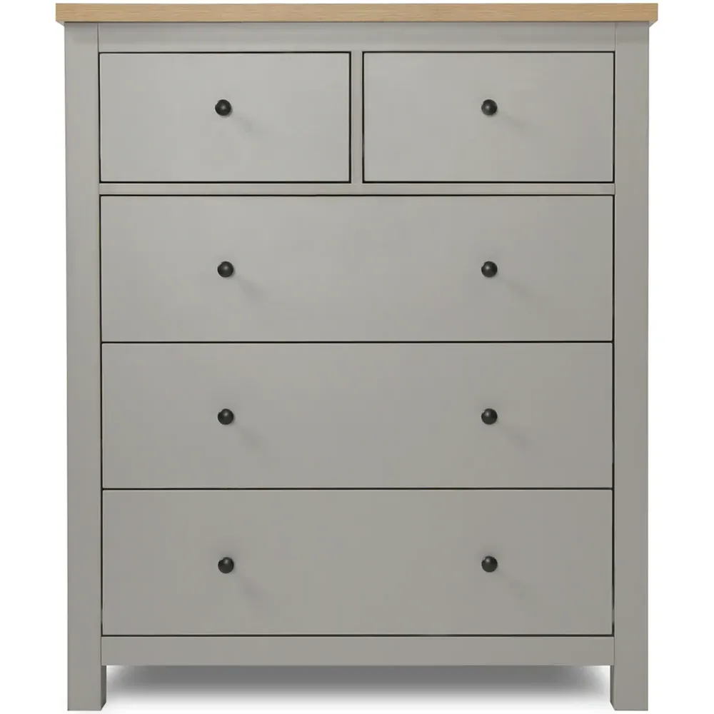 The Wiltshire 2-drawer bedside table offers convenient bedside storage with its compact yet functional design. Constructed from durable MDF melamine with a sleek grey finish, it features a contrasting wood-coloured top that adds warmth and visual appeal. The two drawers provide ample storage space for personal items and essentials, while the surface accommodates bedside necessities like lamps and books.