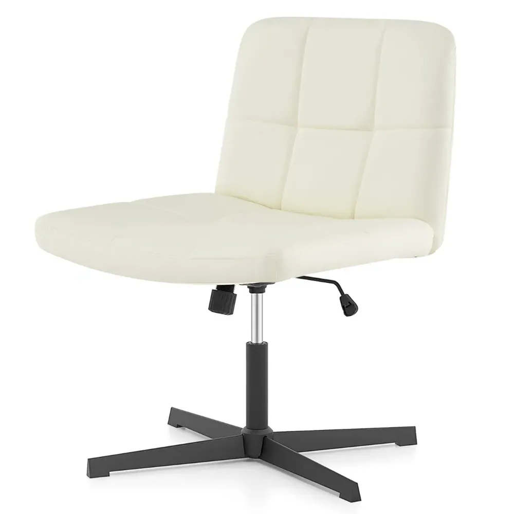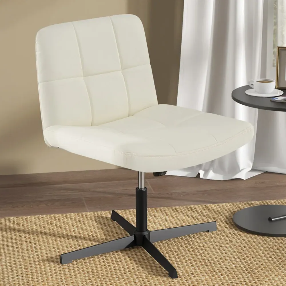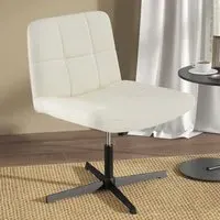 The office chair offers ergonomic support with its mid-back design and height-adjustable mechanism ranging from 43 to 54cm. Its padded cushion features breathable PU leather upholstery, while the 360° swivel casters provide smooth and quiet movement. The heavy-duty steel base supports up to 120kg, and the SGS-certified gas rod ensures reliable height adjustment. W53 x D53 x H75 cm.