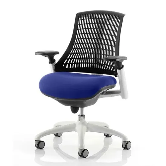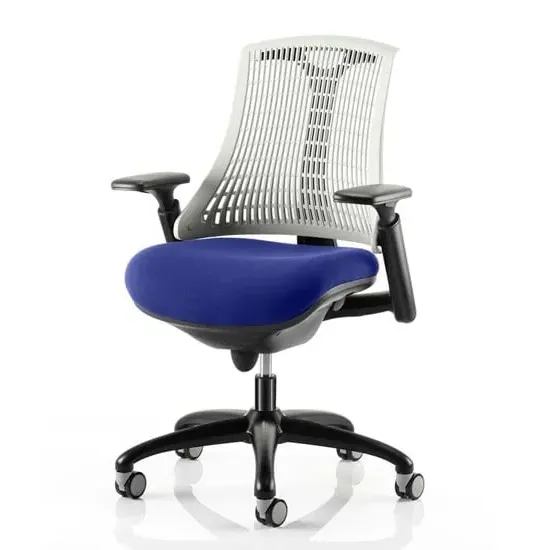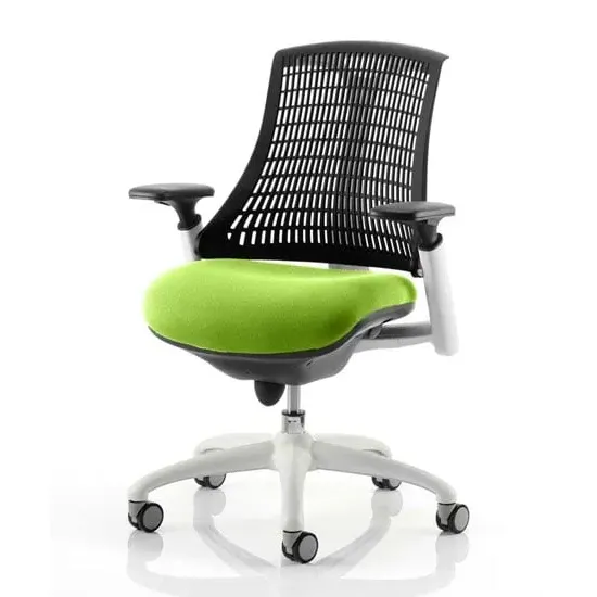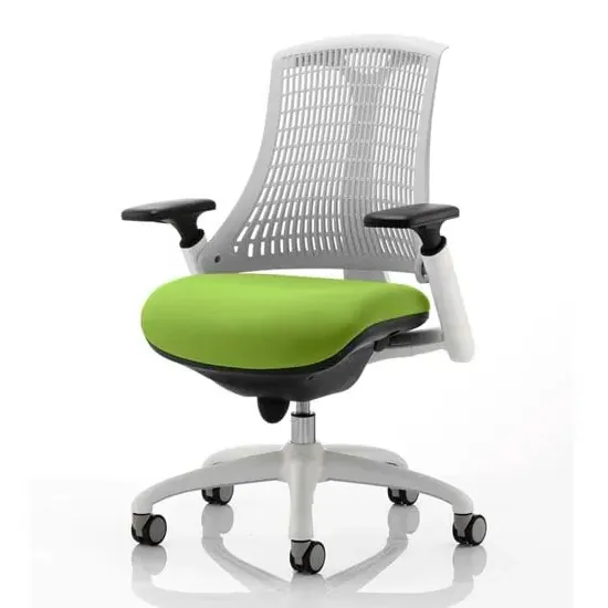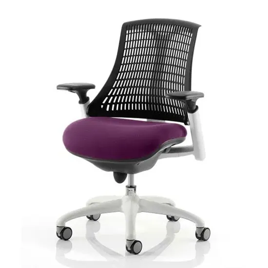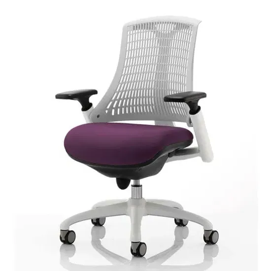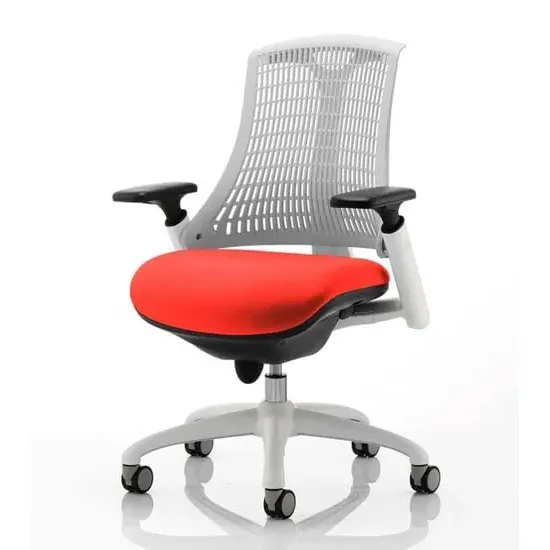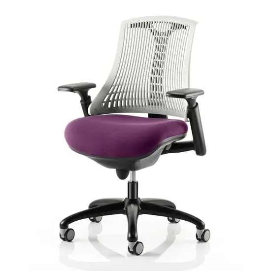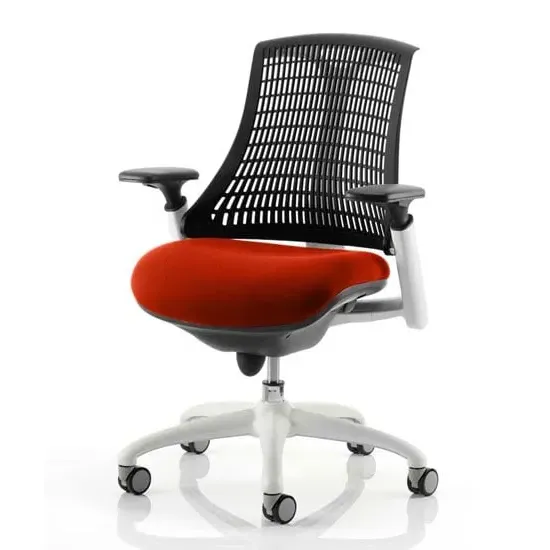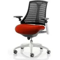 The Flex uses modern materials to create a chair that is practical and innovative with features such as pliable and flexible backrest, adjustable gel padded arms, a large cushioned seat with waterfall front and an enclosed mechanism. FEATURES : Material : Bespoke Finish : Bergamot Cherry Available with white or black finish 5 star base and frame Stylish modern design Flexible back for optimum user comfort Comes with headrest Large cushioned seat Easily accessible ergonomic controls Synchro tilt mechanism Backrest available in variety of colours Most Stylish and Unique piece of furniture Matching furniture available Images shown are for illustration purpose only Available at an affordable price Dimensions: Seat Width : 500mm Seat Depth : 500mm Seat Height : 460-560mm Back Width : 450mm Back Height : 520mm Arm Height : Ht adj Overall Width : 690mm Overall Depth : 680mm Overall Height : 945mm