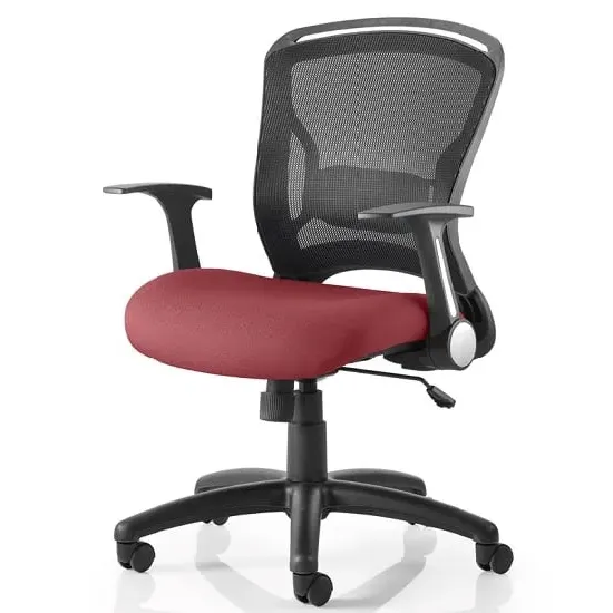 Mendes Contemporary Office Chair In Black With Castors, It provides style, function and quality Features: Mendes Contemporary Office Chair In Black With Castors Material: Fabric Soft moulded seat with stitch detail Designer mesh backrest with integrated height adjustable lumbar As standard supplied with Easy foldaway armrests Single lever mechanism with weight tension control Reclining mechanism Nylon five star base Twin cushion seat design is suitably cushioned for great comfort Available At Affordable Price Dimension: Back Height: 49. 5cm Back Width: 52cm Seat Height: 46. 5cm-56. 5cm Seat Width: 53cm Seat Depth: 52cm