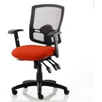 The Portland 3 is a multi-functional task chair that has a whole host of features including ratchet backrest height adjustment, seat slide and independent seat and backrest tilt adjustment. Its solid build quality means that the Portland 3 is the perfect solution for the demanding contract environment. The seat is finished in a breathable air mesh fabric and the backrest is available in a black or white finish mesh. FEATURES : Material : Mesh, Fabric Finish : Black Ratchet backrest height adjustment Height adjustable lumbar support Triple lever mechanism incorporates seat and back angle adjustment Seat Slide Breathable air mesh seat Weight tension adjustment Most Stylish and Unique piece of furniture Matching furniture available Images shown are for illustration purpose only Available at an affordable price DIMENSIONS : Seat Width : 530mm Seat Depth : 480-530mm Seat Height : 470-580mm Back Width : 470mm Back Height : 500-580mm Arm Width : 480mm Arm Height : 685-760mm Overall Width : 650mm Overall Depth : 650mm Overall Height : 990-1100mm