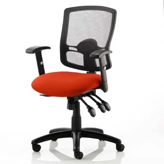 The Portland III office chair combines multi-functional design with ergonomic support through its ratchet backrest height adjustment and independent seat and backrest tilt mechanisms. Its breathable air mesh seat provides comfort during extended use, while the height-adjustable lumbar support ensures proper spinal alignment. The triple lever mechanism incorporates seat slide functionality and weight tension adjustment for personalised comfort. W65 x D65 x H99-110 cm.